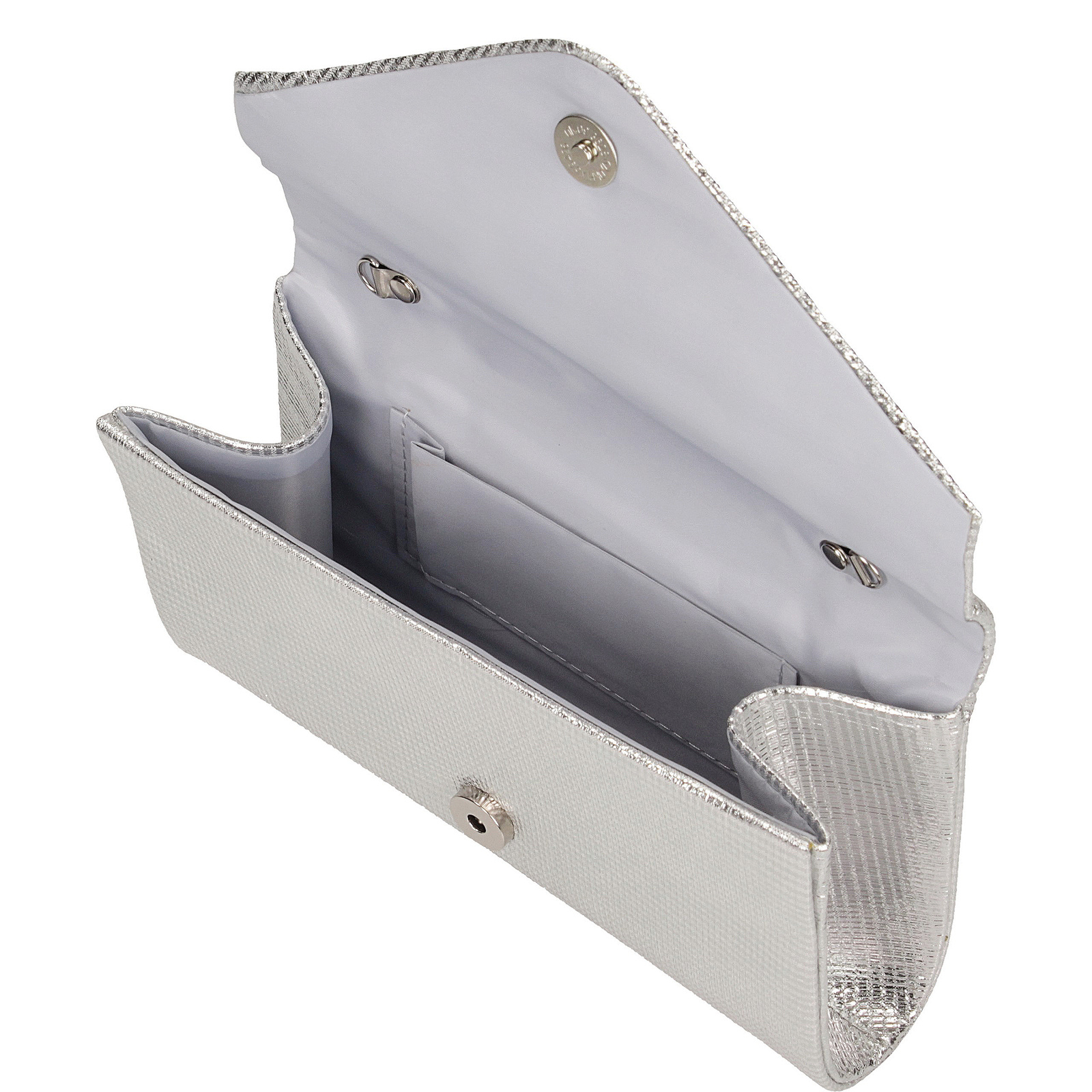 Elegancka kopertówka marki Toscanio w srebrnym wydaniu to stylowy dodatek idealny na wieczorne wyjścia i wyjątkowe okazje. Wykonana z wysokiej jakości skóry ekologicznej, zachwyca subtelnym połyskiem i minimalistyczną formą. Kompaktowa, lecz praktyczna – mieści najpotrzebniejsze drobiazgi w jednej komorze wykończonej tkaniną. Torebka posiada długi, srebrny łańcuszek, który umożliwia wygodne noszenie na ramieniu lub przez ramię. Całość zamykana na magnetyczne zapięcie z metalowym wykończeniem w kolorze srebra, które dodaje całości nowoczesnej elegancji.