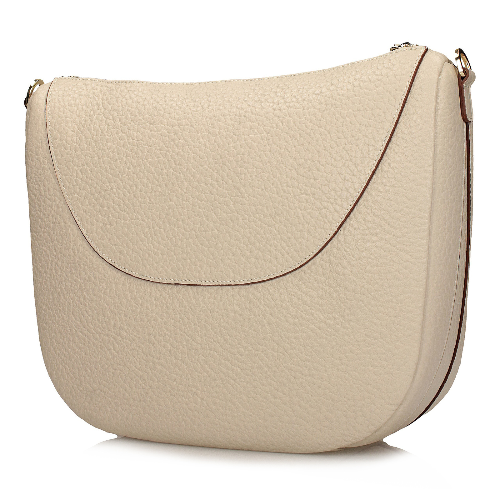 Elegancka listonoszka marki Toscanio w odcieniu delikatnego kremu to ponadczasowy dodatek do kobiecej garderoby. Wykonana z wysokiej jakości skóry naturalnej, łączy klasykę z nowoczesnością. Smukła sylwetka i złote detale dodają jej szyku, czyniąc ją idealną zarówno na co dzień, jak i do bardziej formalnych stylizacji. Posiada jedną komorę zamykaną na zamek oraz dwie praktyczne kieszenie wewnątrz. Długi, regulowany pasek ze skóry pozwala nosić ją wygodnie na ramieniu lub przez ciało, a dodatkowe uszy zwiększają jej funkcjonalność. To model, który podkreśli Twój styl z nutą elegancji.
