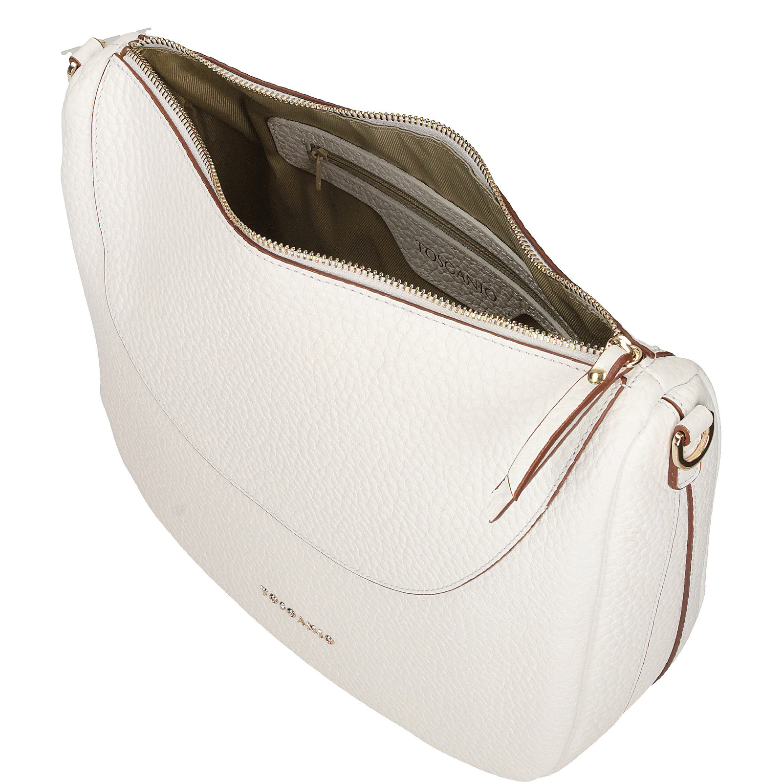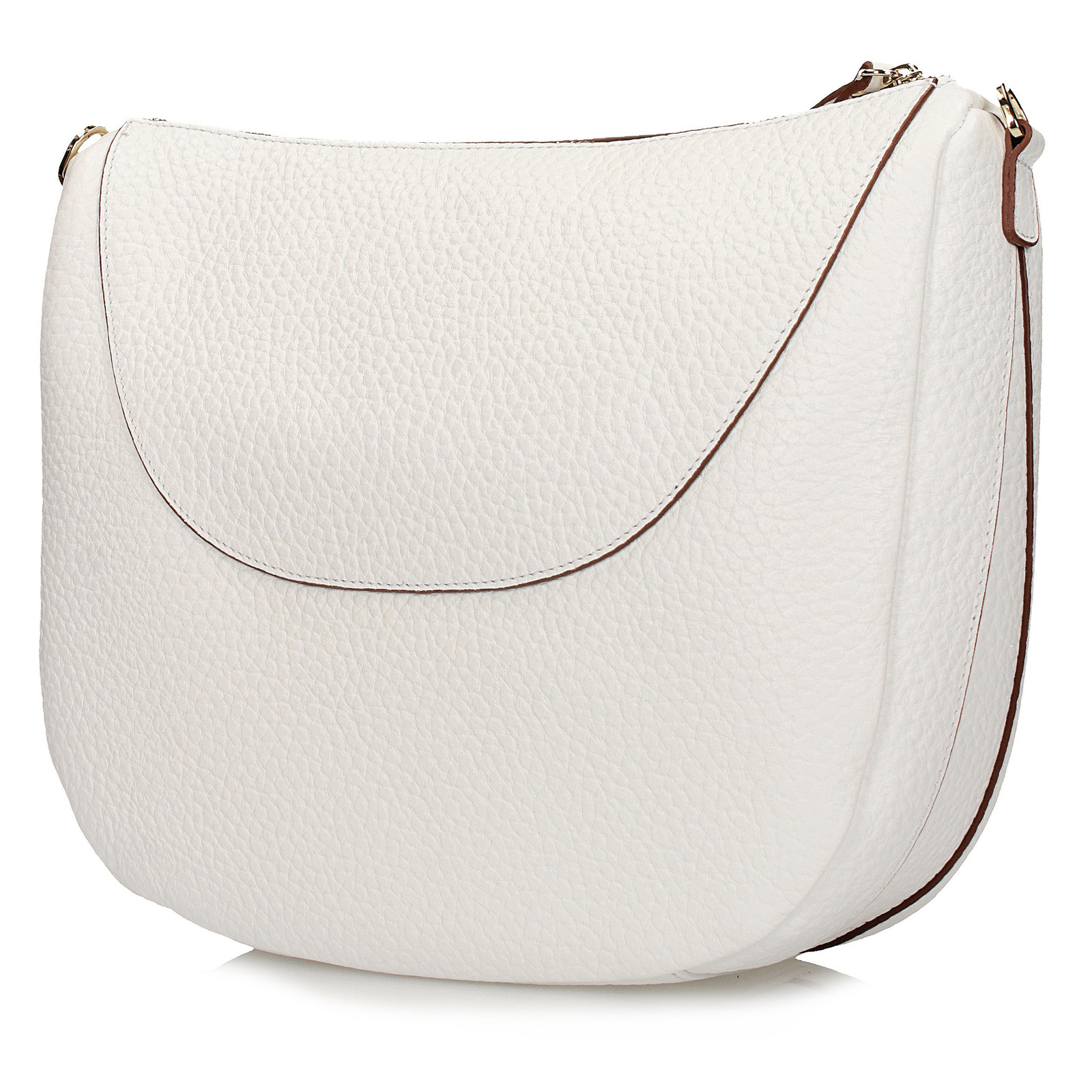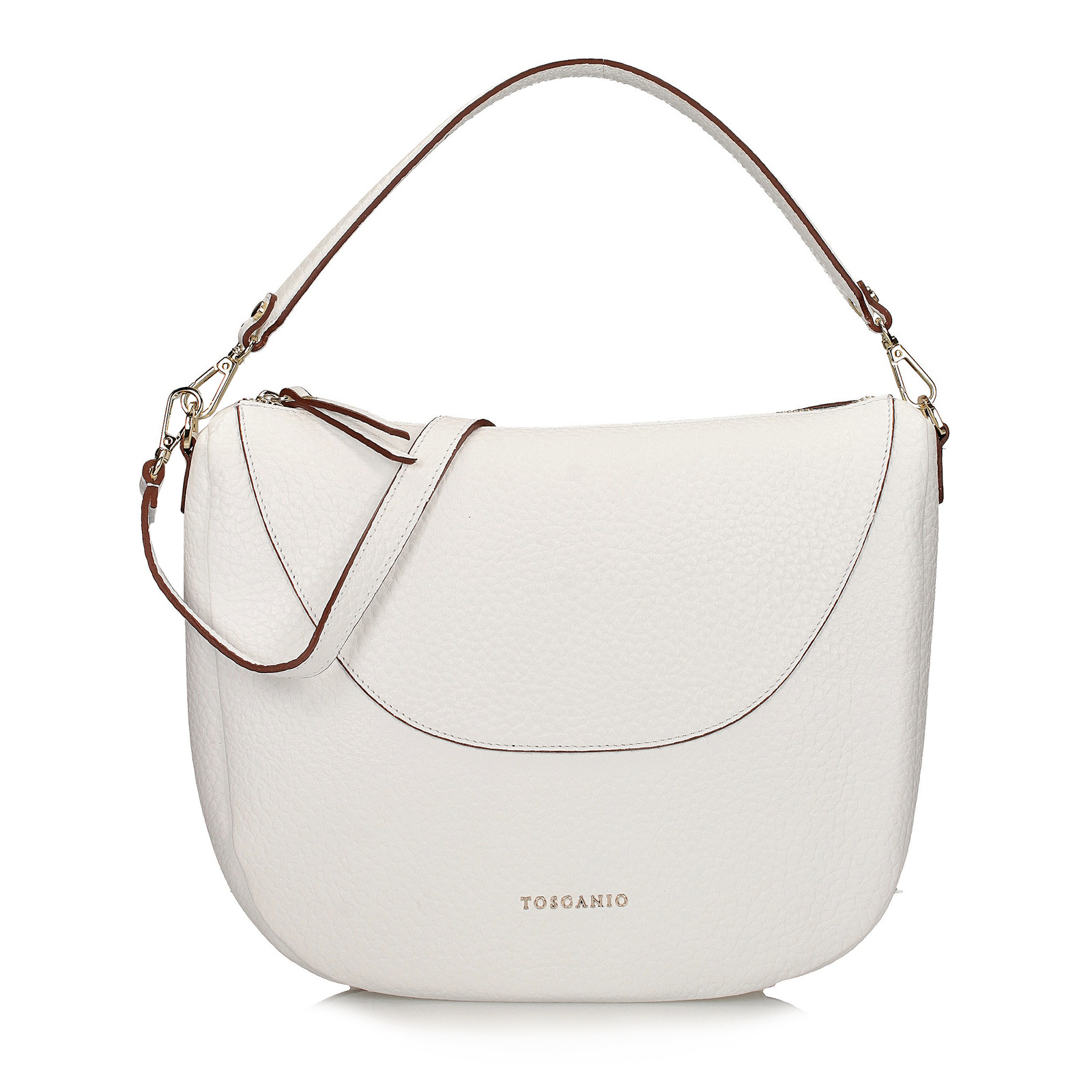 Biała listonoszka Toscanio to wyrafinowana propozycja dla kobiet, które cenią styl i świeżość w dodatkach. Uszyta z naturalnej skóry, zachwyca minimalistycznym krojem i eleganckimi wykończeniami. Jasny kolor pięknie kontrastuje ze złotym zamkiem, nadając całości lekkości i luksusu. Torebka mieści wszystkie niezbędne drobiazgi w jednej komorze, a wewnętrzne kieszenie ułatwiają organizację. Wyposażona w regulowany pasek i wygodne uszy, sprawdzi się zarówno podczas spacerów, jak i w bardziej eleganckich zestawieniach. Idealna na sezon wiosenno-letni, ale nie tylko.