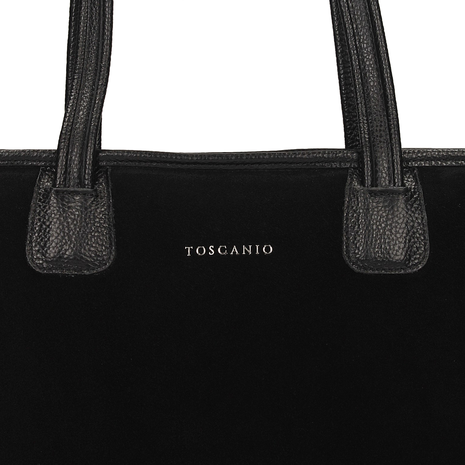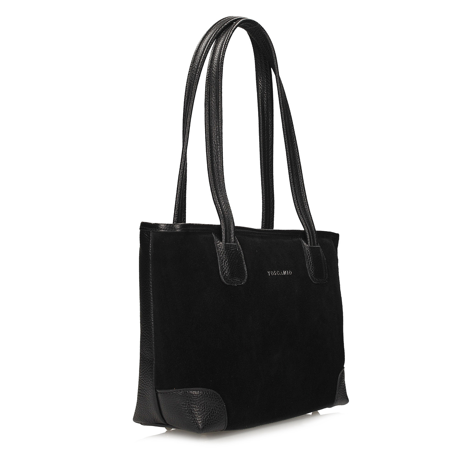 Elegancka torebka klasyczna Toscanio w kolorze czarnym to kwintesencja ponadczasowego stylu i funkcjonalności. Wykonana z wysokiej jakości skóry zamszowej, zachwyca subtelną fakturą oraz prostą, ale efektowną formą.