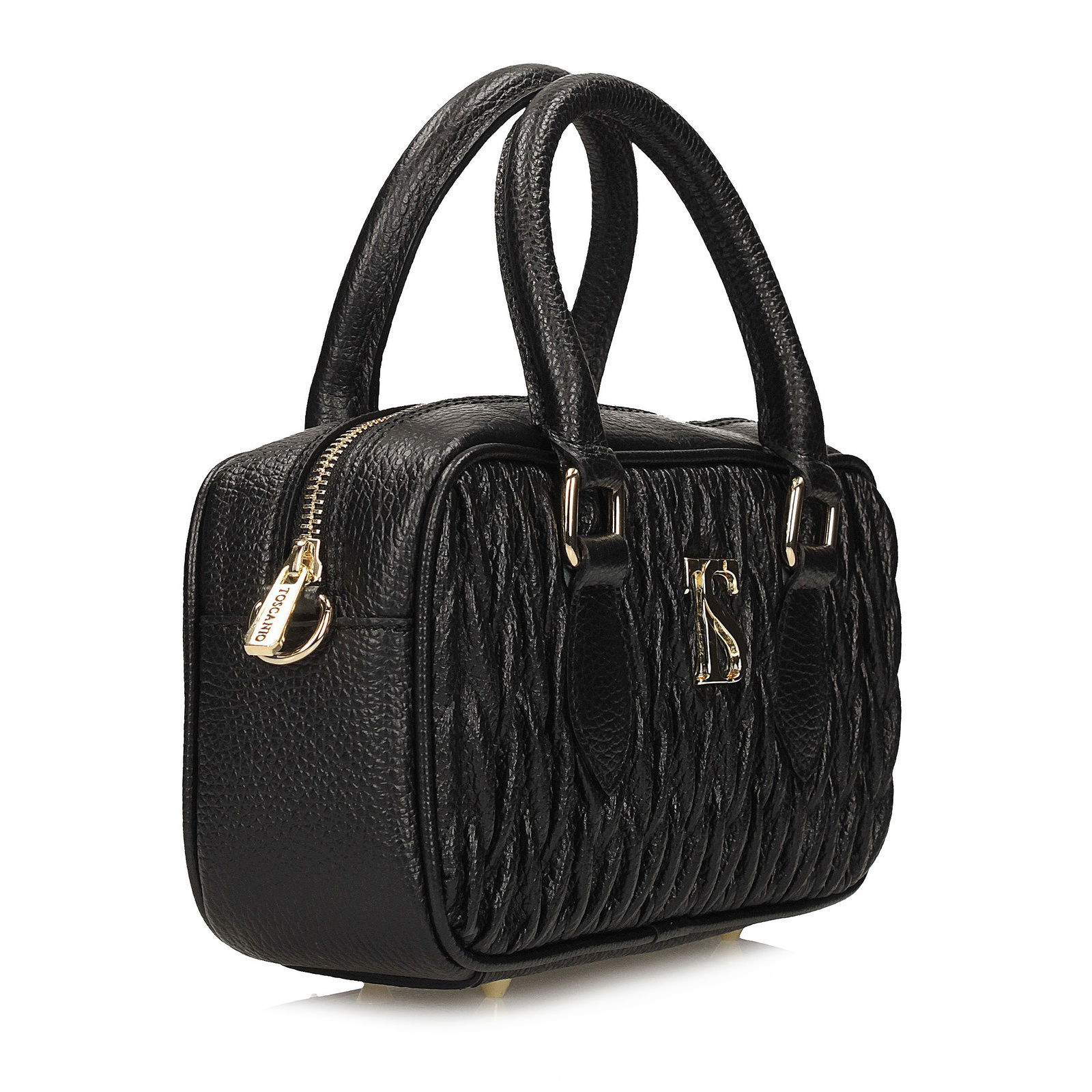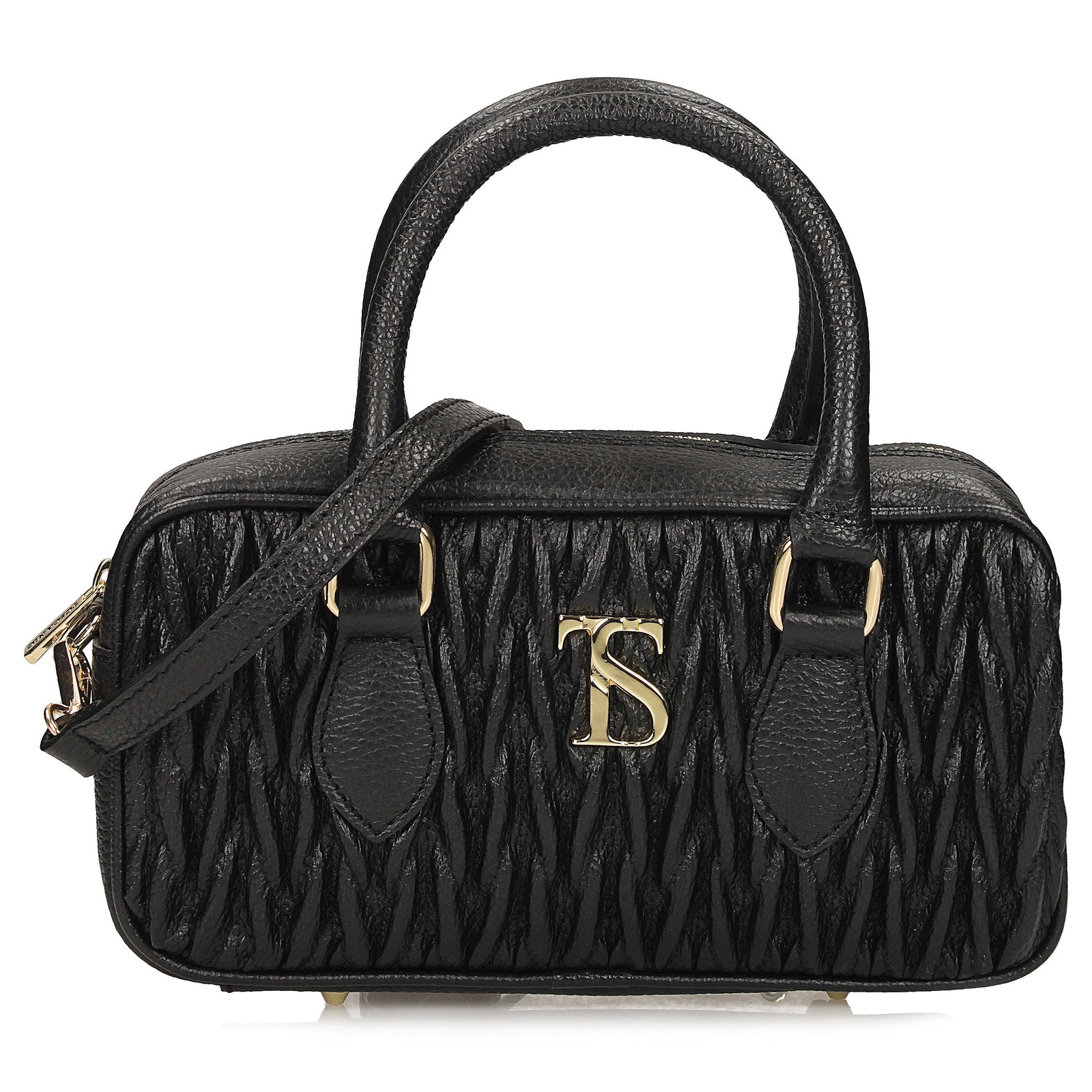 Elegancka i nowoczesna listonoszka Toscanio to idealna propozycja dla kobiet ceniących subtelne detale i funkcjonalność. Model wyróżnia się efektownym zdobnym marszczeniem z przodu, które dodaje torebce lekkości i wyjątkowego charakteru. Całość dopełnia złote logo marki, harmonizujące ze złotym zamkiem.