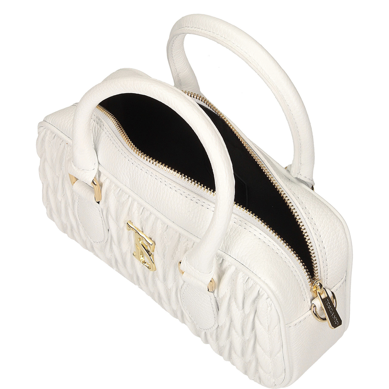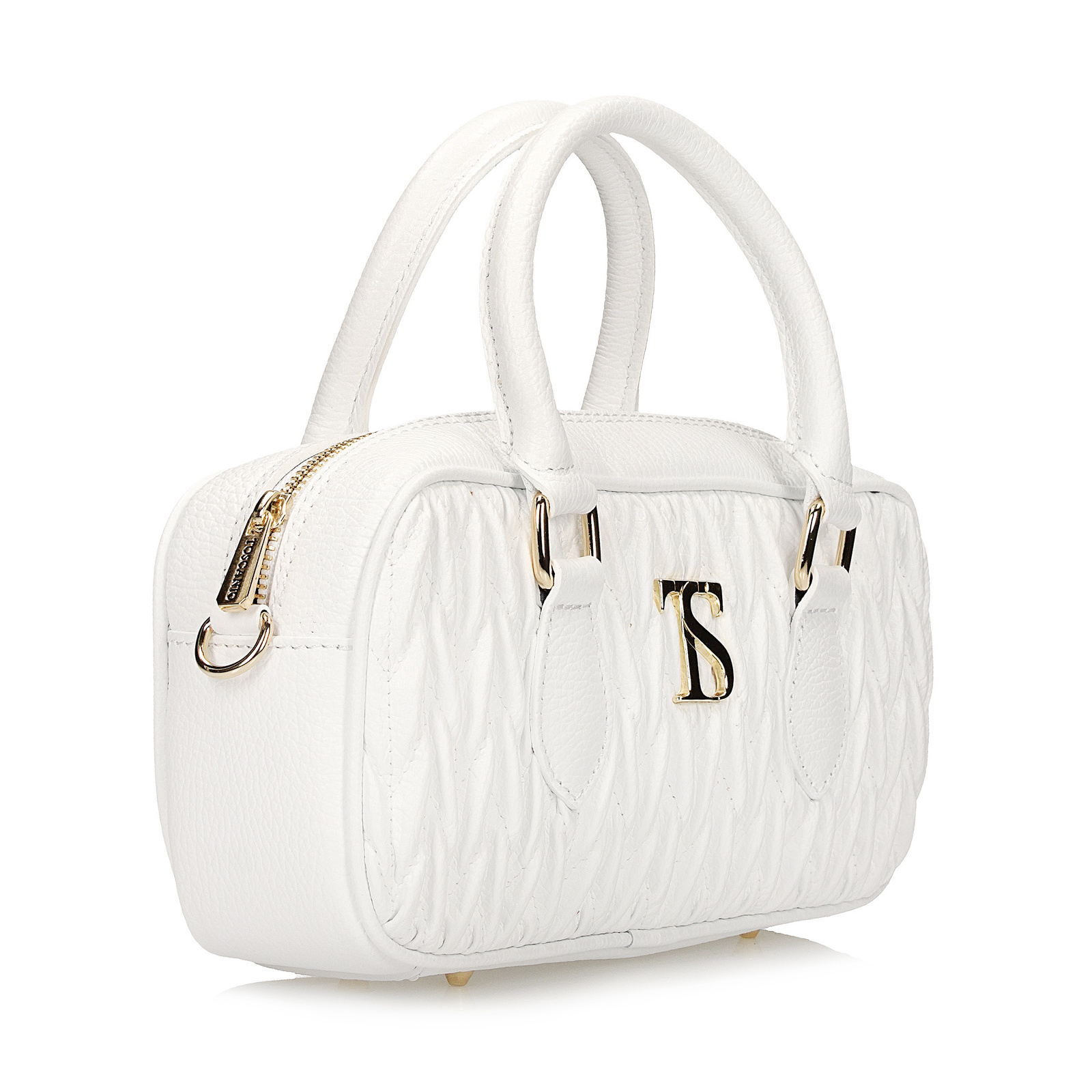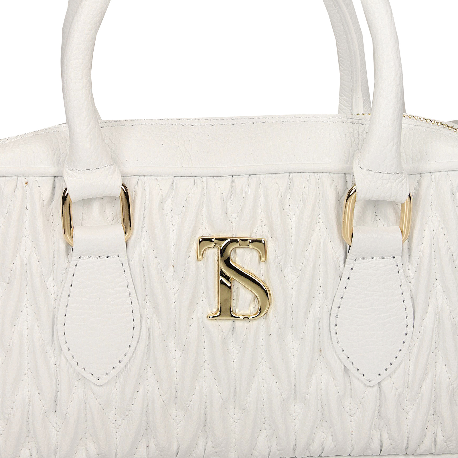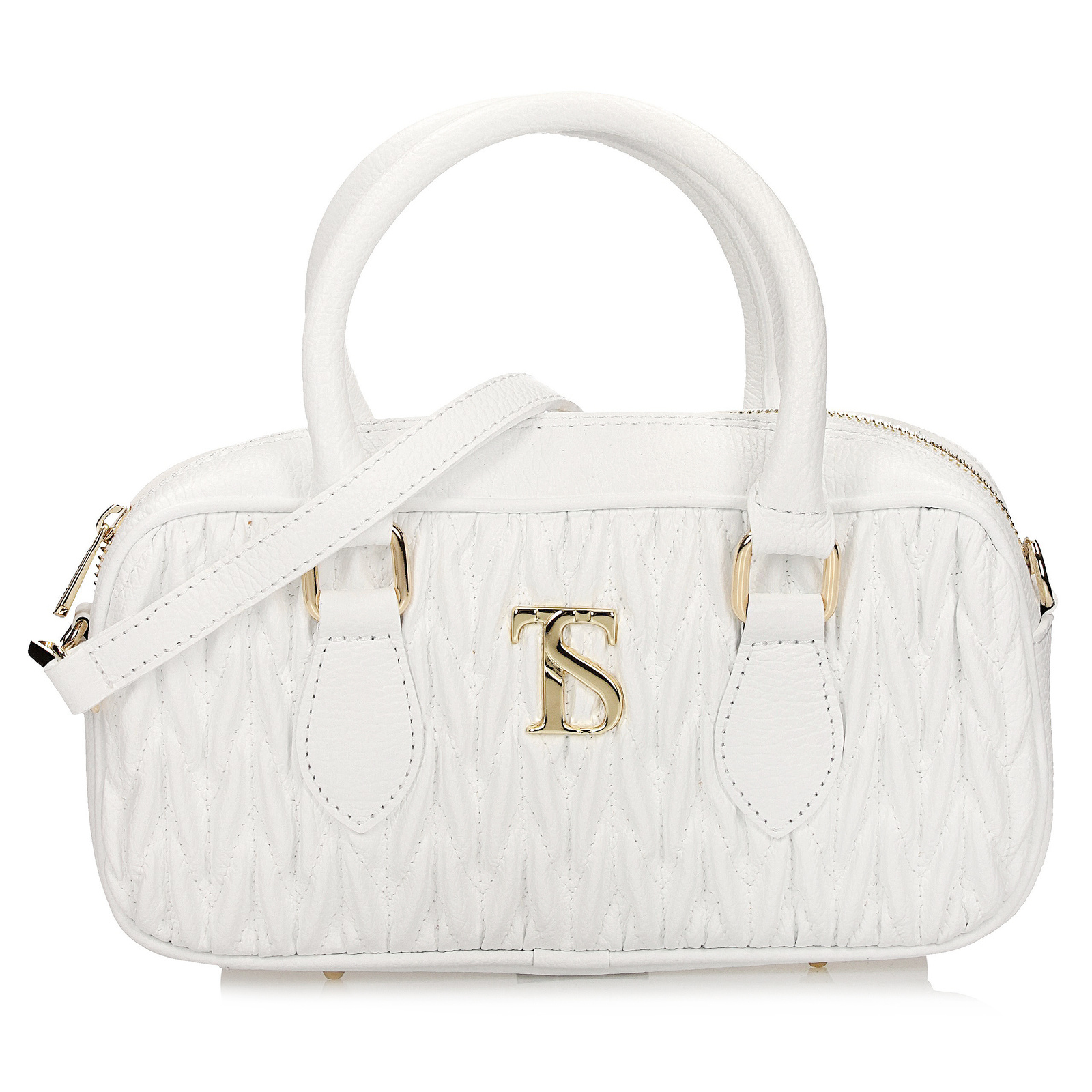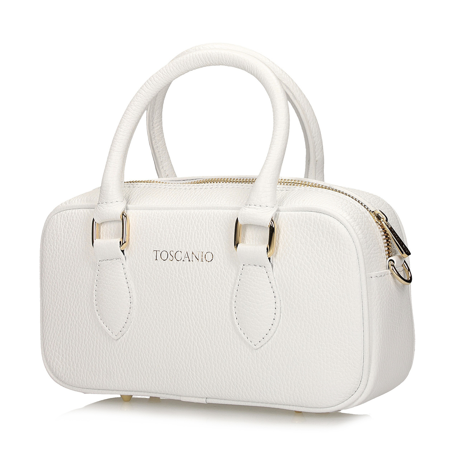 Stylowa i kobieca torebka listonoszka Toscanio w klasycznym białym kolorze to idealny wybór na wiosnę i lato. Jej wyjątkowy charakter podkreśla delikatne marszczenie na froncie oraz eleganckie złote logo, które subtelnie przyciąga wzrok.
