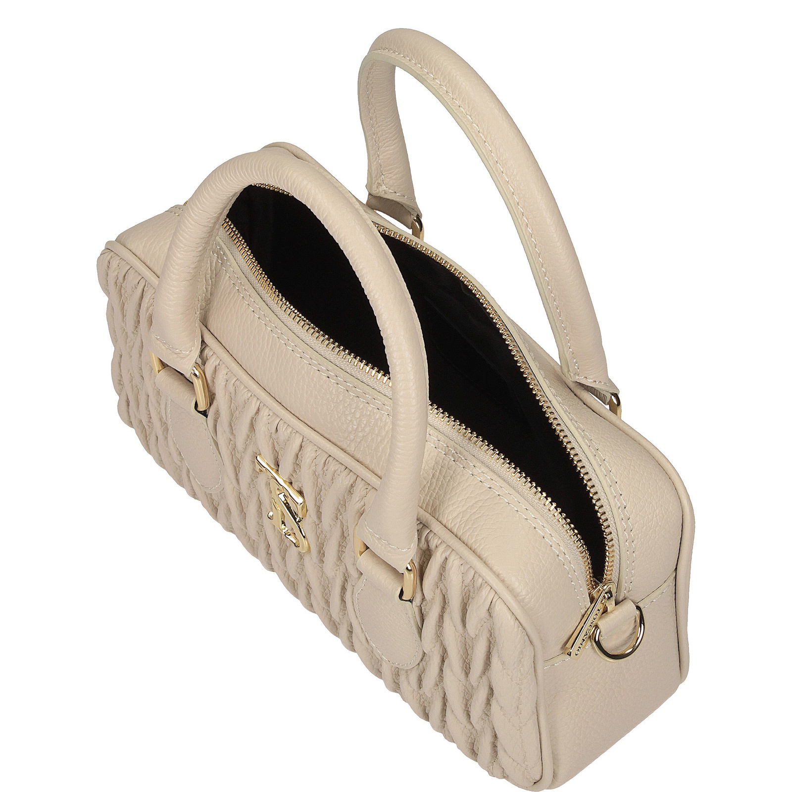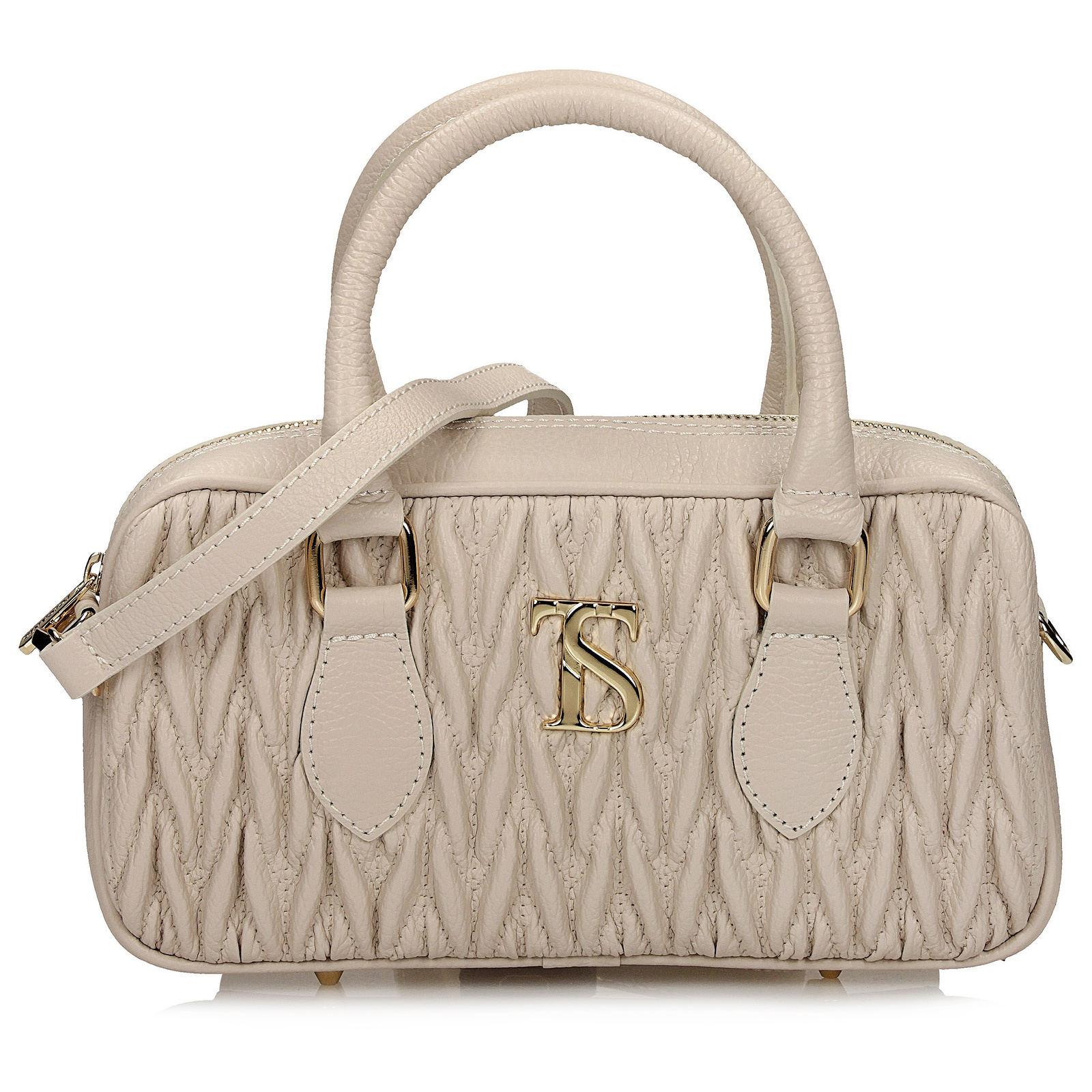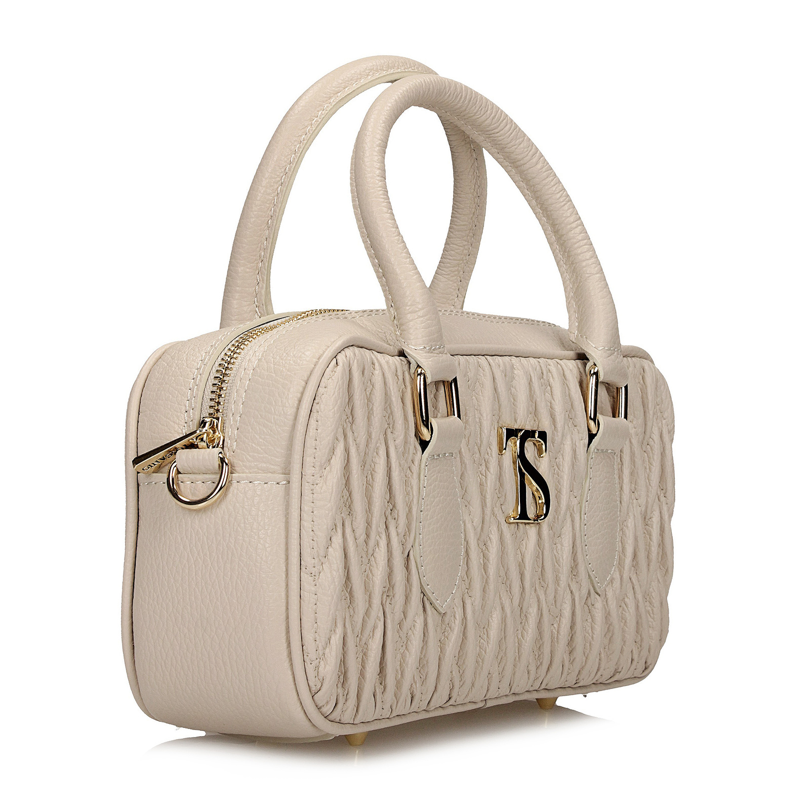 Delikatna i bardzo kobieca, listonoszka Toscanio w kolorze kremowym to połączenie elegancji i nowoczesnego stylu. Jej znak rozpoznawczy to ozdobne marszczenie z przodu oraz subtelne złote logo, które dodaje torebce luksusowego charakteru.