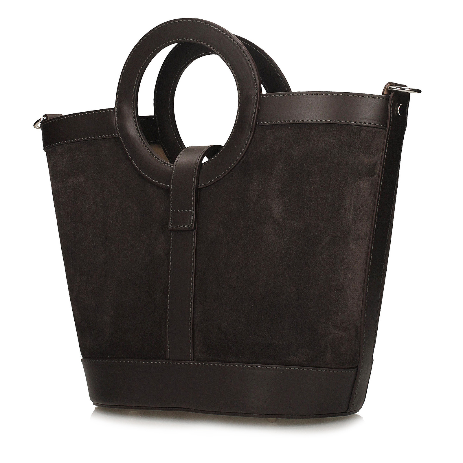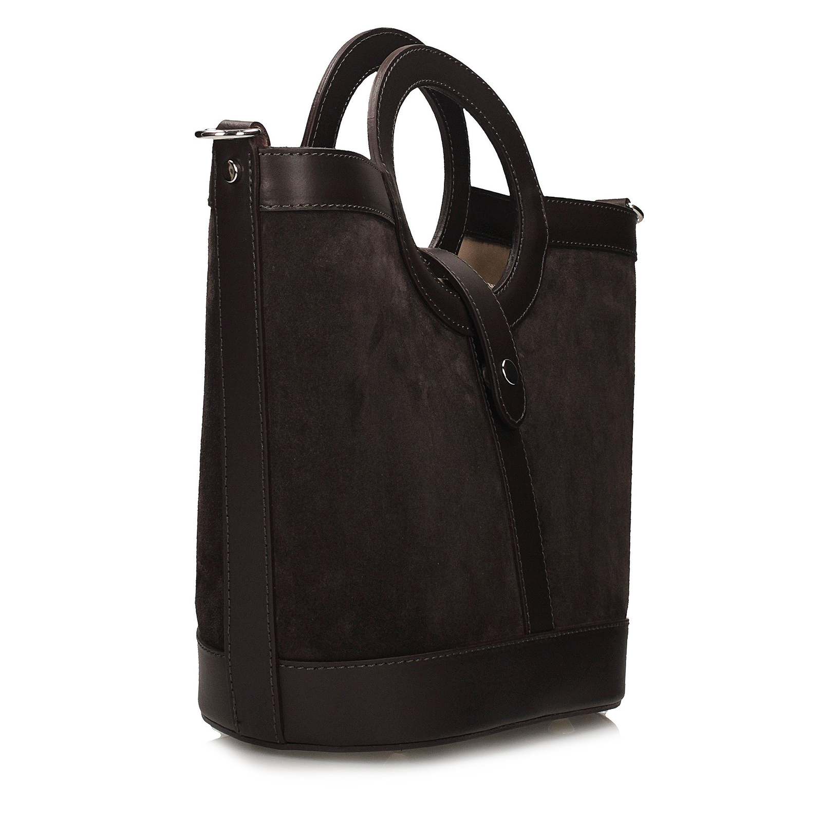 Elegancki kuferek Toscanio w kolorze brązowym to połączenie klasy i funkcjonalności w wyjątkowo kobiecym wydaniu. Wykonany z zamszu wysokiej jakości, wyróżnia się sztywną formą, która zachowuje idealny kształt i dodaje całości eleganckiego charakteru.