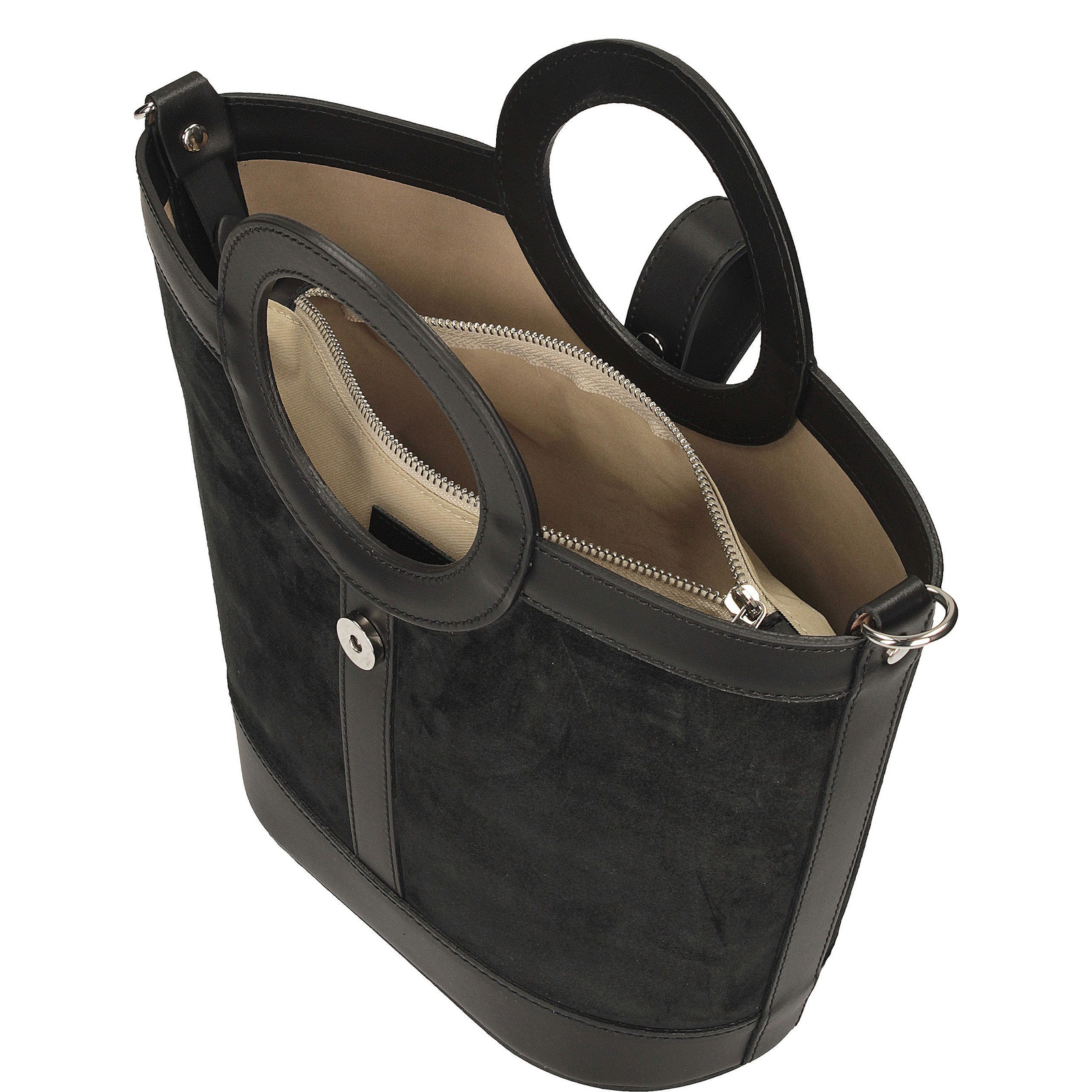 Elegancki kuferek Toscanio w kolorze czarnym to kwintesencja klasy i nowoczesnej elegancji. Wykonany z wysokiej jakości zamszu, wyróżnia się sztywną konstrukcją, która pięknie zachowuje kształt i nadaje mu luksusowego charakteru.