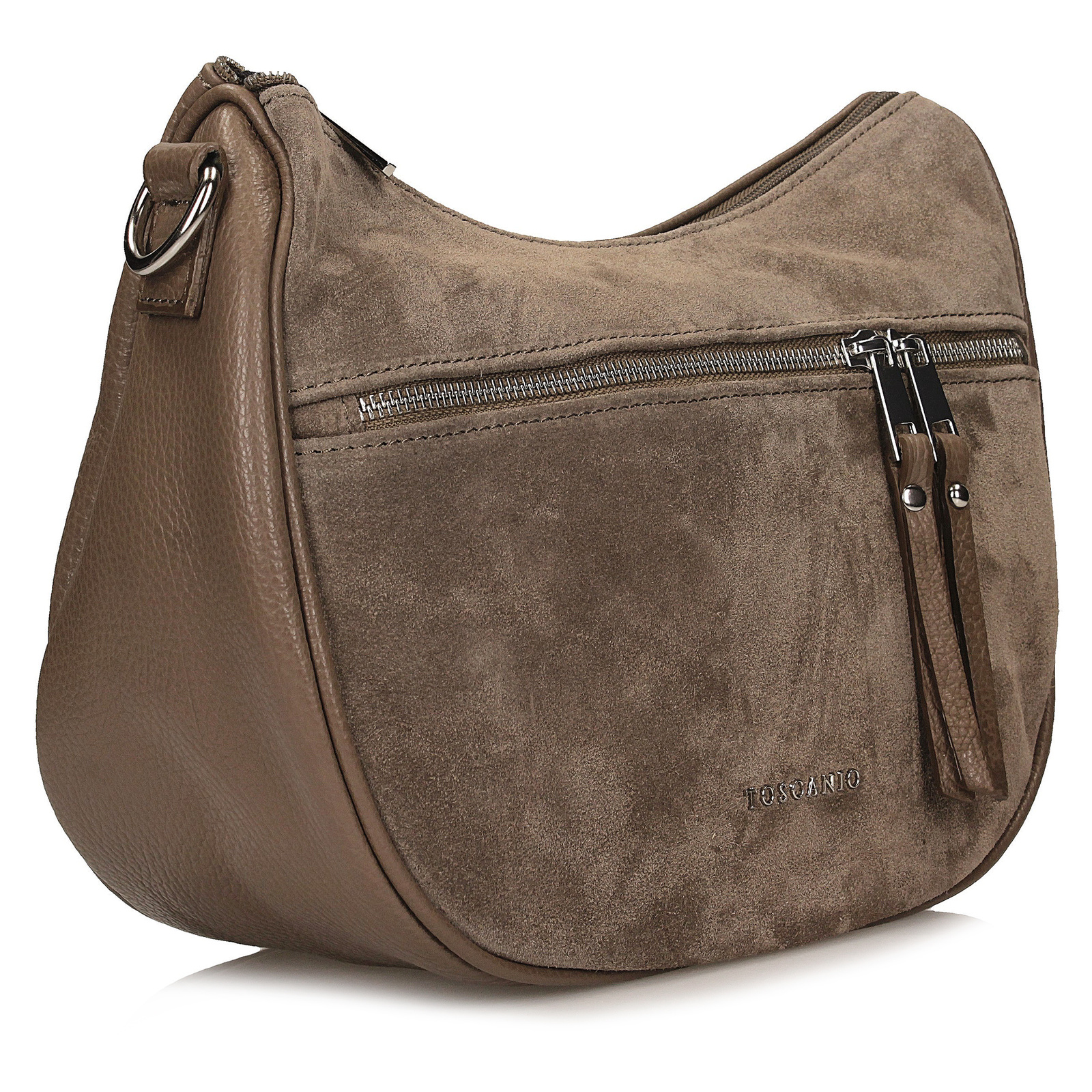 Listonoszka Toscanio w odcieniu ciemnego beżu to elegancki dodatek, który świetnie wpisuje się w ponadczasowy styl. Wykonana z wysokiej jakości skóry naturalnej, uzupełniona o przednią część ze skóry zamszowej, zachwyca subtelnym połączeniem faktur i barw.