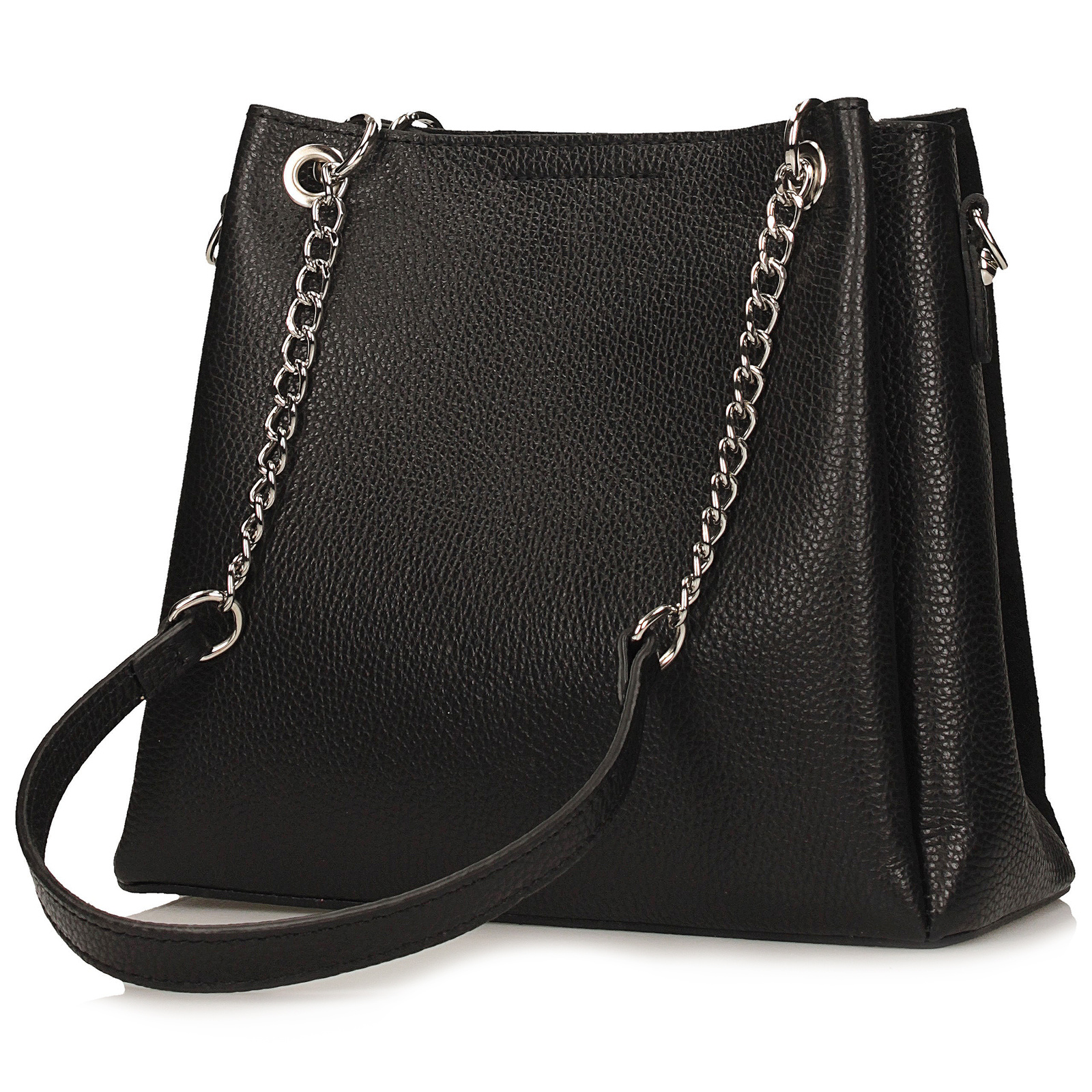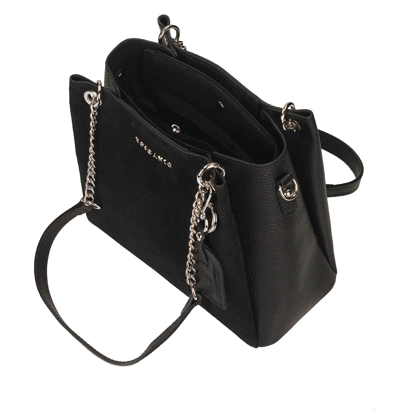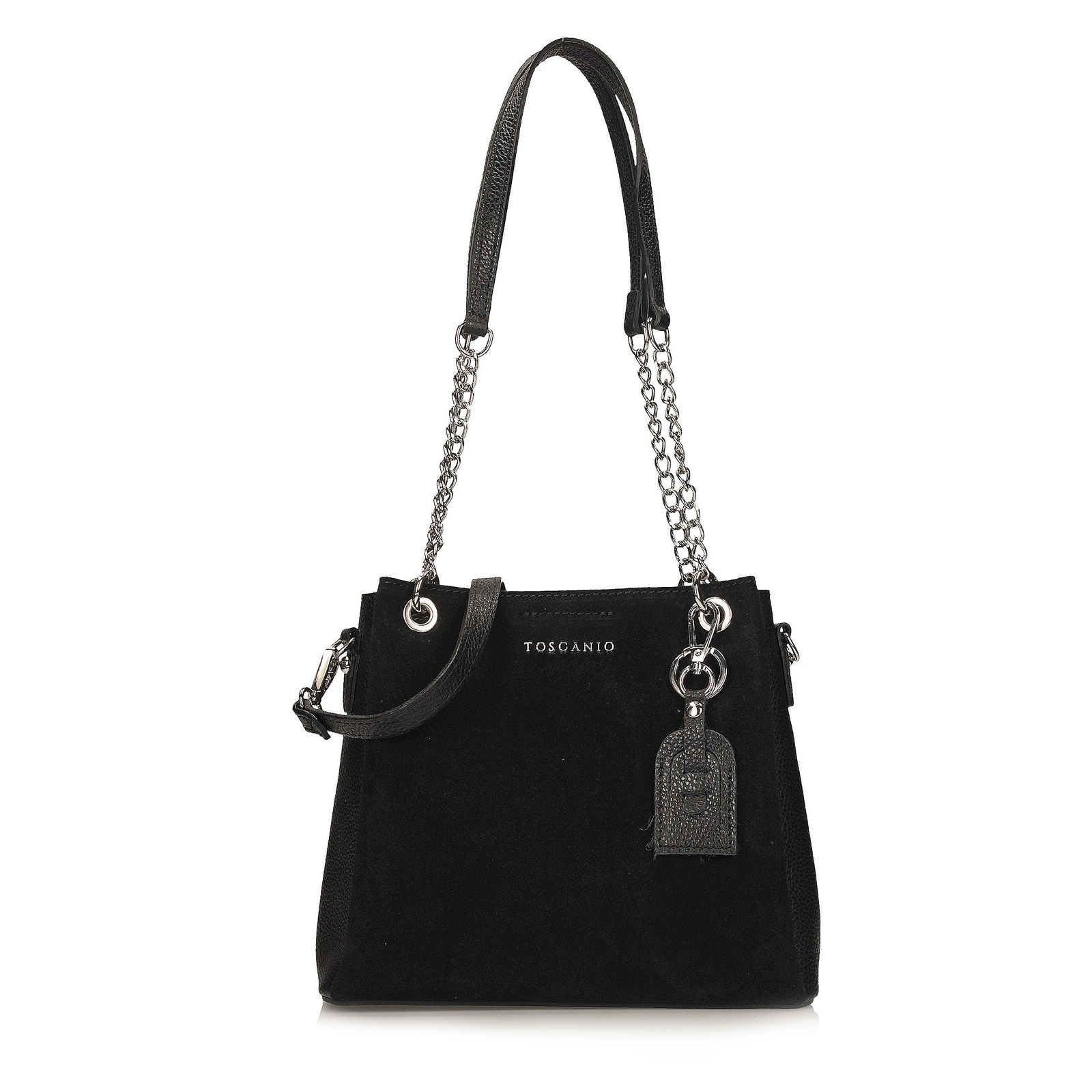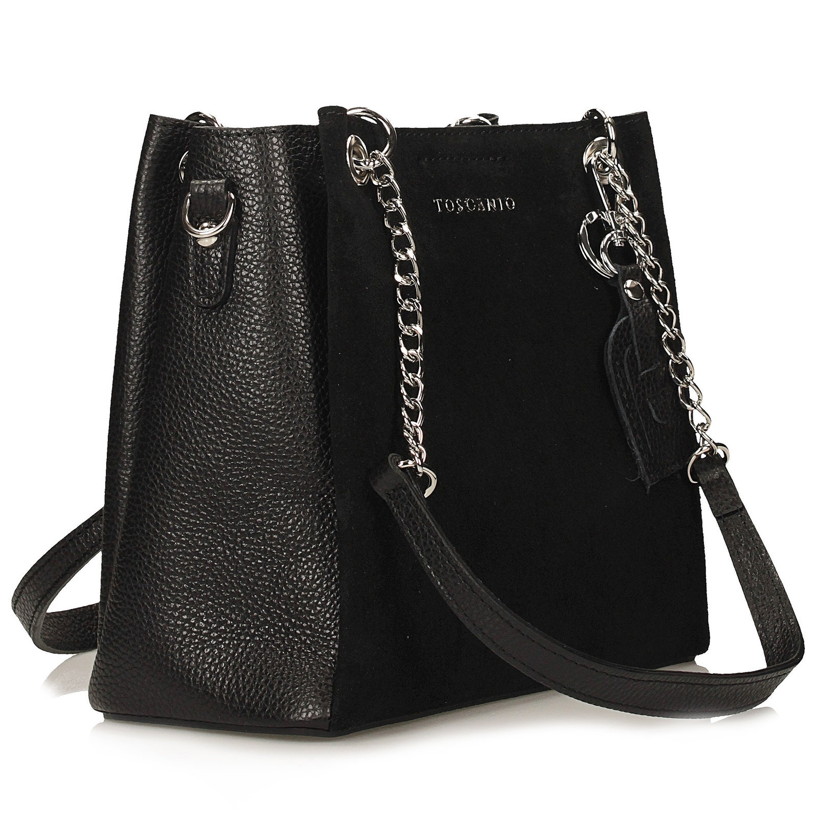 Czarny kuferek marki Toscanio to propozycja dla kobiet ceniących klasyczną formę w nowoczesnym wydaniu. Torebka została wykonana z wysokiej jakości skóry naturalnej, a jej przednia część wyróżnia się eleganckim panelem ze skóry zamszowej, który nadaje całości wyrafinowanego charakteru.