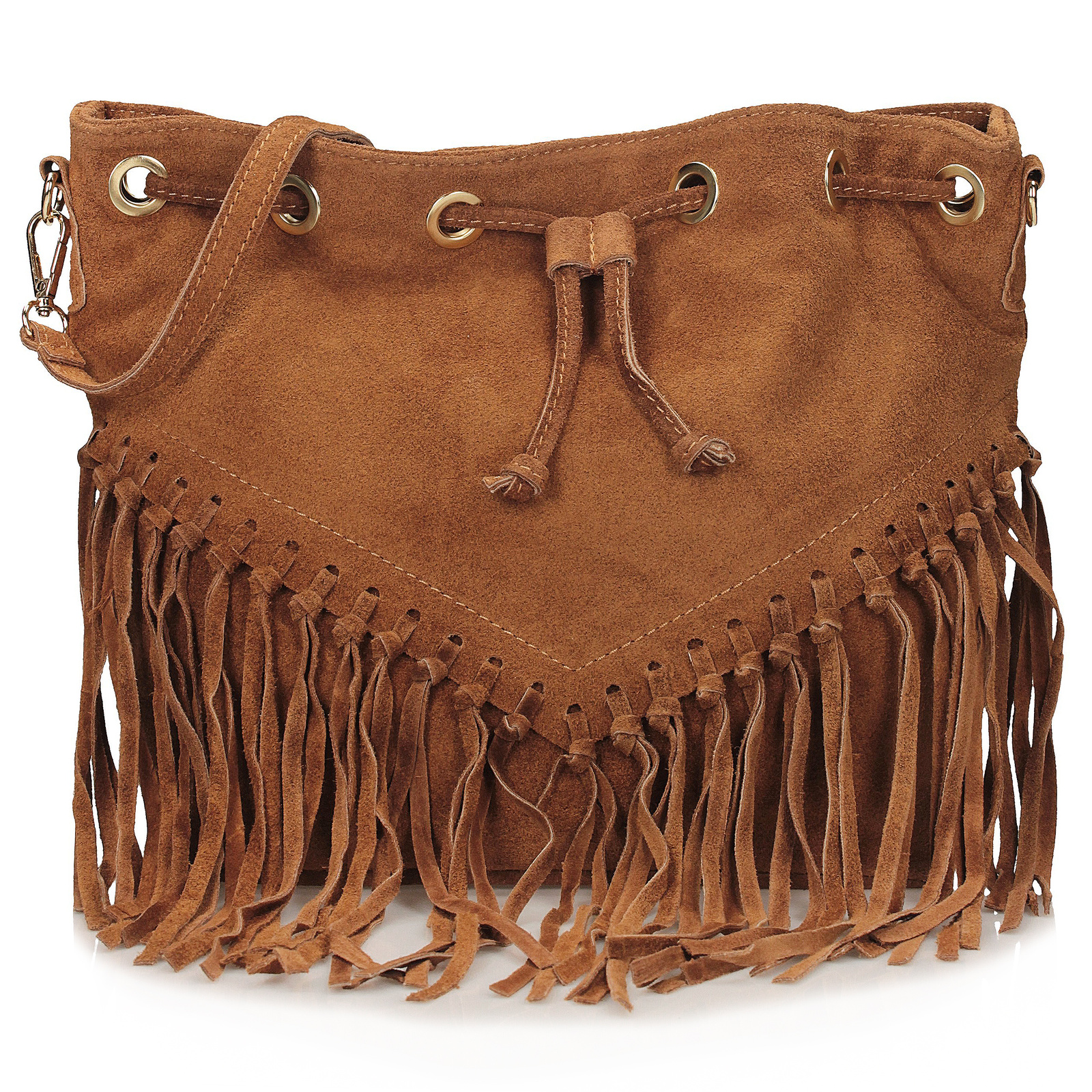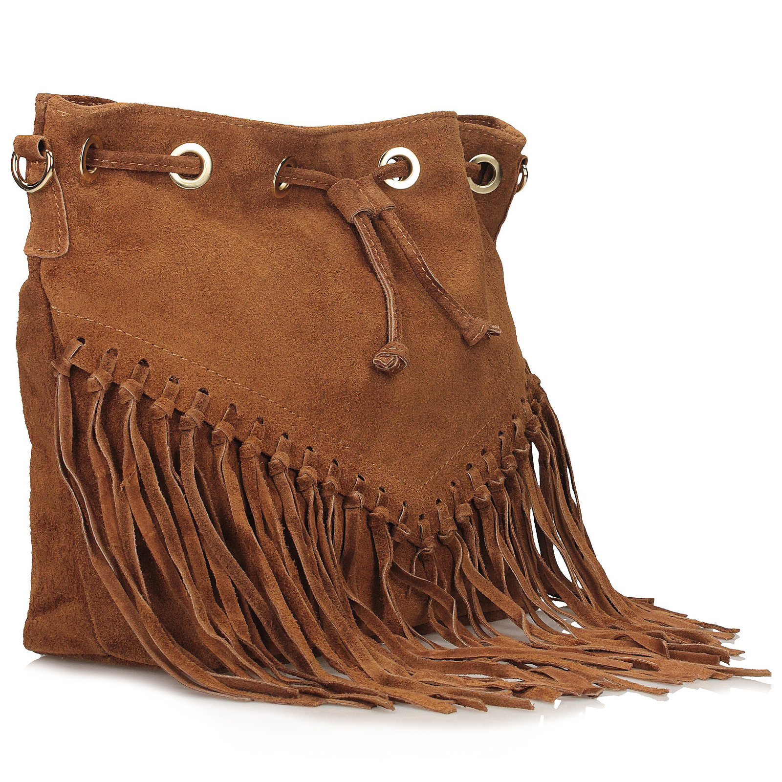 Ruda listonoszka Toscanio łączy klasyczny design ze stylowym akcentem w postaci frędzli. Wykonana w całości ze skóry naturalnej zamszowej, zachwyca ciepłym, rudym odcieniem, który dodaje torebce wyrazistego charakteru i modowej świeżości.