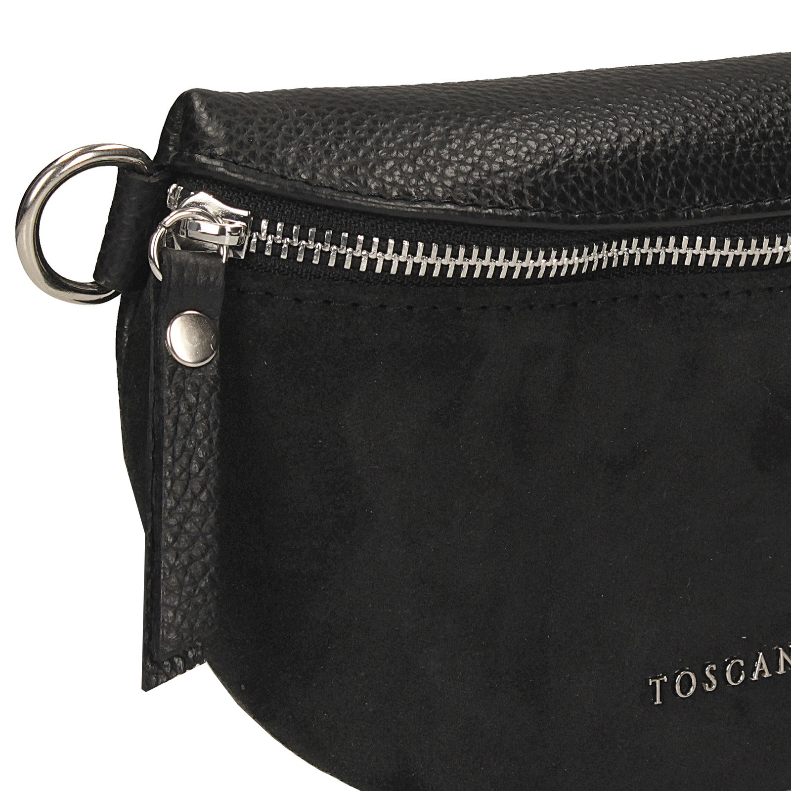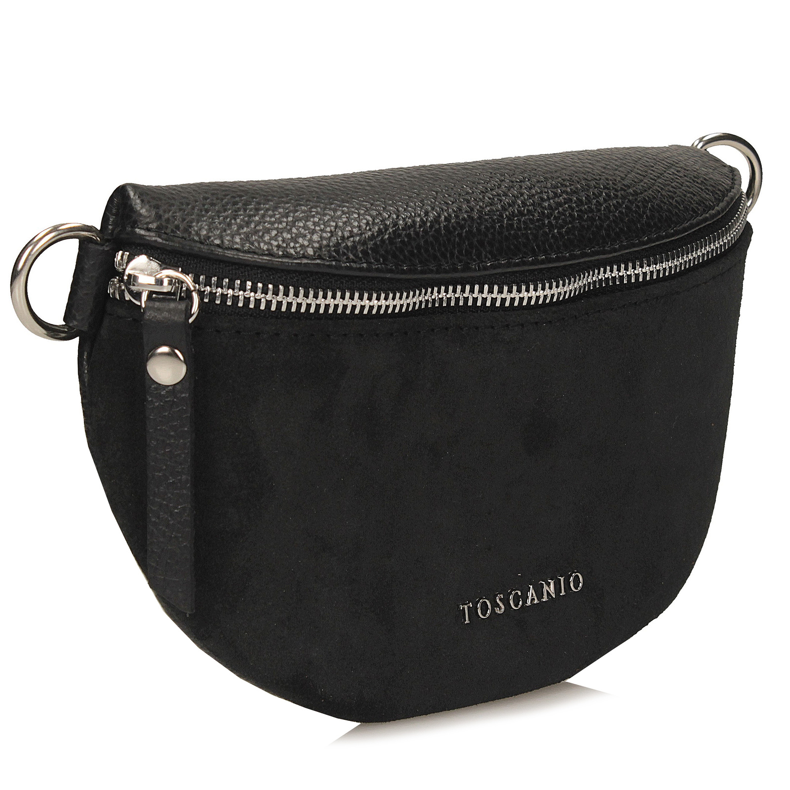 Czarna nerka Toscanio to stylowy, wygodny dodatek dla kobiet, które lubią mieć najpotrzebniejsze rzeczy zawsze pod ręką. Wykonana z miękkiego zamszu, zachwyca elegancką fakturą i ponadczasowym charakterem, a jej klasyczny czarny kolor sprawia, że pasuje zarówno do codziennych, jak i bardziej kobiecych stylizacji.