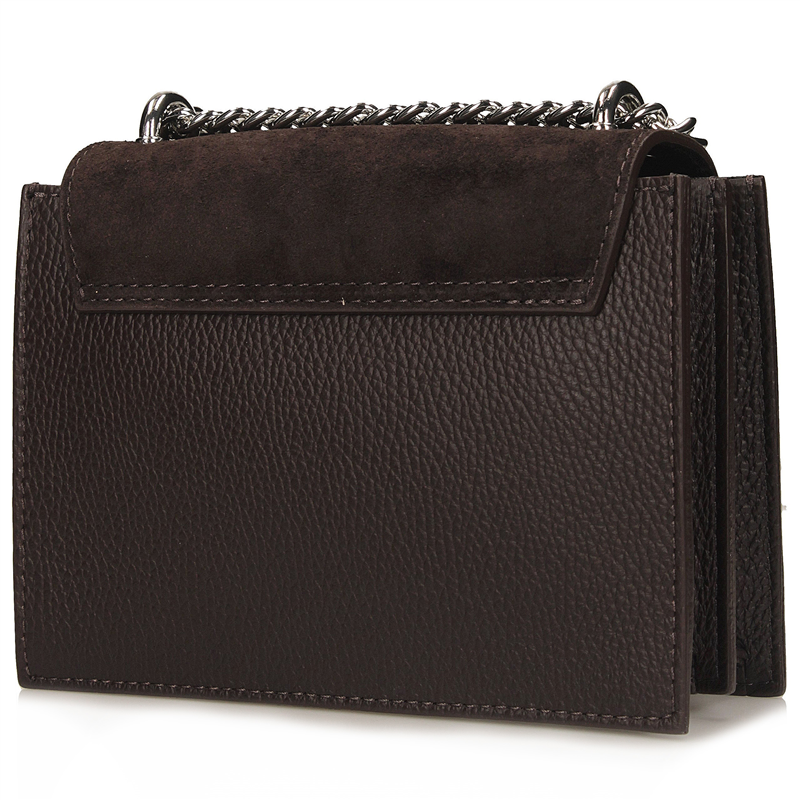 Listonoszka Toscanio w odcieniu ciemnego brązu to elegancki dodatek dla kobiet ceniących ponadczasowy styl i najwyższą jakość. Wykonana z naturalnej skóry licowej, zachwyca trwałością i subtelnym połyskiem, a zamszowa klapka dodaje jej głębi oraz wyjątkowego, szlachetnego charakteru.