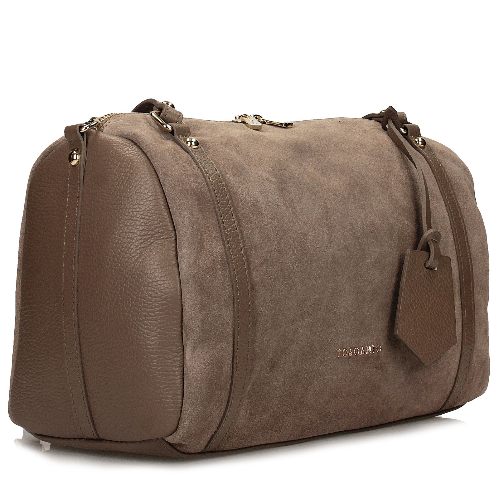 Elegancki kuferek Toscanio w odcieniu ciemnego beżu to idealne połączenie klasyki i subtelnej elegancji. Wykonany z wysokiej jakości zamszowej skóry naturalnej, zachwyca miękką fakturą oraz delikatnym, matowym wykończeniem, które nadaje mu wyjątkowy charakter.