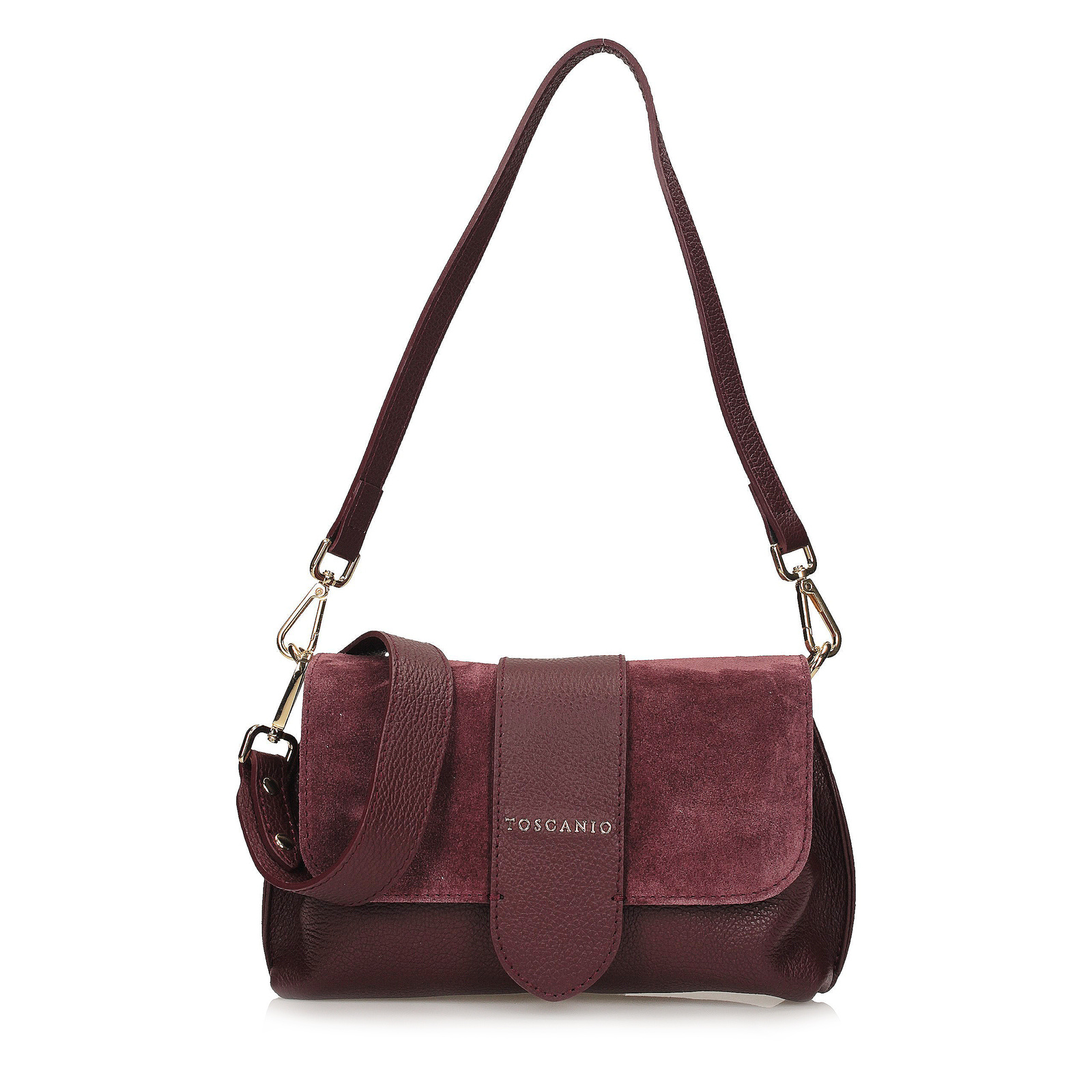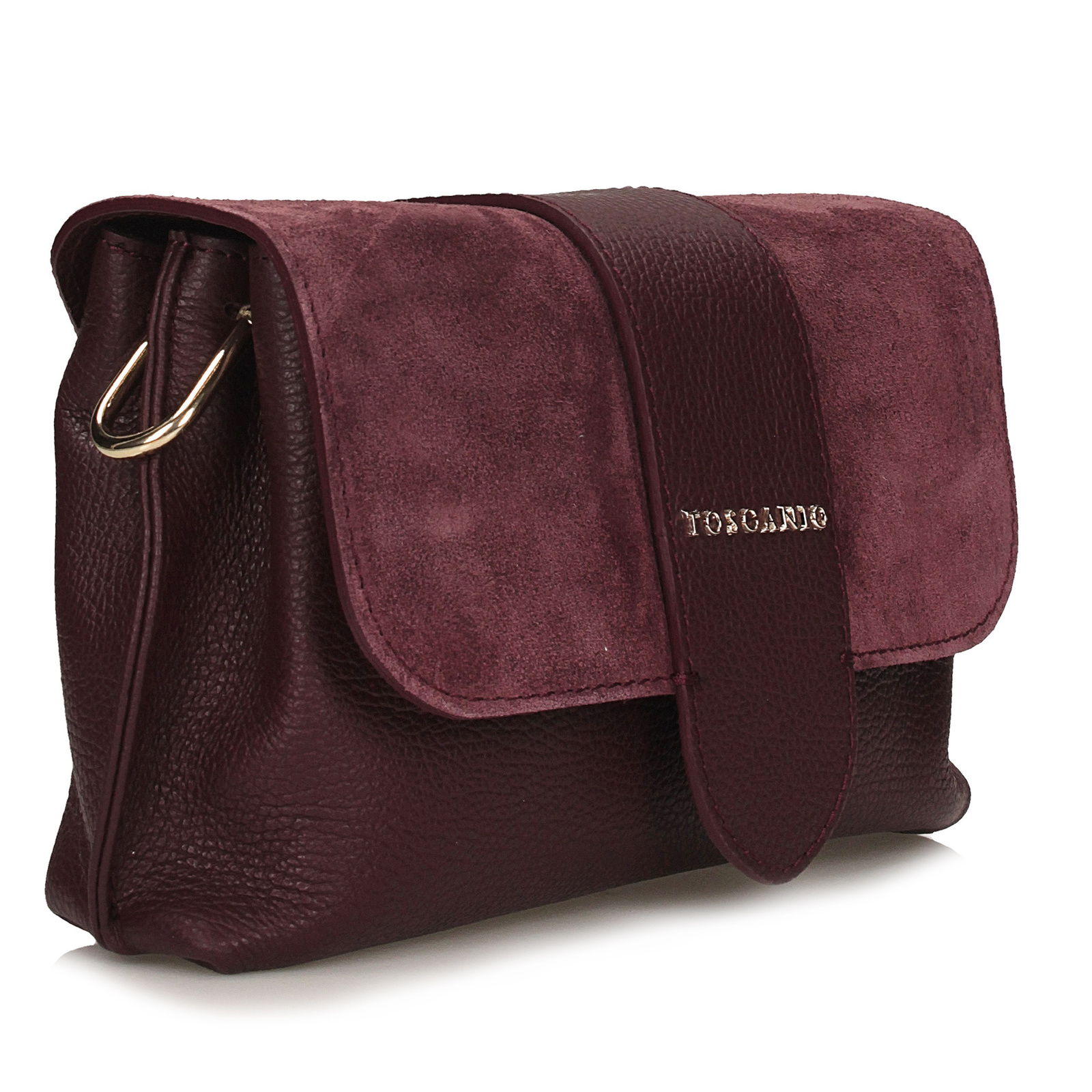 Torebka Toscanio w kolorze bordowym to elegancka propozycja dla kobiet, które cenią ponadczasowy styl z nutą nowoczesności. Wykonana z naturalnej skóry licowej, zachwyca subtelnym połyskiem i głębią koloru, a klapka ze wstawką z miękkiego zamszu dodaje jej wyjątkowego charakteru i szlachetności.