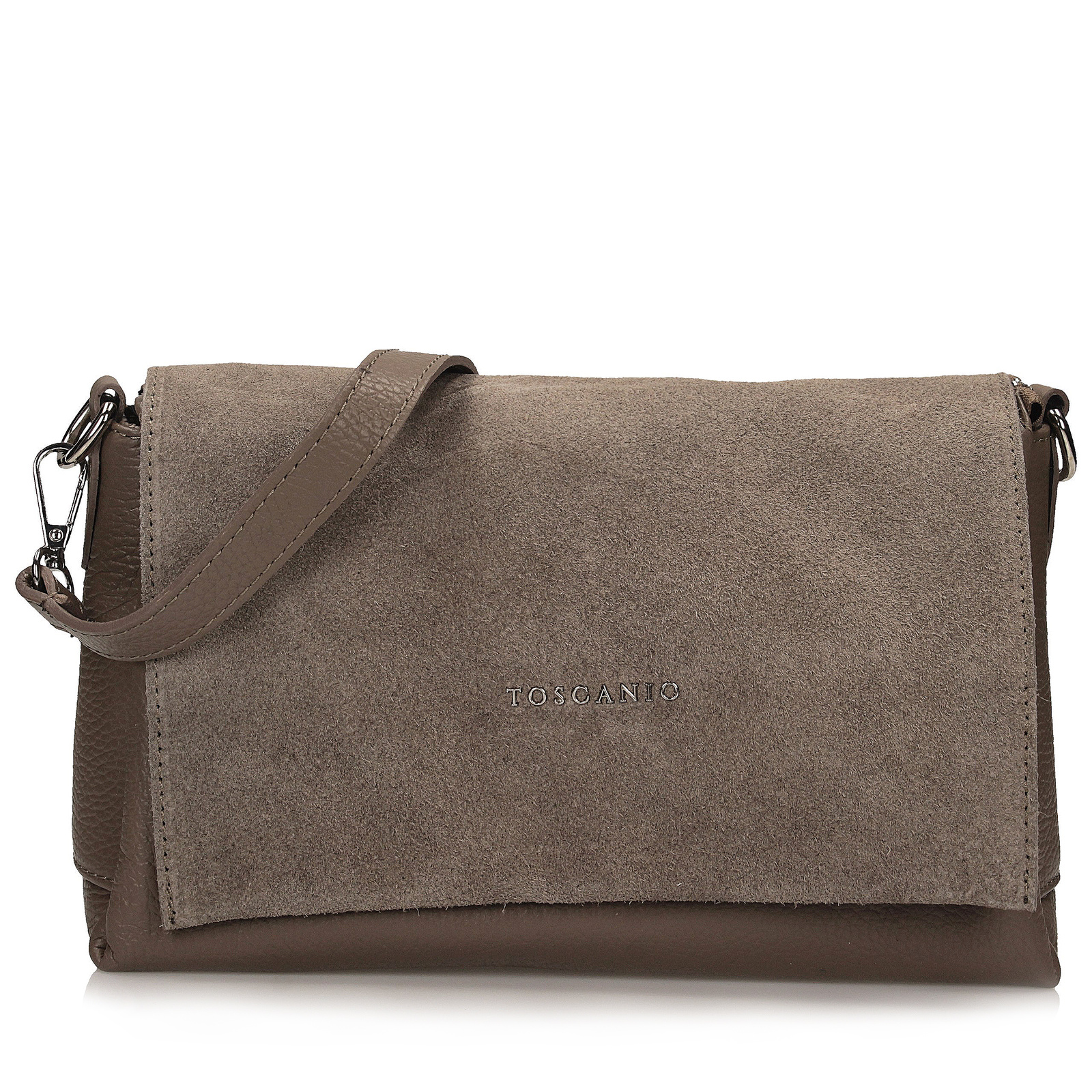 Ta listonoszka Toscanio to połączenie elegancji, funkcjonalności i szlachetnych materiałów. Wyróżnia się miękką skórą naturalną, a jej charakter podkreśla zamszowa klapa, która dodaje całości subtelnej, kobiecej struktury. Model ma wymiary 17 × 26 × 10 cm, dzięki czemu jest poręczny, ale jednocześnie bardzo praktyczny na co dzień.