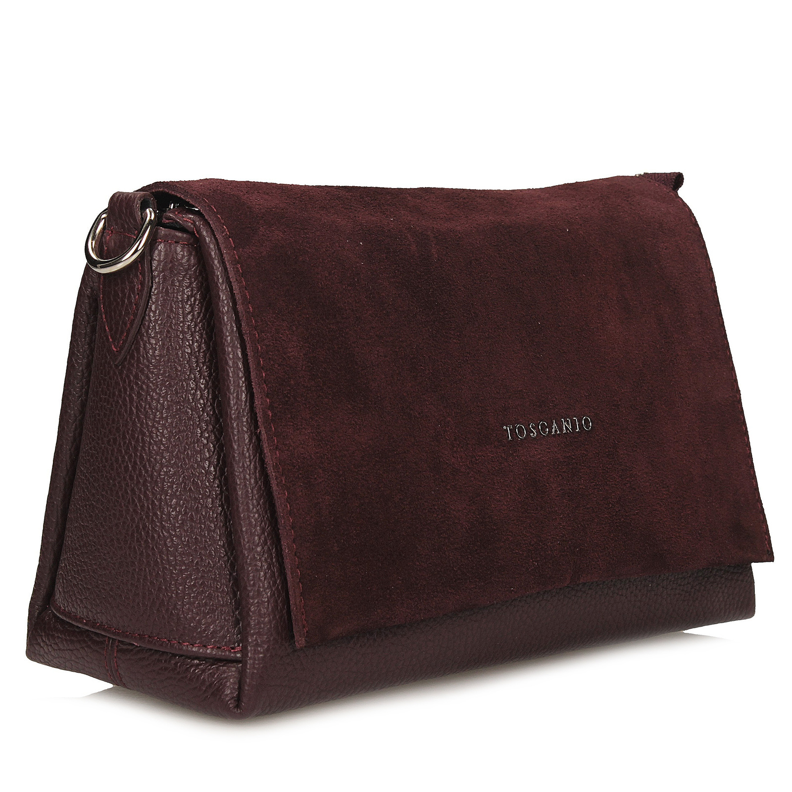 Ta listonoszka Toscanio w głębokim, bordowym kolorze to elegancki i wyjątkowy dodatek, który łączy klasykę z nowoczesnym charakterem. Wykonana ze skóry naturalnej, zachwyca jakością i subtelną strukturą, a jej wyjątkowy wygląd podkreśla zamszowa klapa, nadająca torebce szlachetności i kobiecego stylu.