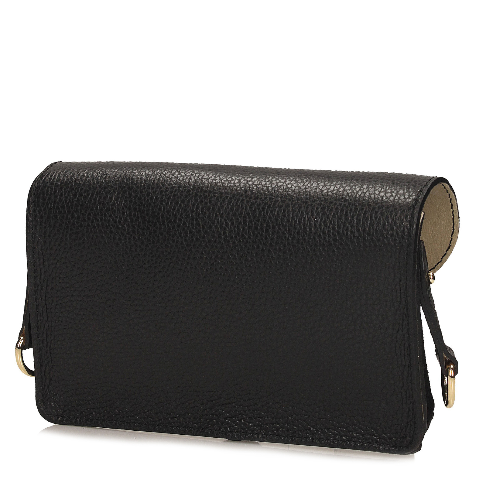 Torebka posiada jedną główną komorę zamykaną na metalowy magnes w kolorze złota, co zapewnia bezpieczeństwo przechowywanych drobiazgów. Wnętrze wyściełane jest skórą naturalną, a regulowany pasek wykonany z tej samej skóry o długości 110 cm umożliwia wygodne noszenie zarówno na ramieniu, jak i w formie crossbody.