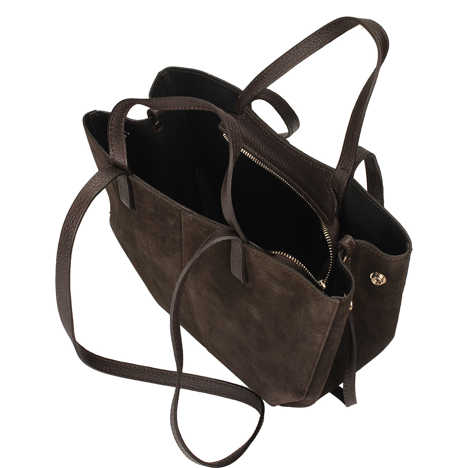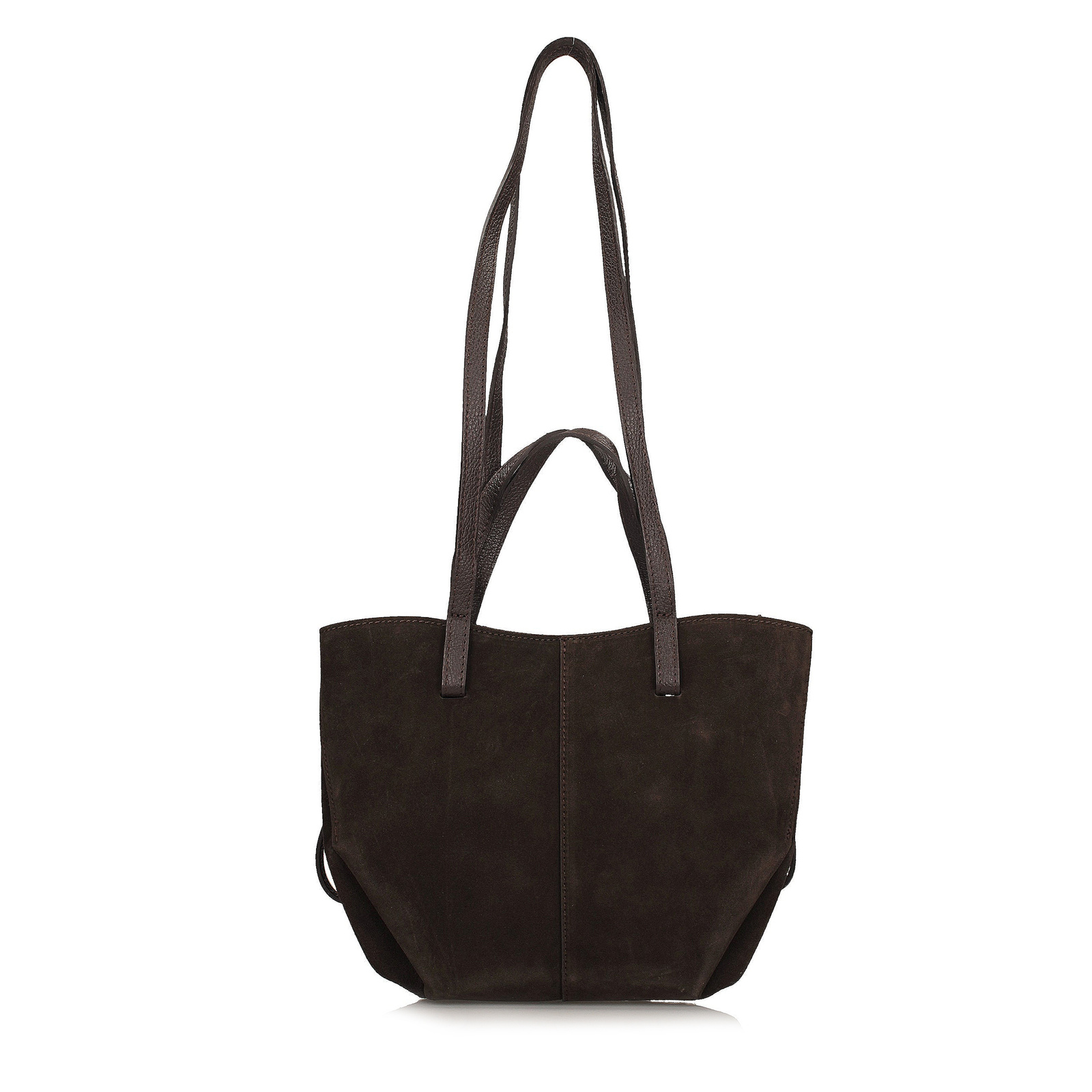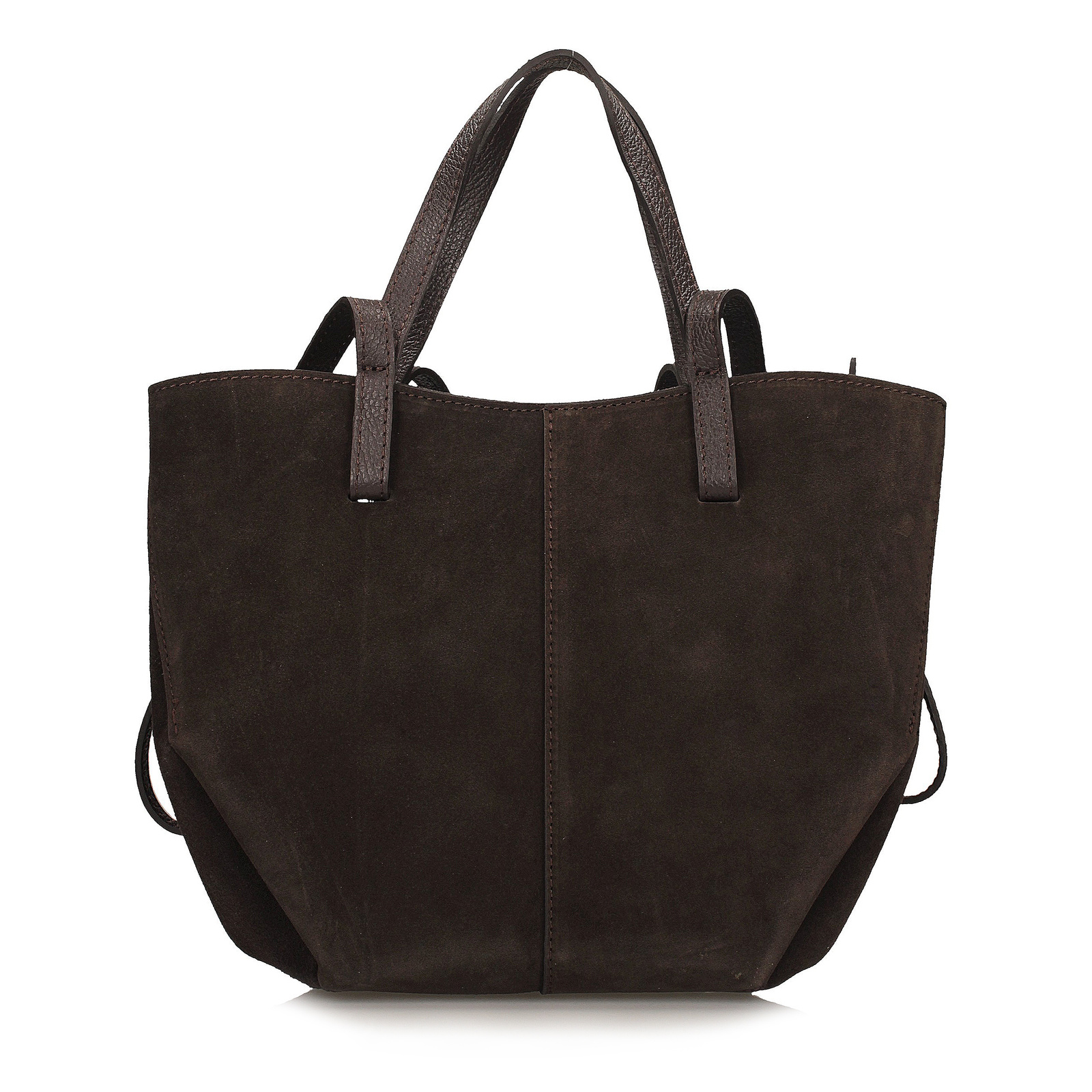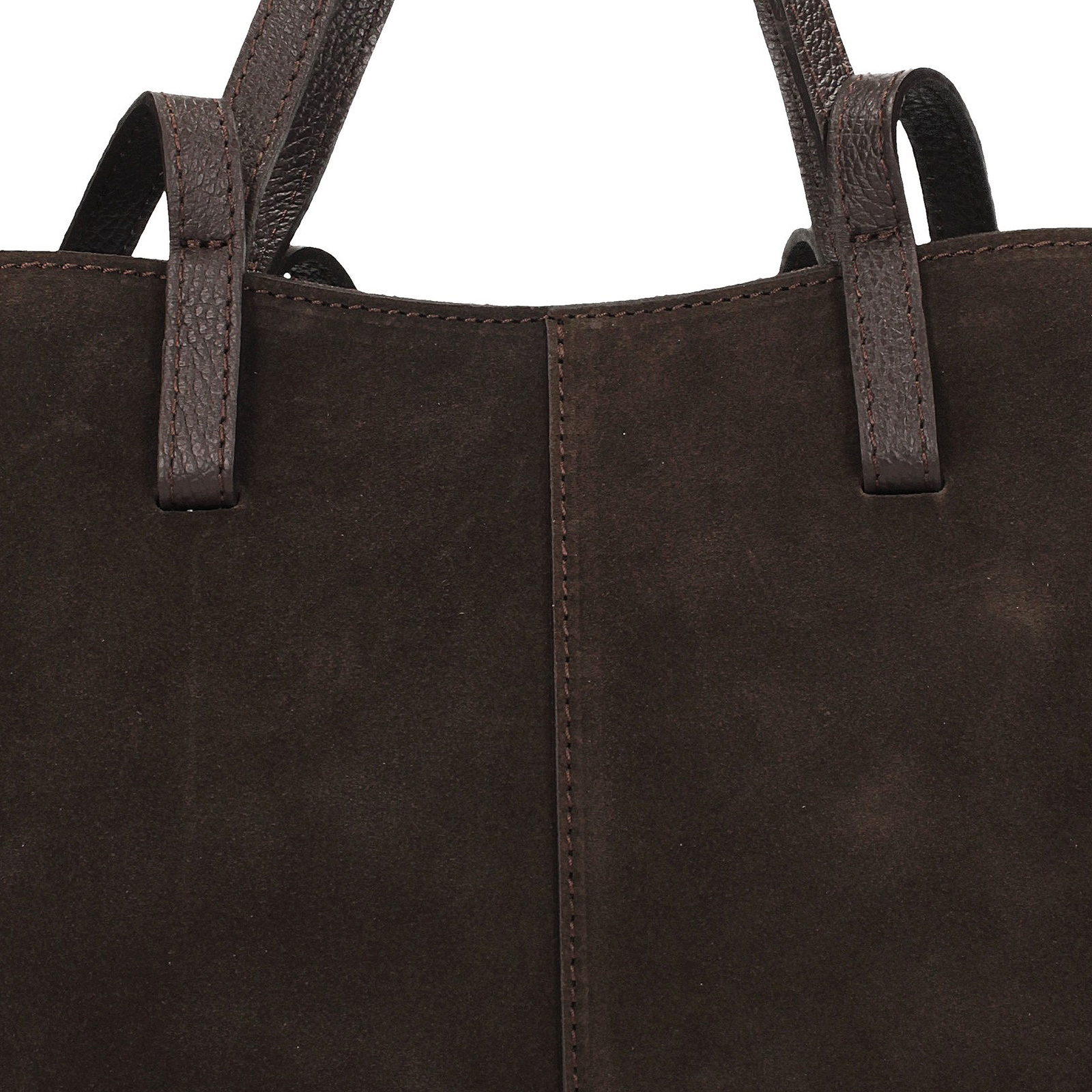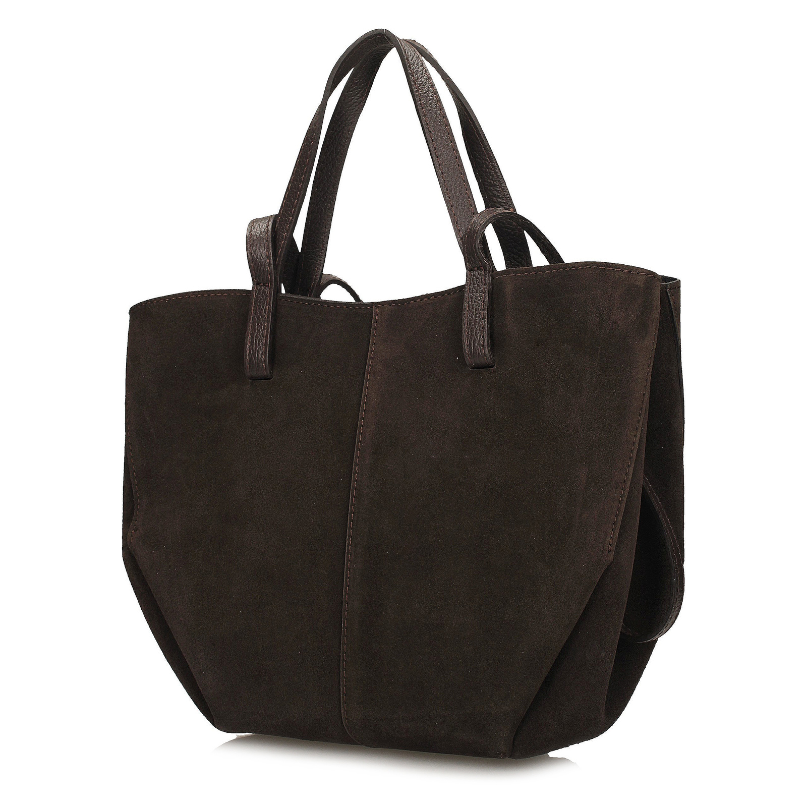 Brązowa torebka Toscanio wykonana z miękkiego, eleganckiego zamszu to klasyczny model, który doskonale sprawdzi się w codziennym użytkowaniu. Jej solidna konstrukcja i staranne wykończenie podkreślają wysoką jakość, a brązowy odcień nadaje całości ponadczasowego charakteru. Torebka posiada jedną przestronną komorę wyłożoną trwałą tkaniną, co zapewnia wygodę i łatwość organizacji niezbędnych rzeczy. Zapinana jest na zamek w złotym kolorze, który dodaje subtelnej elegancji.