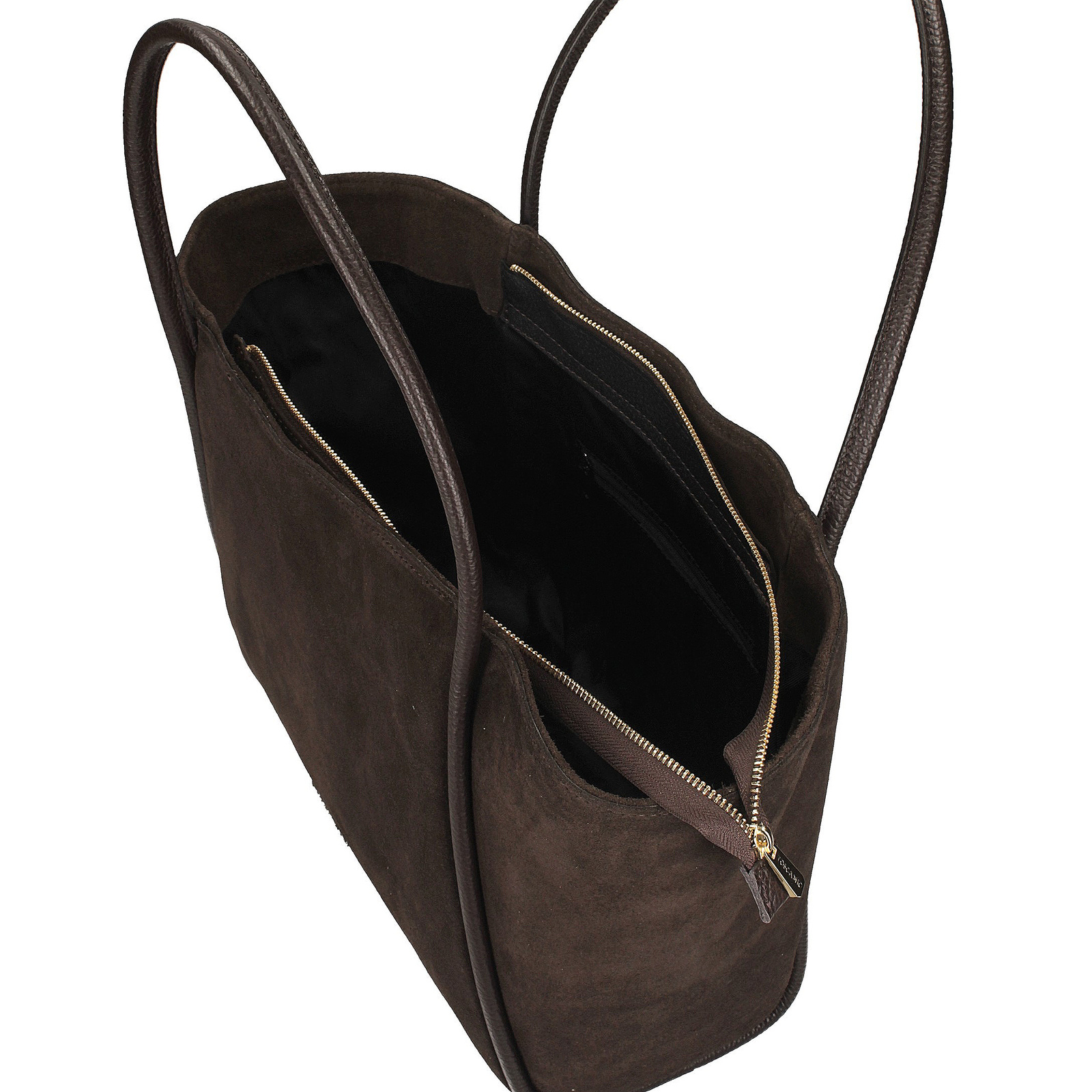 Klasyczna brązowa torebka Toscanio została zaprojektowana z myślą o kobietach, które cenią połączenie ponadczasowego stylu i wygody. Wykonana z miękkiego zamszu, ma przyjemną w dotyku strukturę i elegancki charakter, który sprawdzi się zarówno na co dzień, jak i w bardziej dopracowanych stylizacjach. Jej przestronne wnętrze, wyłożone tkaniną, mieści format A4 i oferuje jedną komorę oraz praktyczną kieszeń, dzięki czemu pozwala wygodnie uporządkować wszystkie potrzebne rzeczy. Model zamykany jest na solidny metalowy zamek w złotym kolorze, który dodaje całości delikatnego blasku. Torebka ma wysokość 30 cm, szerokość 50 cm i głębokość 14 cm, a komfortowe uszy o długości 50 cm umożliwiają swobodne noszenie jej na ramieniu. To uniwersalna, kobieca propozycja, idealna dla osób szukających funkcjonalności w klasycznej, zamszowej odsłonie.