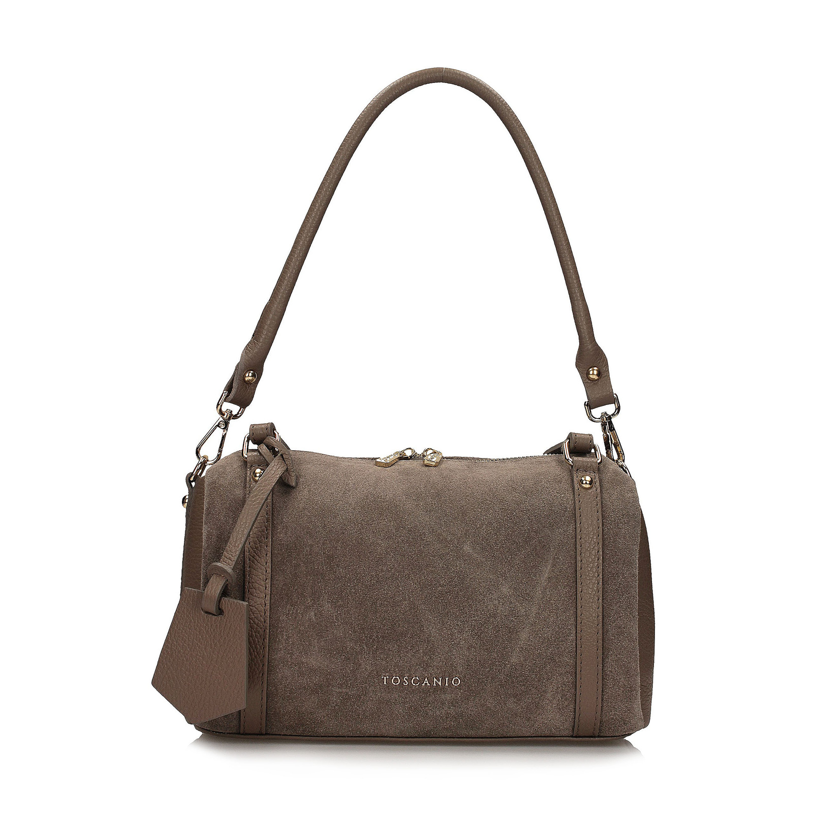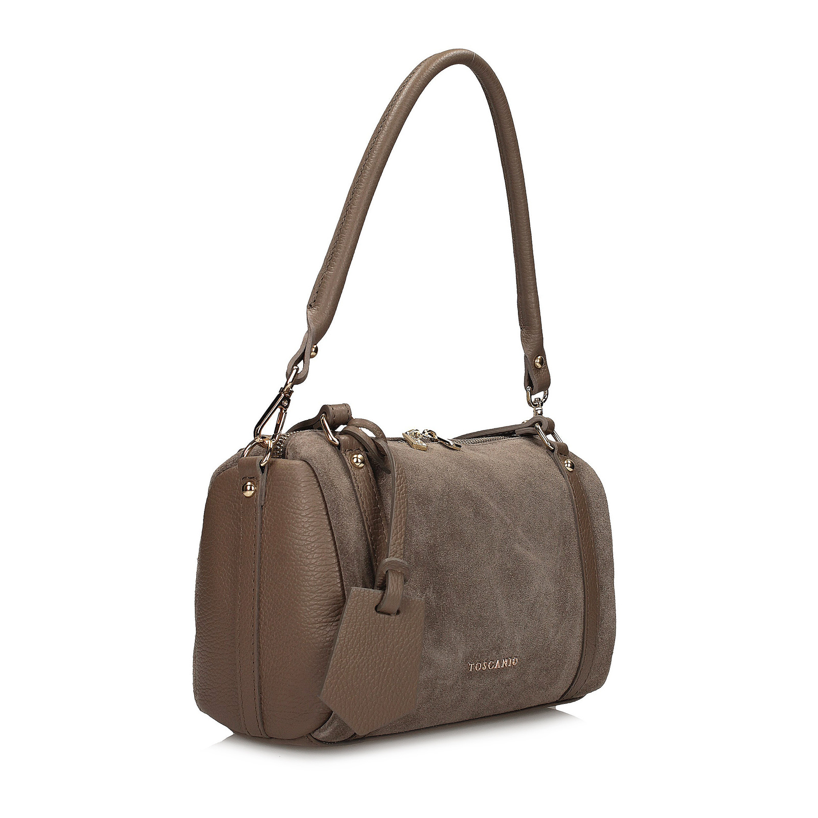 Beżowy kuferek Toscanio to wyjątkowy model o oryginalnym, cylindrycznym kształcie, który zachwyca subtelną elegancją i modowym charakterem. W całości wykonany z miękkiego, przyjemnego w dotyku zamszu, prezentuje się niezwykle kobieco i lekko, stanowiąc idealny dodatek zarówno na co dzień, jak i na specjalne okazje.