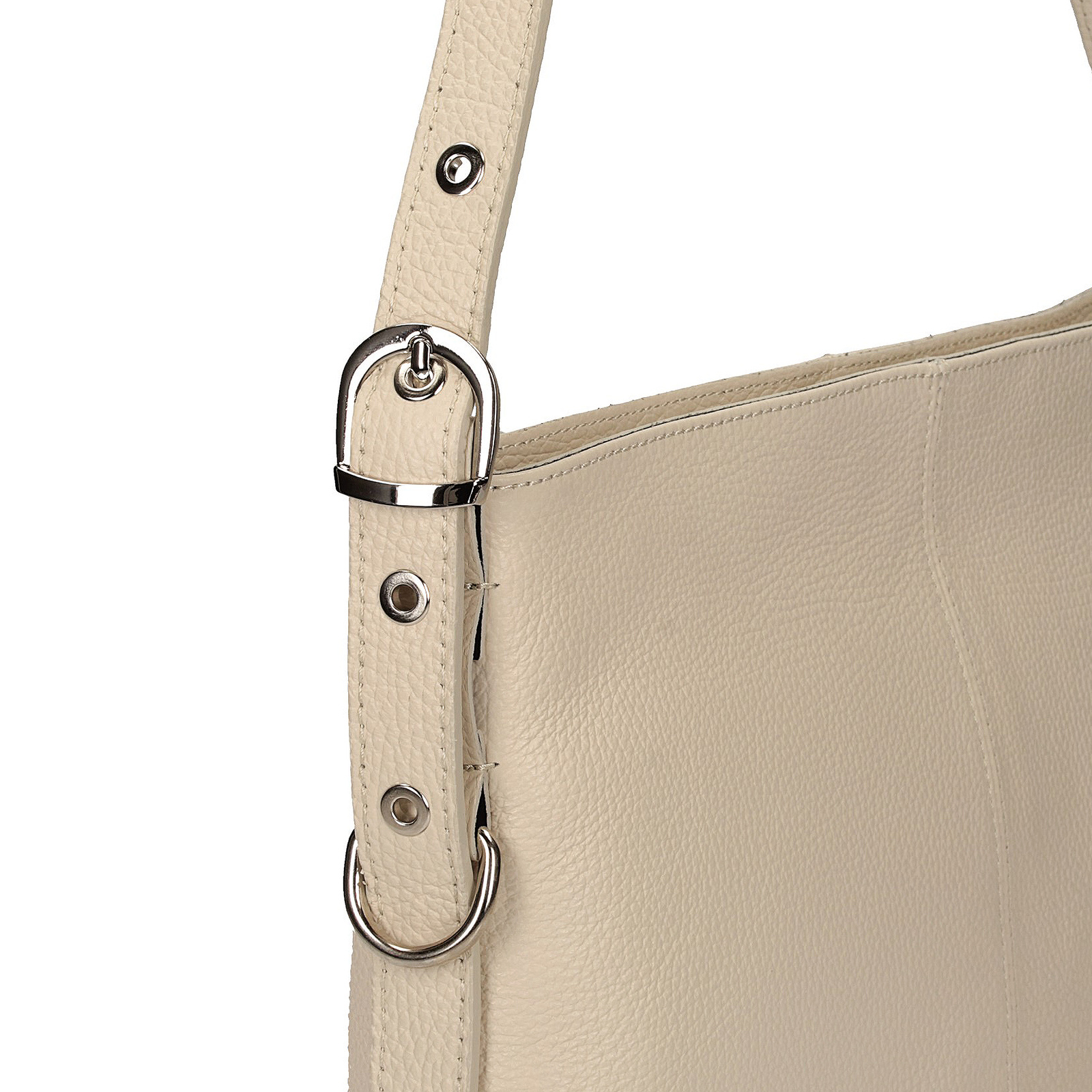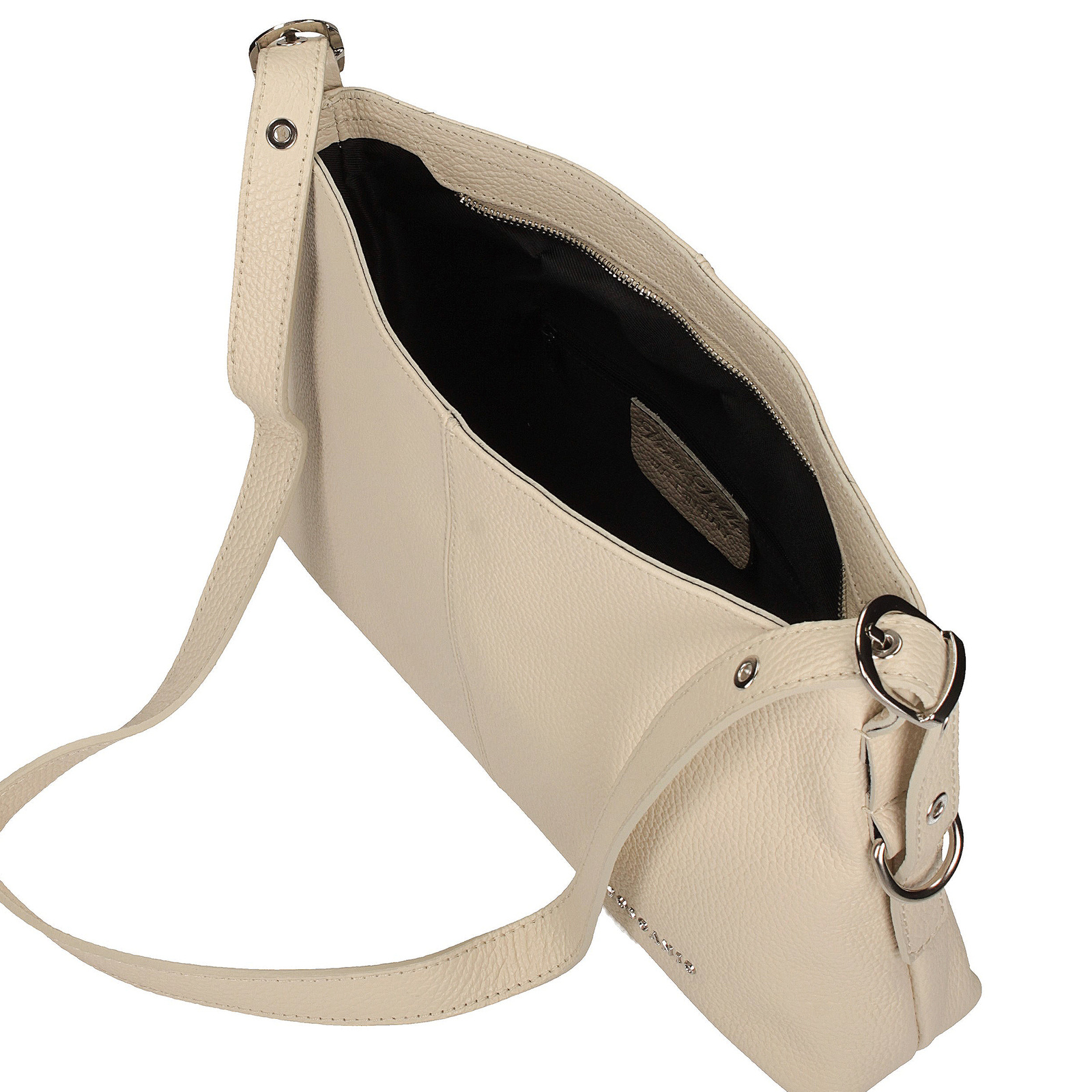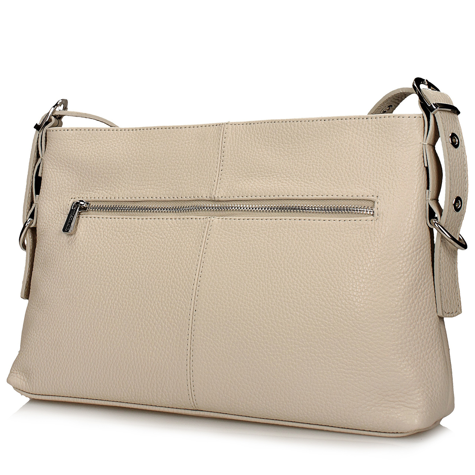 Długi, skórzany pasek o długości 100 cm umożliwia wygodne noszenie torebki na ramieniu lub na ukos. Torebka zamykana jest na metalowy zamek w kolorze srebrnym, co dodaje jej eleganckiego charakteru.