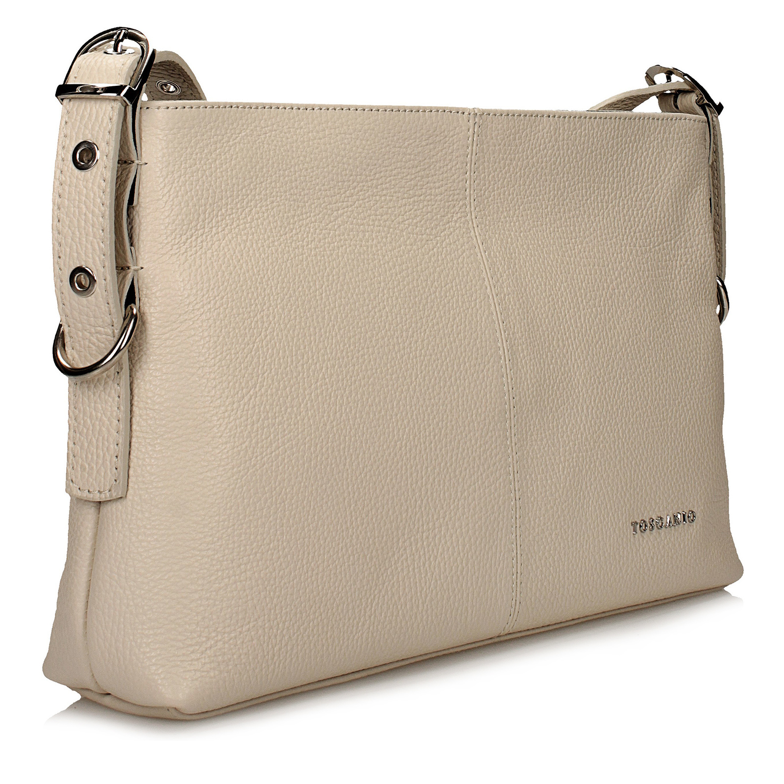 Elegancka listonoszka marki Toscanio to idealny wybór dla kobiet ceniących klasyczny styl i wysoką jakość wykonania. Wykonana z naturalnej skóry, zachwyca prostą formą i praktycznym rozmiarem. Jej wymiary (21 cm wysokości, 35 cm szerokości i 7 cm głębokości) sprawiają, że doskonale sprawdzi się na co dzień, nie przytłaczając swoją wielkością.