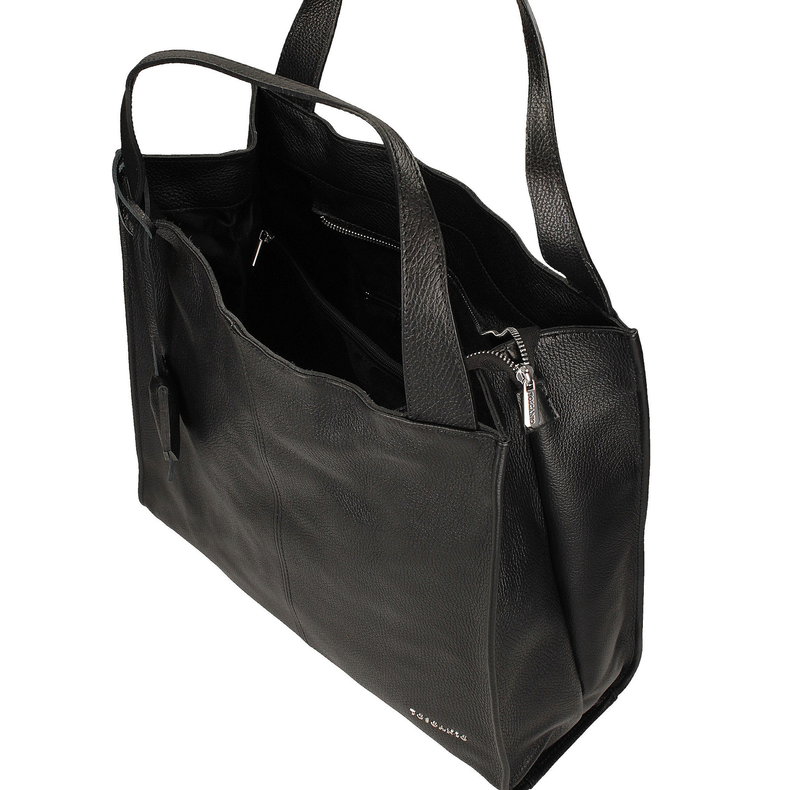 Elegancka i pojemna torebka shopperka Toscanio w klasycznym, czarnym kolorze to niezbędny dodatek w garderobie każdej kobiety. Wykonana z wysokiej jakości skóry naturalnej, łączy styl, trwałość i funkcjonalność. Jej minimalistyczny design sprawdzi się zarówno w pracy, jak i na co dzień.