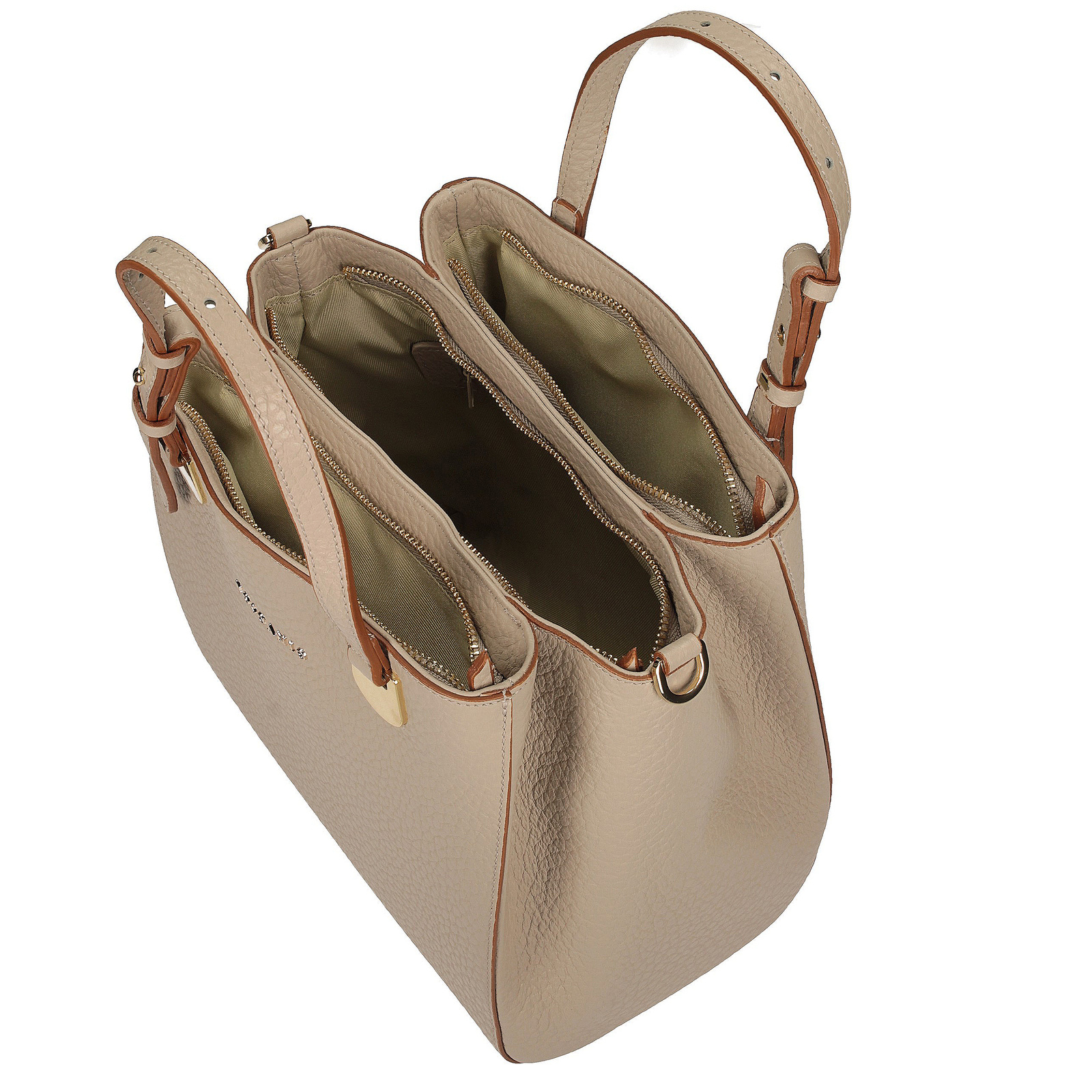 Torebka posiada 3 komory, które zapewniają porządek i wygodę w przechowywaniu rzeczy. Dodatkowo wyposażona jest w 2 kieszenie wewnętrzne, umożliwiające przechowywanie drobiazgów, takich jak telefon czy klucze.