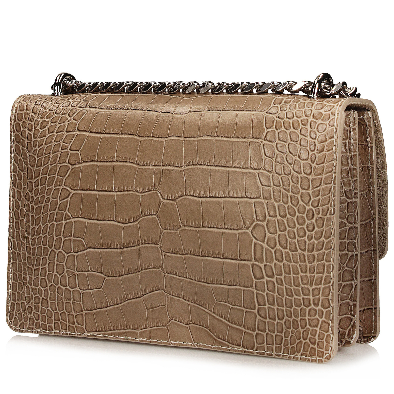 Stylowy pasek o długości 115 cm umożliwia komfortowe noszenie na ramieniu lub przez ramię. Zapięcie na magnes z metalowym elementem w kolorze srebra dodaje elegancji całości.