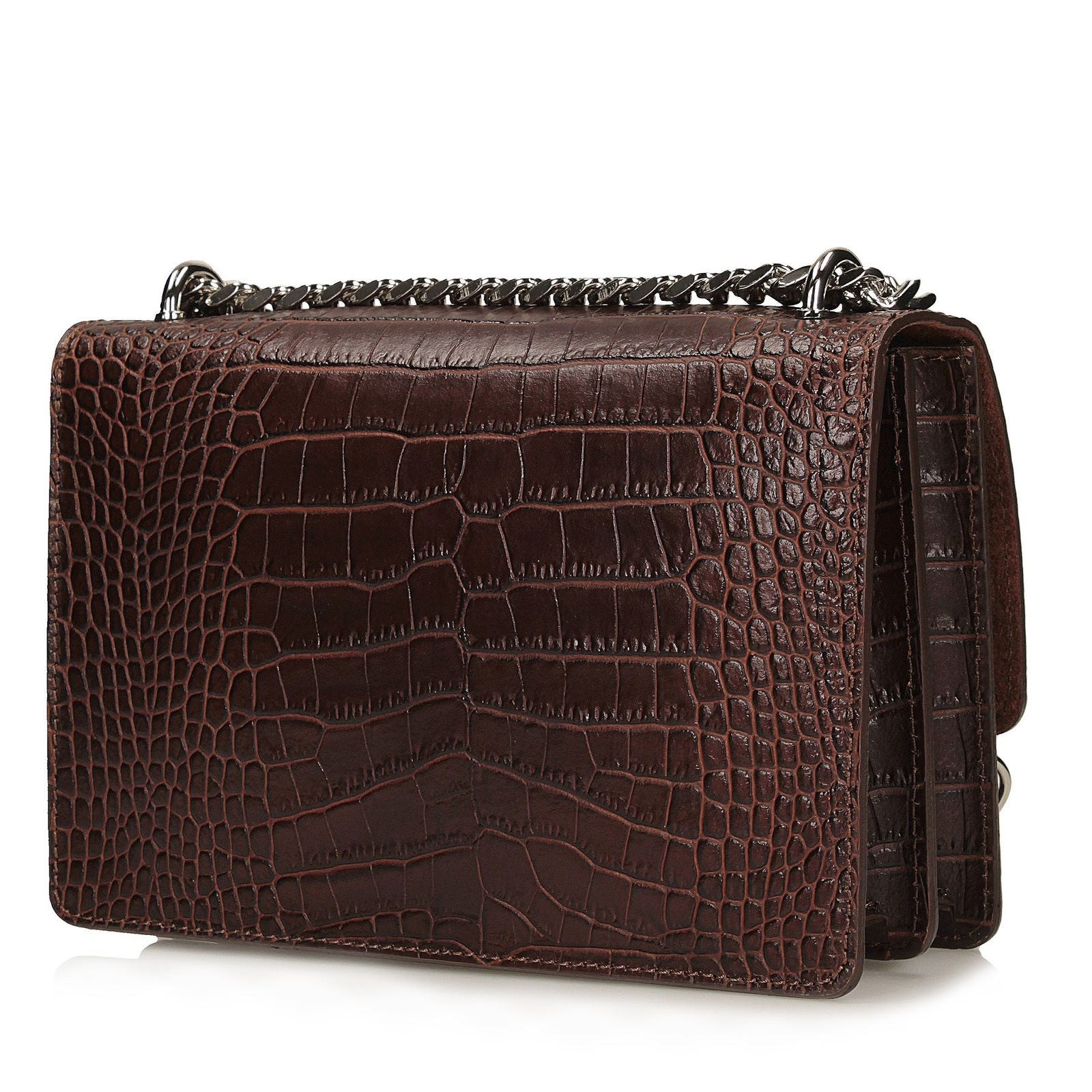 Stylowy pasek o długości 115 cm umożliwia komfortowe noszenie na ramieniu lub przez ramię. Zapięcie na magnes z metalowym elementem w kolorze srebra dodaje elegancji całości.