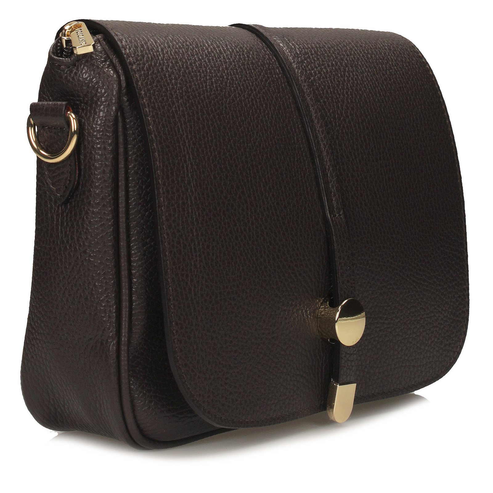 Stylowa torebka listonoszka Toscanio w kolorze ciemnego brązu to idealny wybór dla kobiet ceniących połączenie klasyki z funkcjonalnością. Wykonana z wysokiej jakości skóry naturalnej, zachwyca starannym wykończeniem, trwałością i ponadczasowym charakterem.