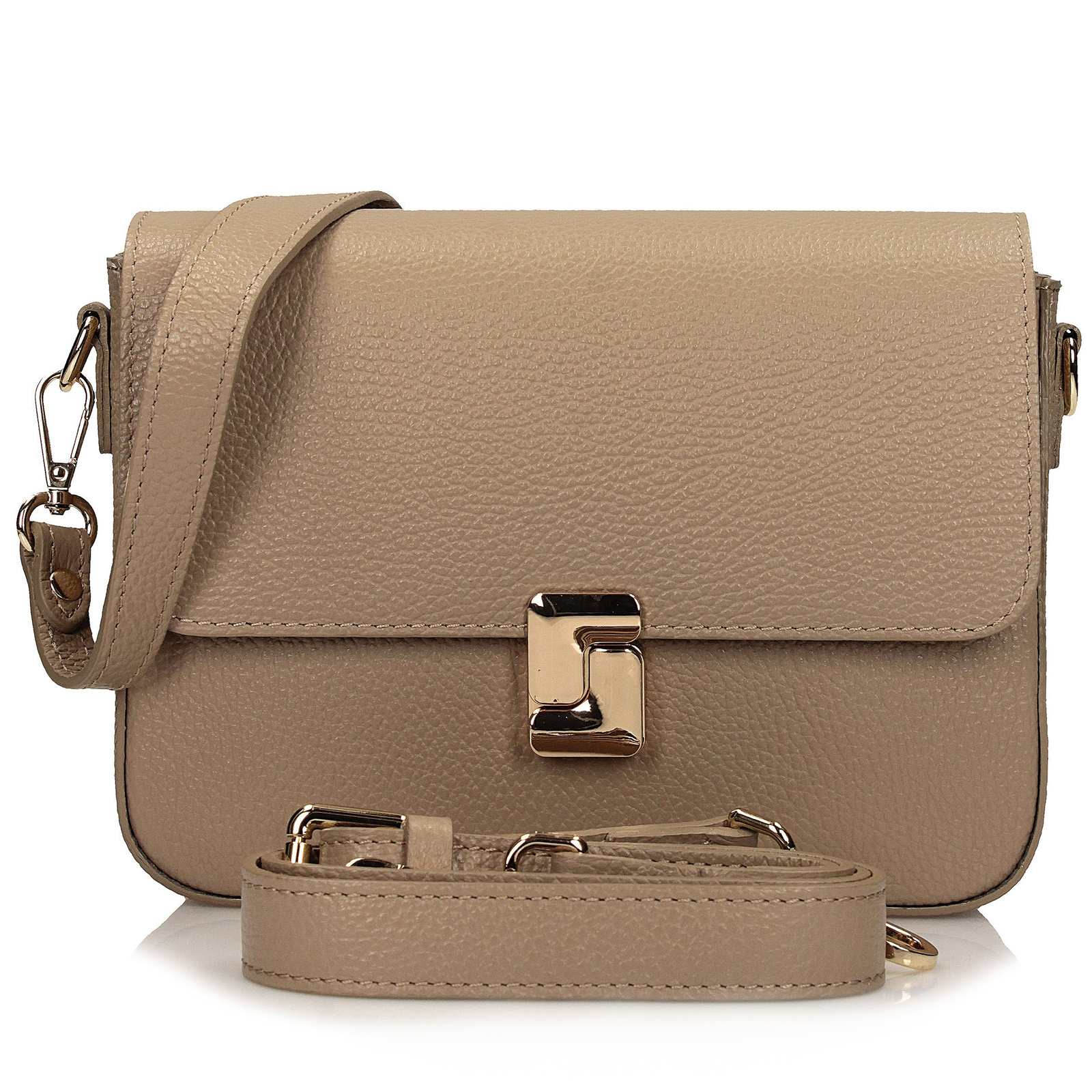 Klasyczna, a zarazem wyjątkowa – listonoszka Toscanio w subtelnym beżowym odcieniu to elegancki dodatek dla kobiet ceniących styl i wygodę. Torebka wyróżnia się ozdobnym złotym zapięciem, które nadaje jej charakteru i ponadczasowego uroku.