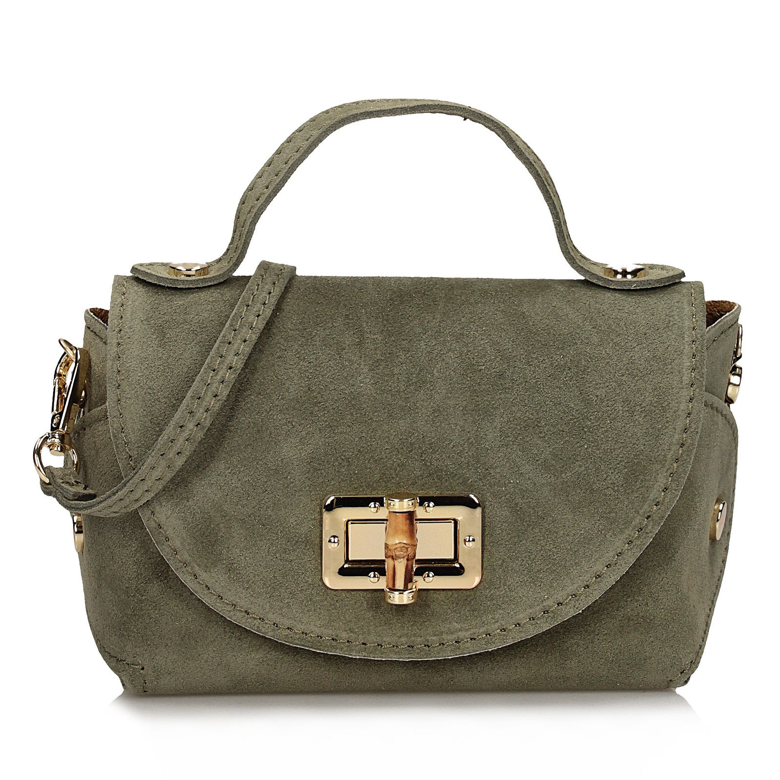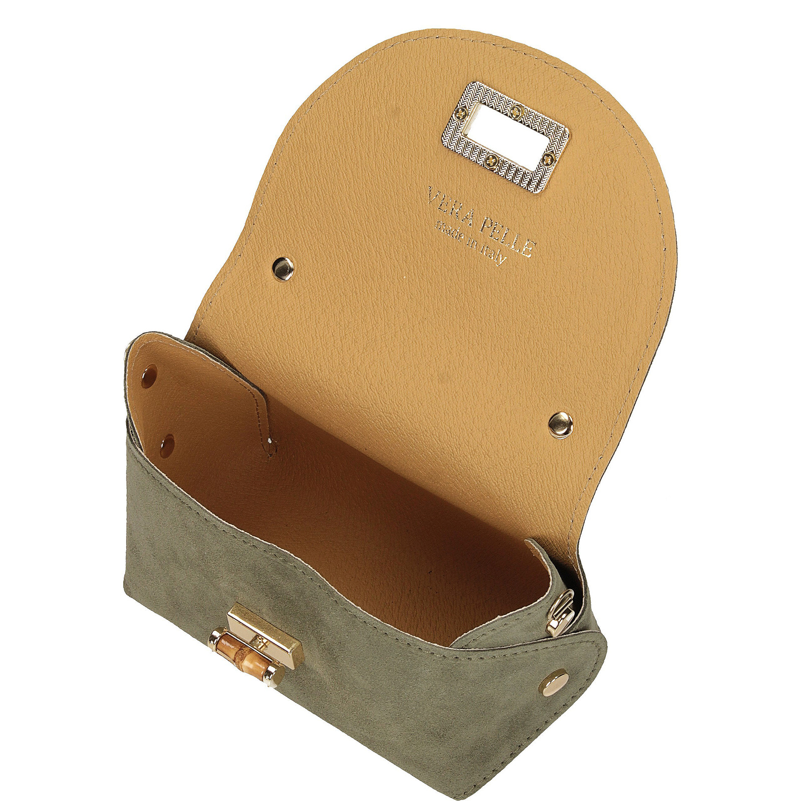 Wnętrze torebki jest wykończone naturalną skórą, co zapewnia trwałość i elegancki wygląd. Torebka posiada jedną komorę, co wystarcza do przechowania najpotrzebniejszych rzeczy, takich jak telefon, portfel czy kosmetyki. Zamek w formie bigla w kolorze złota to klasyczne rozwiązanie, które dodaje torebce szyku i elegancji.