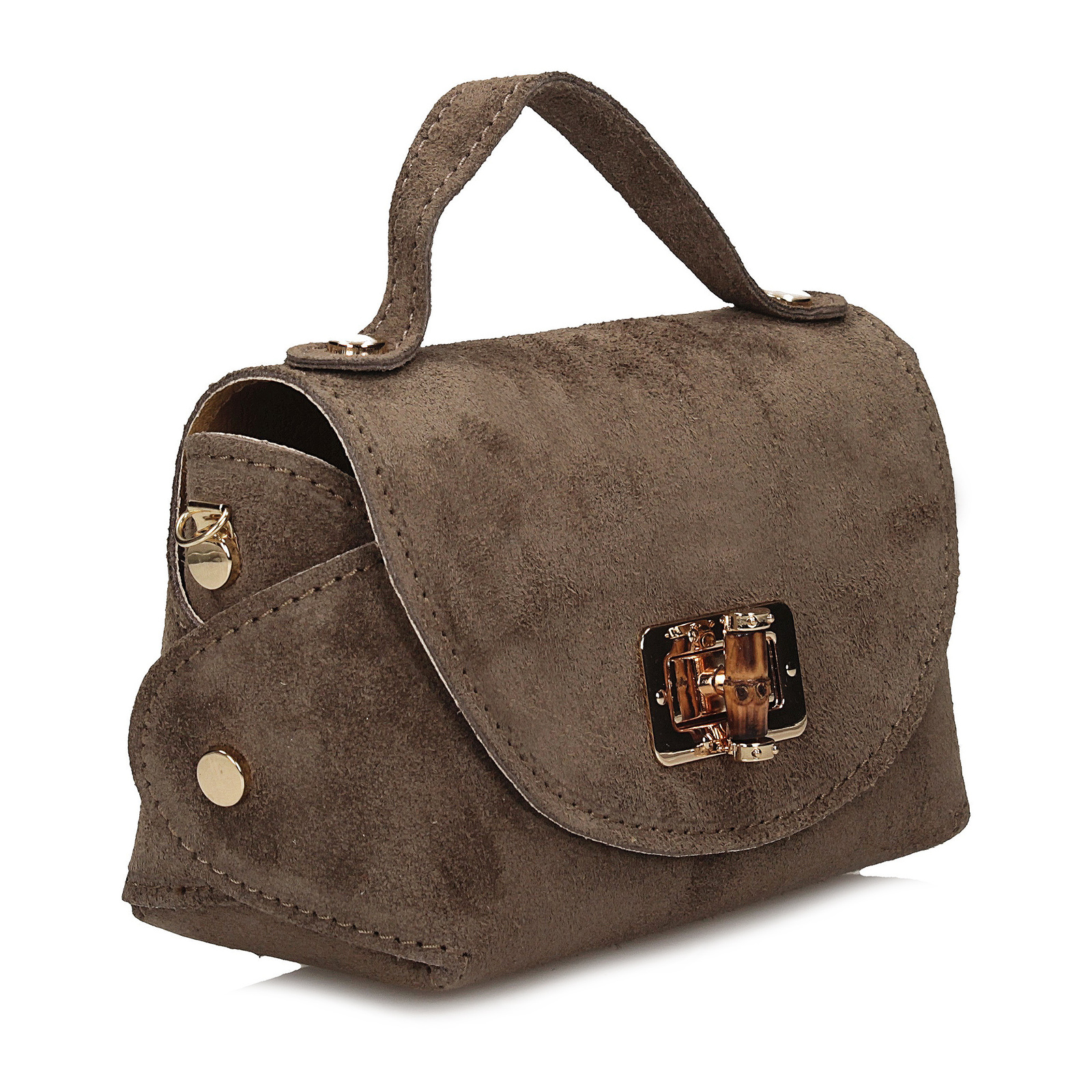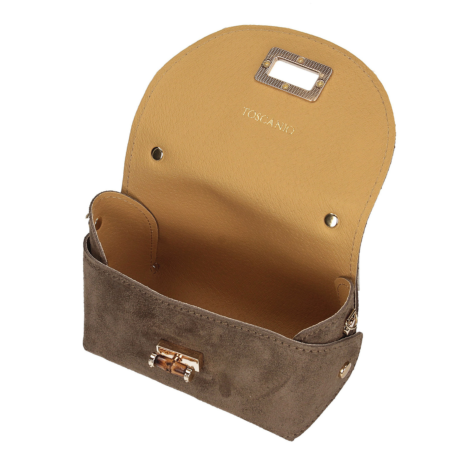 Torebka Toscanio w kształcie kopertówki to elegancki wybór na specjalne okazje, który łączy klasyczny design z nowoczesnym wykończeniem. Wykonana z wysokiej jakości zamszowej skóry, torebka przyciąga uwagę subtelnym, ale luksusowym wyglądem. Jej kompaktowe wymiary (wysokość 11 cm, szerokość 16 cm, głębokość 8 cm) sprawiają, że jest idealna na wieczorne wyjścia, bankiety czy wesela, gdzie chcesz zabrać ze sobą tylko najważniejsze drobiazgi.