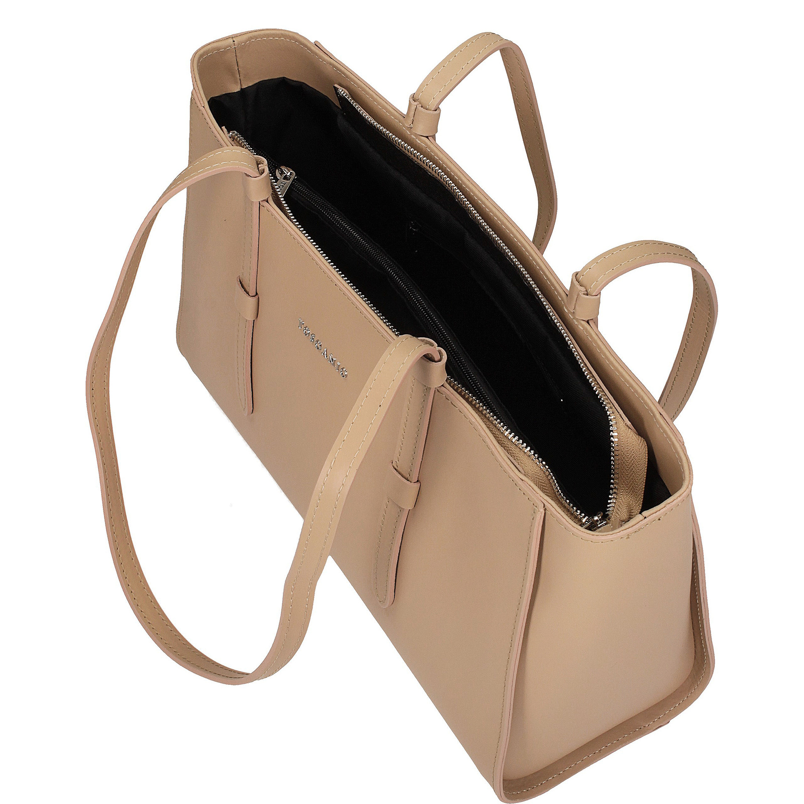 Zapięcie torebki stanowi solidny zamek metalowy w kolorze srebrnym, który dodaje subtelnej elegancji. Dzięki dużemu uchwytowi, torebkę można wygodnie nosić na ramieniu.