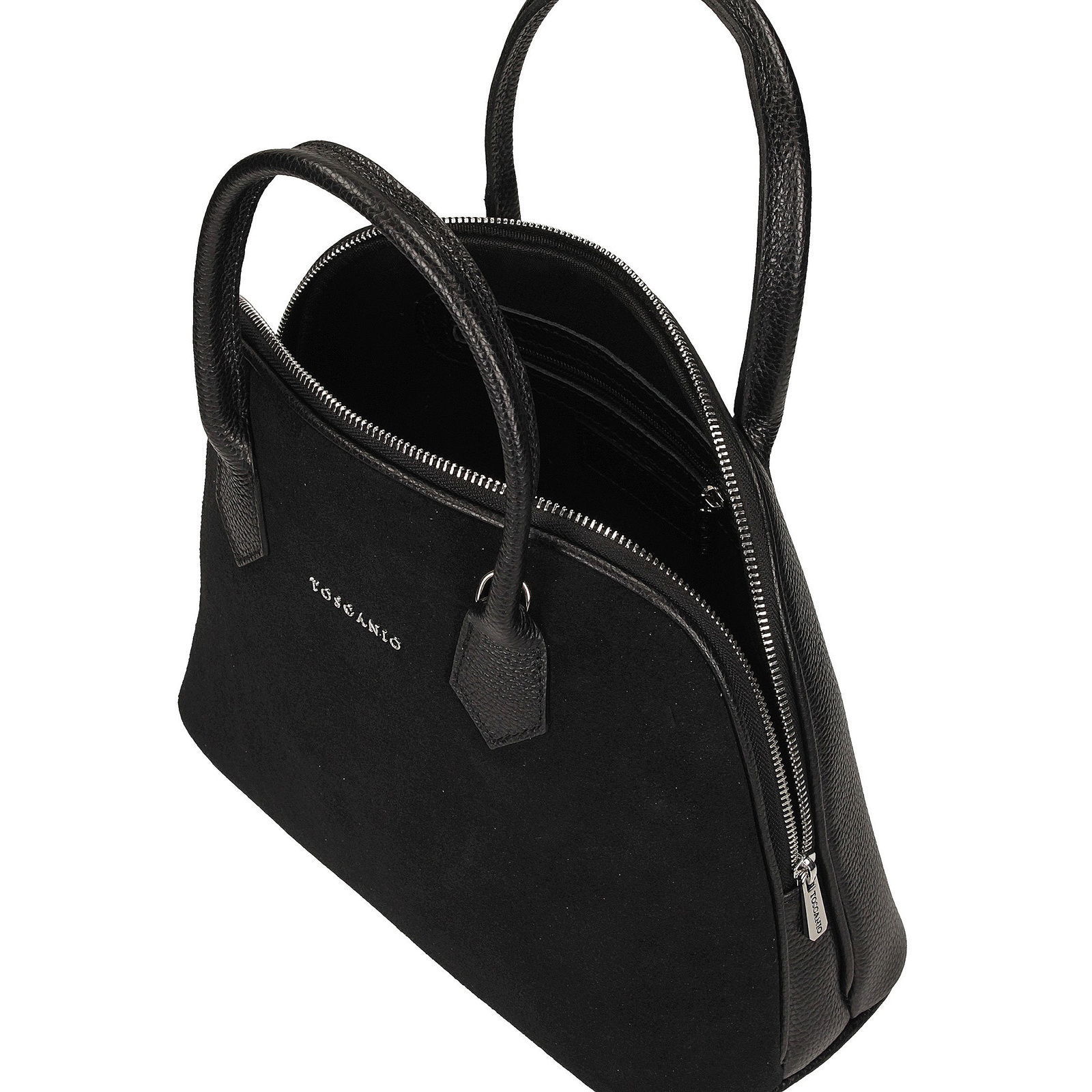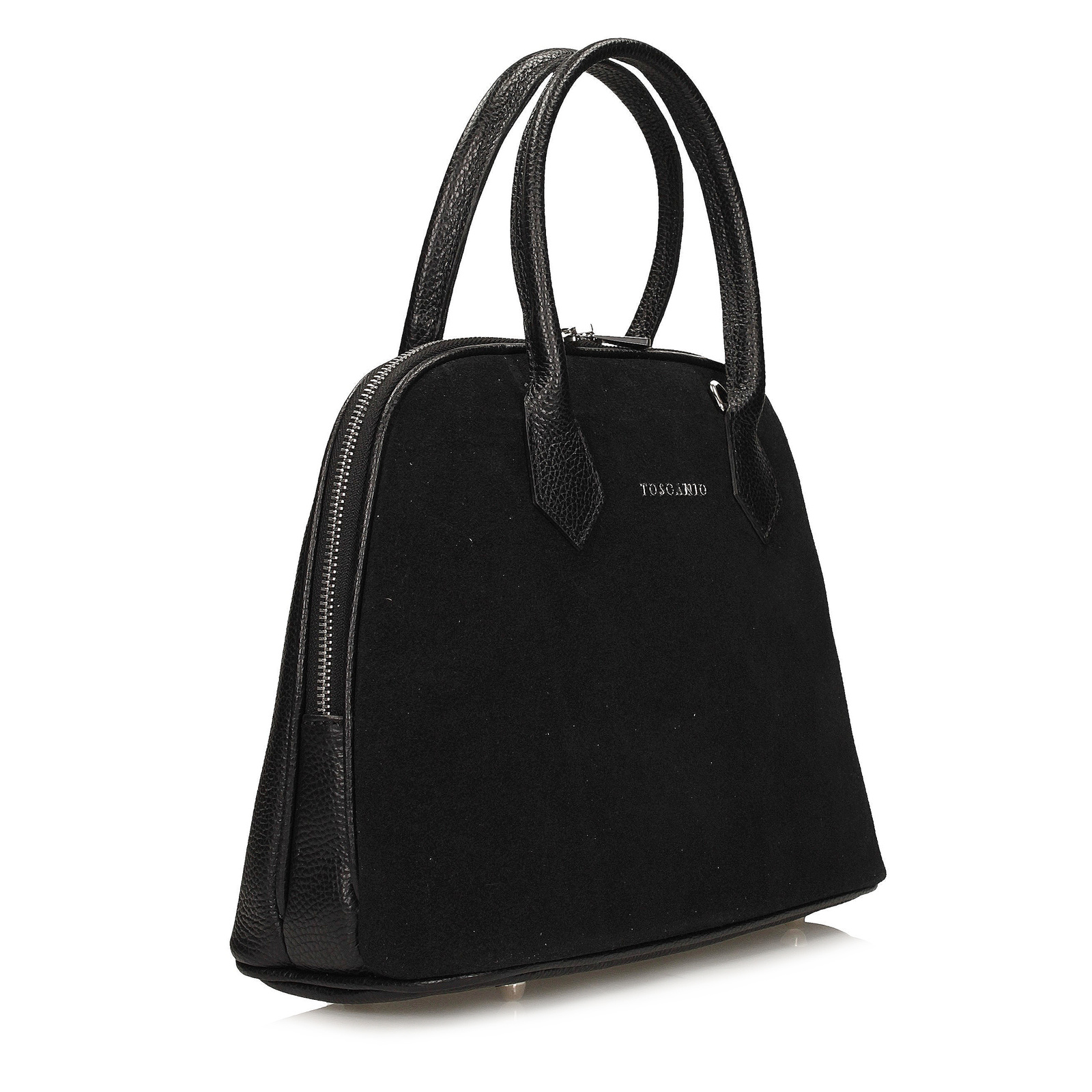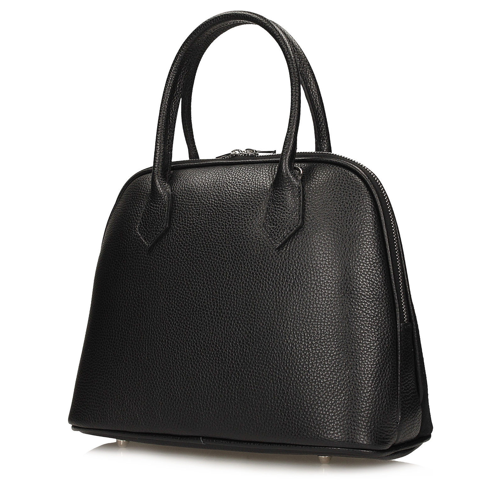 Czarna torebka klasyczna Toscanio to ponadczasowy model wykonany z wysokiej jakości naturalnej skóry, który świetnie sprawdzi się zarówno na co dzień, jak i w bardziej formalnych stylizacjach. Prosta forma podkreślona została srebrnymi detalami i wygodnym zapięciem na zamek. Kompaktowy rozmiar pomieści wszystkie niezbędne rzeczy, a staranne wykończenie i funkcjonalna kieszeń wewnątrz zapewniają wygodę użytkowania. Dzięki dwóm opcjom noszenia – za krótsze uszy lub na długim pasku – torebka dopasowuje się do różnych okazji i stylów.