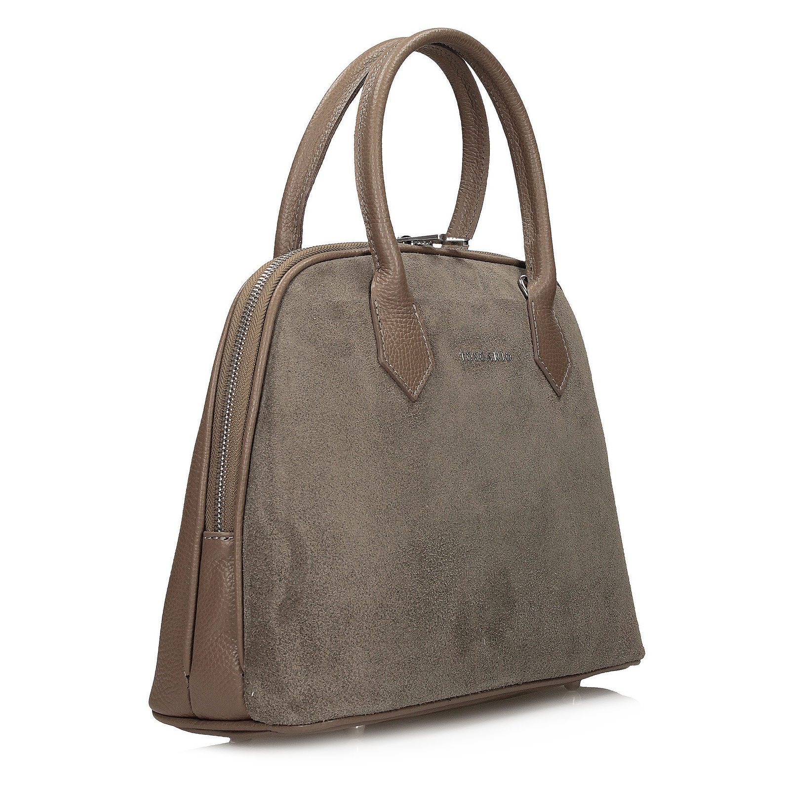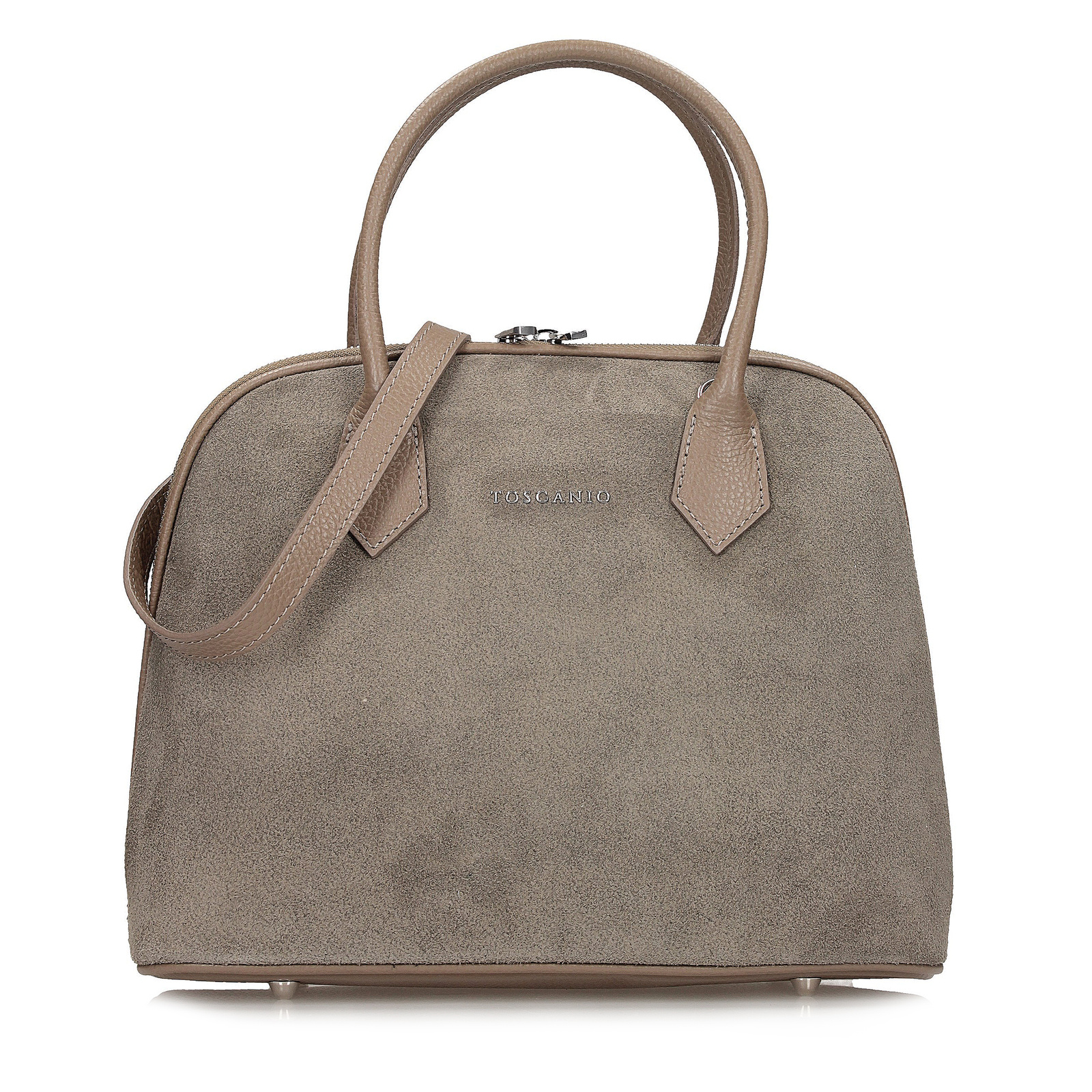 Torebka klasyczna Toscanio w kolorze ciemnego beżu to elegancka i uniwersalna propozycja, idealna do codziennych i półformalnych stylizacji. Wykonana z wysokiej jakości naturalnej skóry, zachwyca prostą linią i subtelnym wykończeniem. Srebrne detale i zapięcie na zamek nadają jej nowoczesnego charakteru, a poręczny format zapewnia wygodę noszenia. Model wyposażono w krótsze uchwyty oraz długi, regulowany pasek, dzięki czemu można nosić ją zarówno w ręku, jak i na ramieniu. Wewnątrz znajduje się praktyczna kieszeń, która ułatwia organizację drobiazgów. Idealna dla kobiet ceniących funkcjonalność i klasyczny styl w nowoczesnym wydaniu.