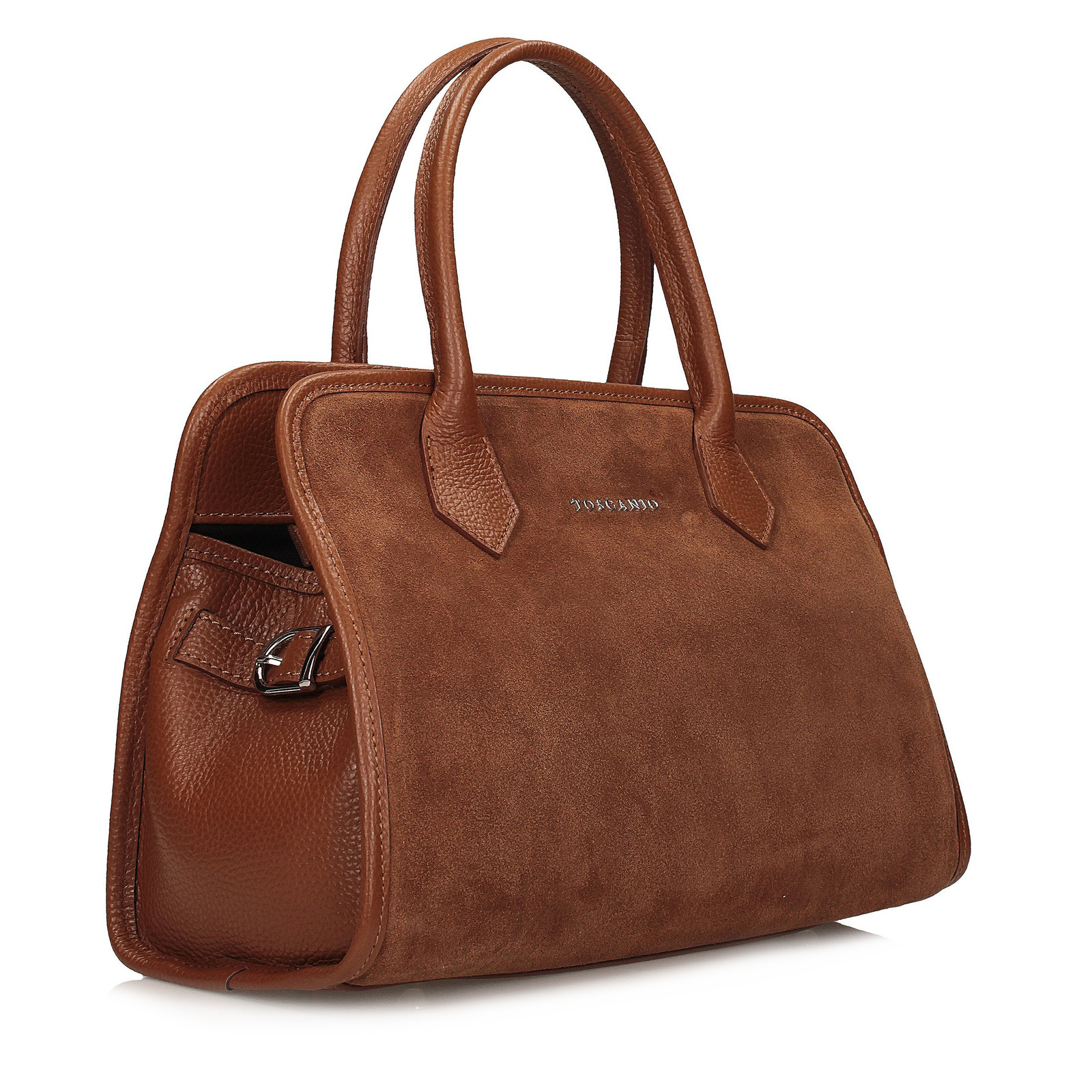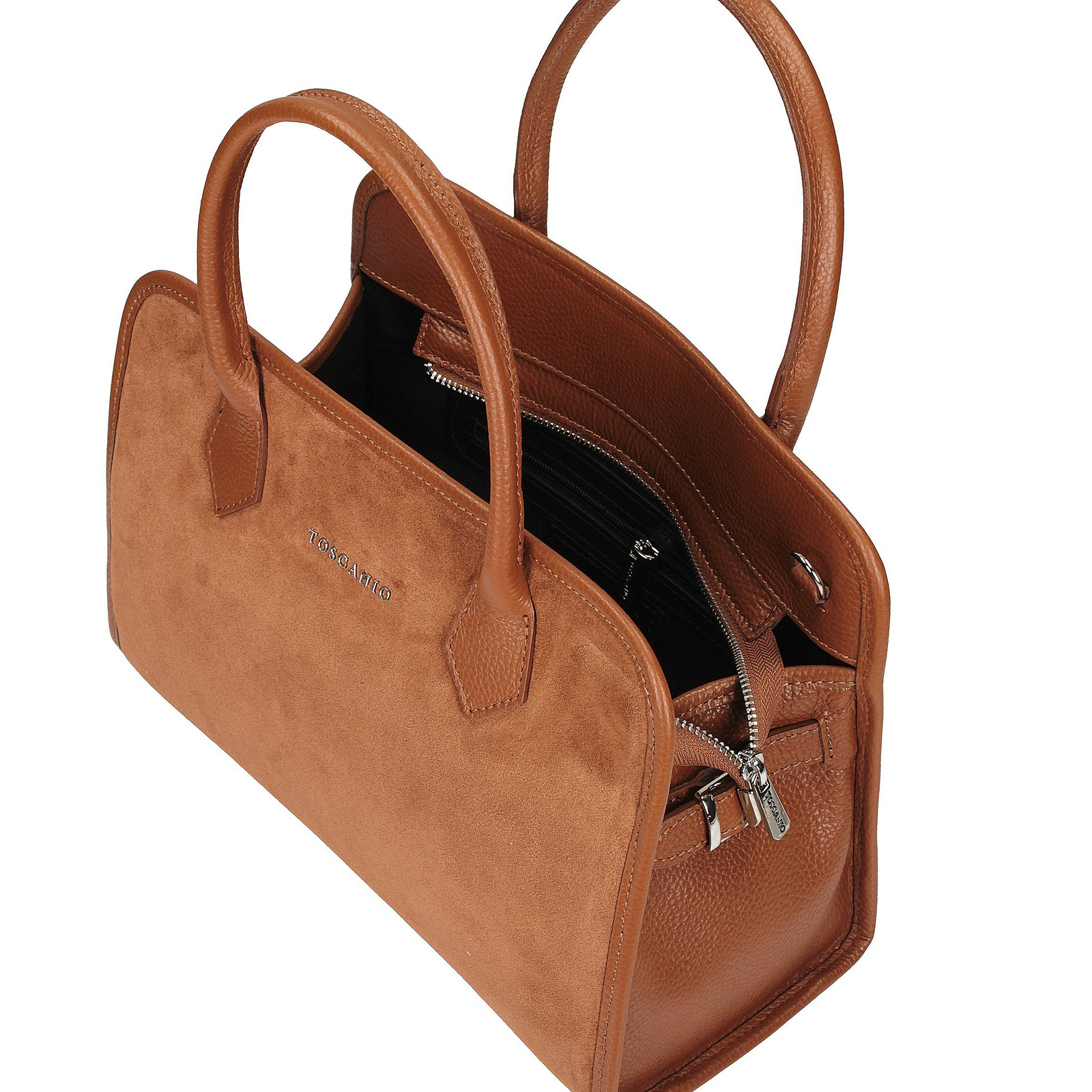 Elegancka i ponadczasowa torebka Toscanio w ciepłym rudym odcieniu to model, który doskonale łączy klasyczny styl z subtelnym akcentem nowoczesności. Wykonana z naturalnej skóry, zachwyca gładką fakturą i dodatkiem miękkiego weluru na przednim panelu, który nadaje jej wyjątkowego charakteru. Jej przemyślany fason mieści niezbędne drobiazgi, a wewnętrzne kieszenie pomagają w zachowaniu porządku. Torebkę nosić można zarówno za krótsze uchwyty, jak i na regulowanym pasku. To idealny wybór dla kobiet ceniących elegancję w codziennej odsłonie.