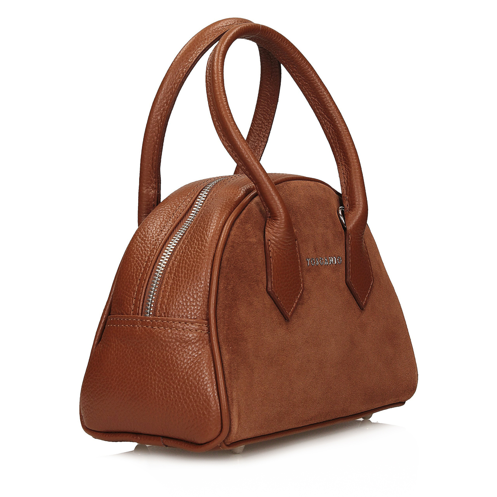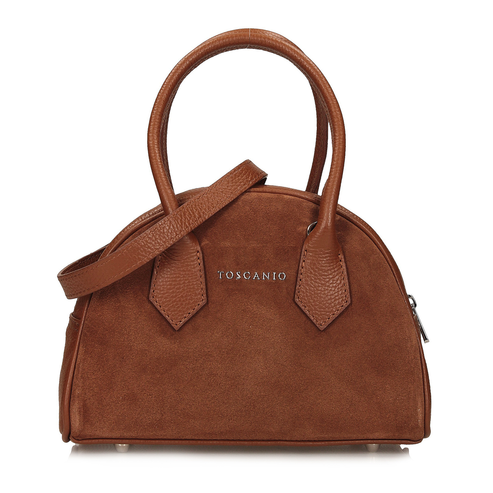 Rudy kuferek Toscanio to przyciągająca wzrok propozycja w ciepłym, jesiennym odcieniu, wykonana z miękkiego weluru – naturalnej skóry o matowym, przyjemnym w dotyku wykończeniu. Jego zgrabna forma sprawdzi się zarówno na co dzień, jak i przy bardziej eleganckich okazjach. Krótkie uchwyty i regulowany pasek umożliwiają noszenie torebki w ręku lub na ramieniu. Wnętrze wyściełane naturalną skórą skrywa jedną komorę i kieszeń, a srebrny zamek dopełnia całości w subtelny sposób.