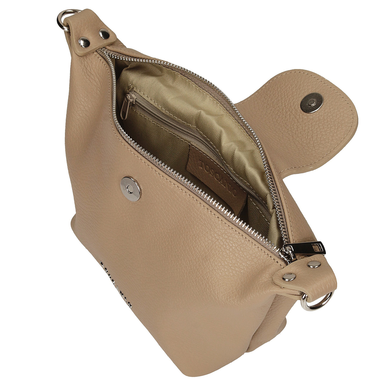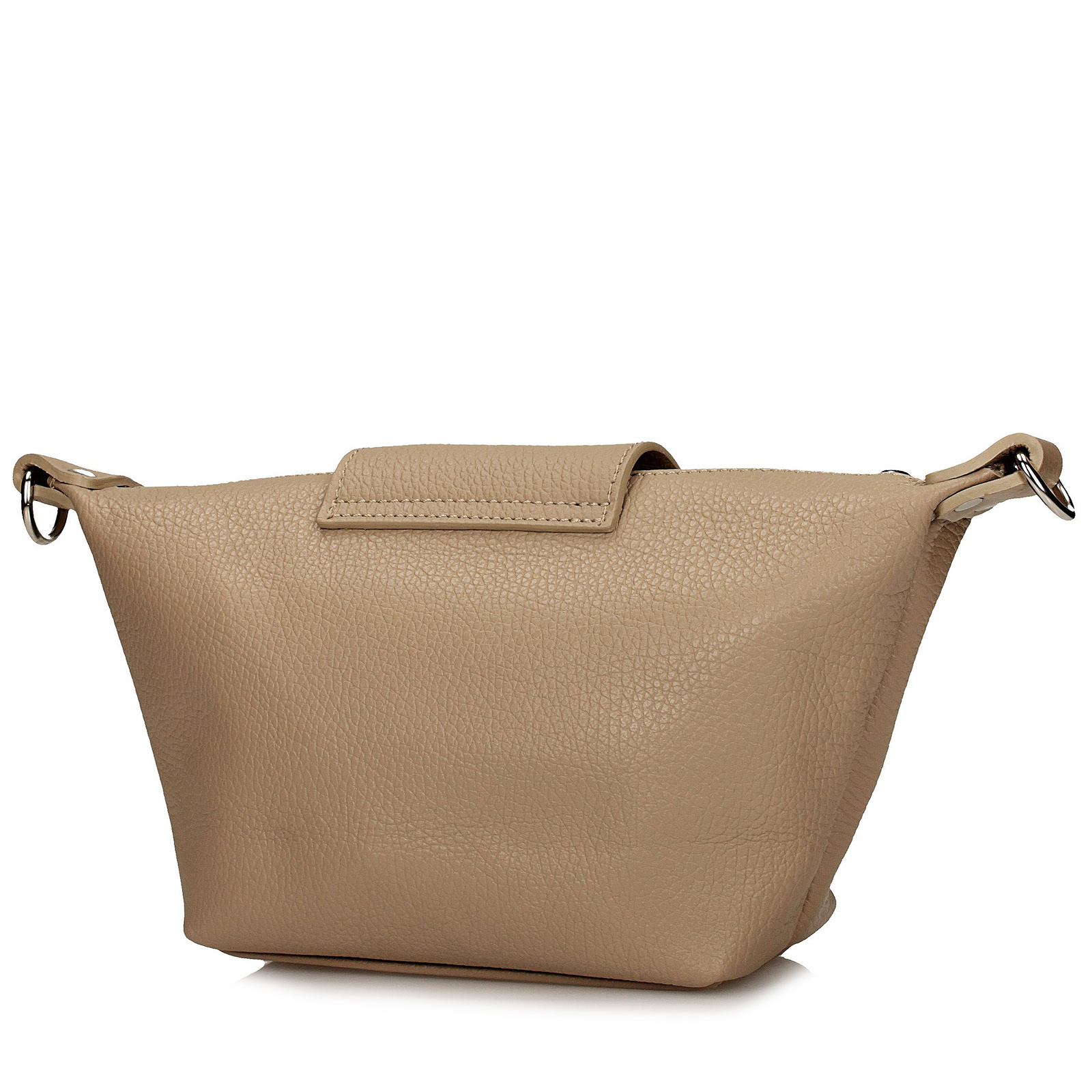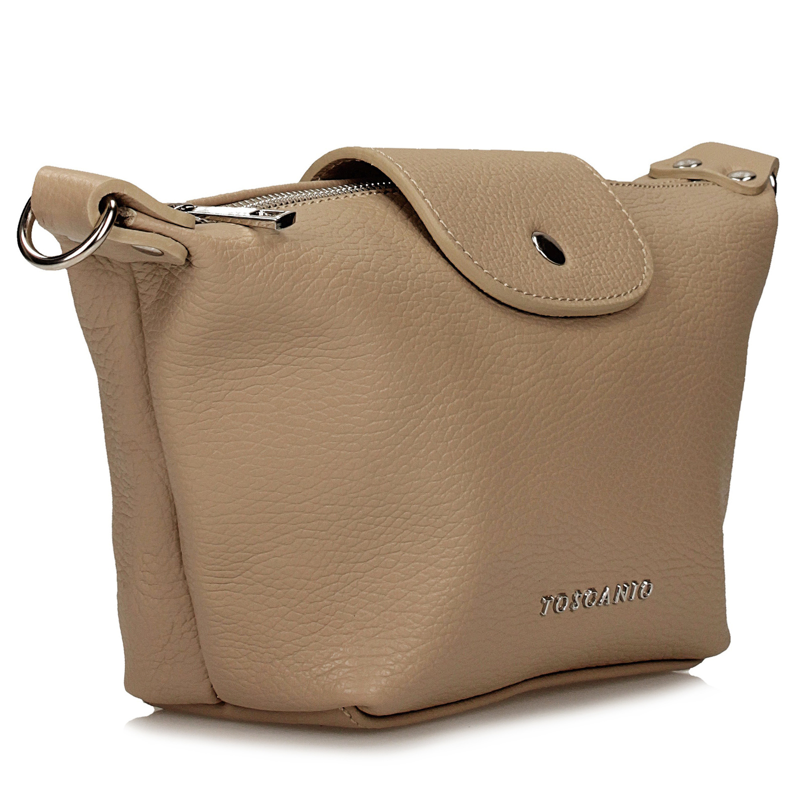 Beżowa listonoszka Toscanio to ponadczasowy dodatek w delikatnej, kobiecej tonacji. Uszyta z wysokiej jakości skóry naturalnej, łączy klasyczną formę z praktycznym wnętrzem – zmieści niezbędne drobiazgi, nie przytłaczając sylwetki. Jedna komora z kieszenią wewnętrzną wykończona jest tkaniną, a całość zapinana na metalowy zamek w kolorze srebra. Regulowany, tkaninowy pasek pozwala wygodnie nosić torebkę na ramieniu lub przez ramię. Subtelna i funkcjonalna – idealna na co dzień i na wyjątkowe okazje.