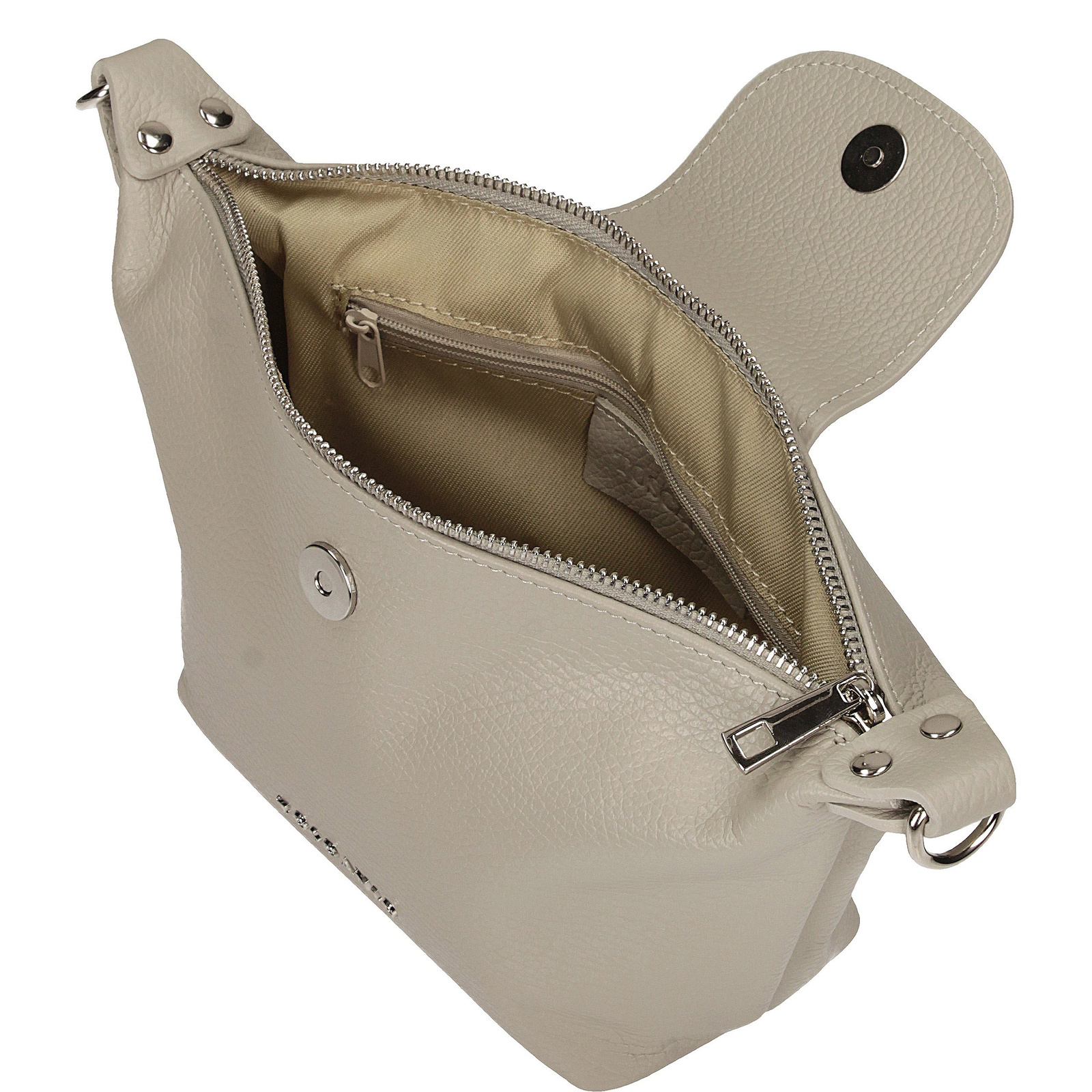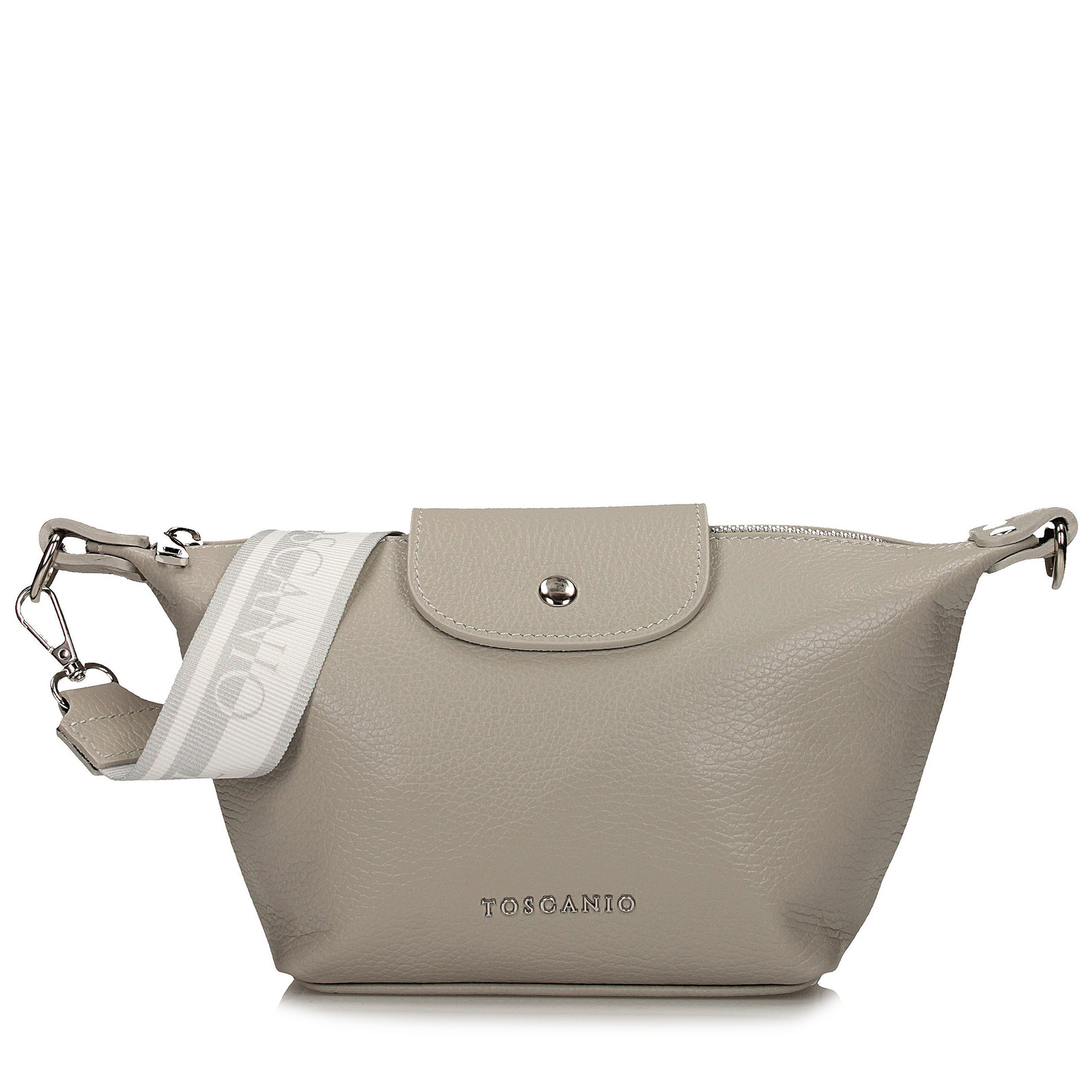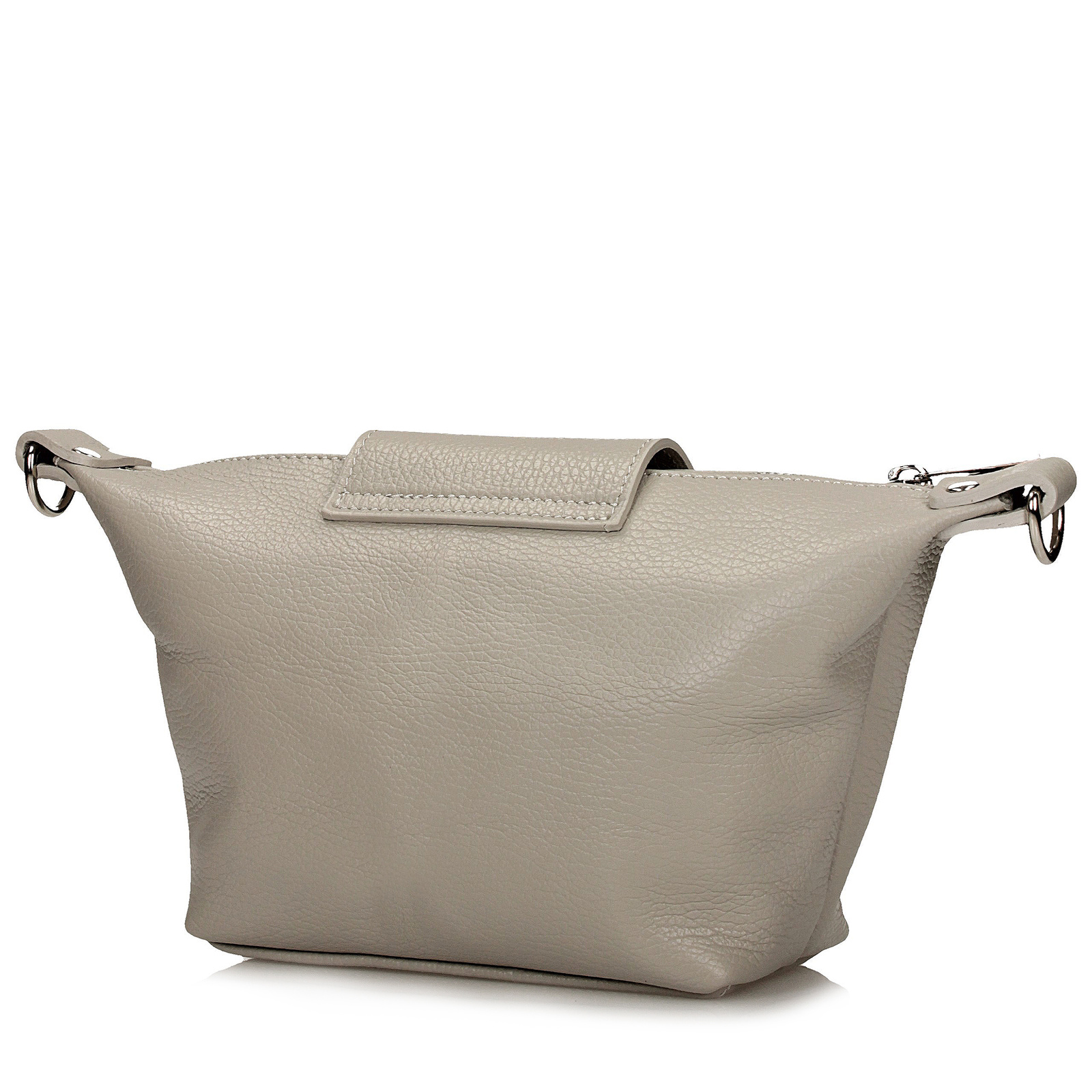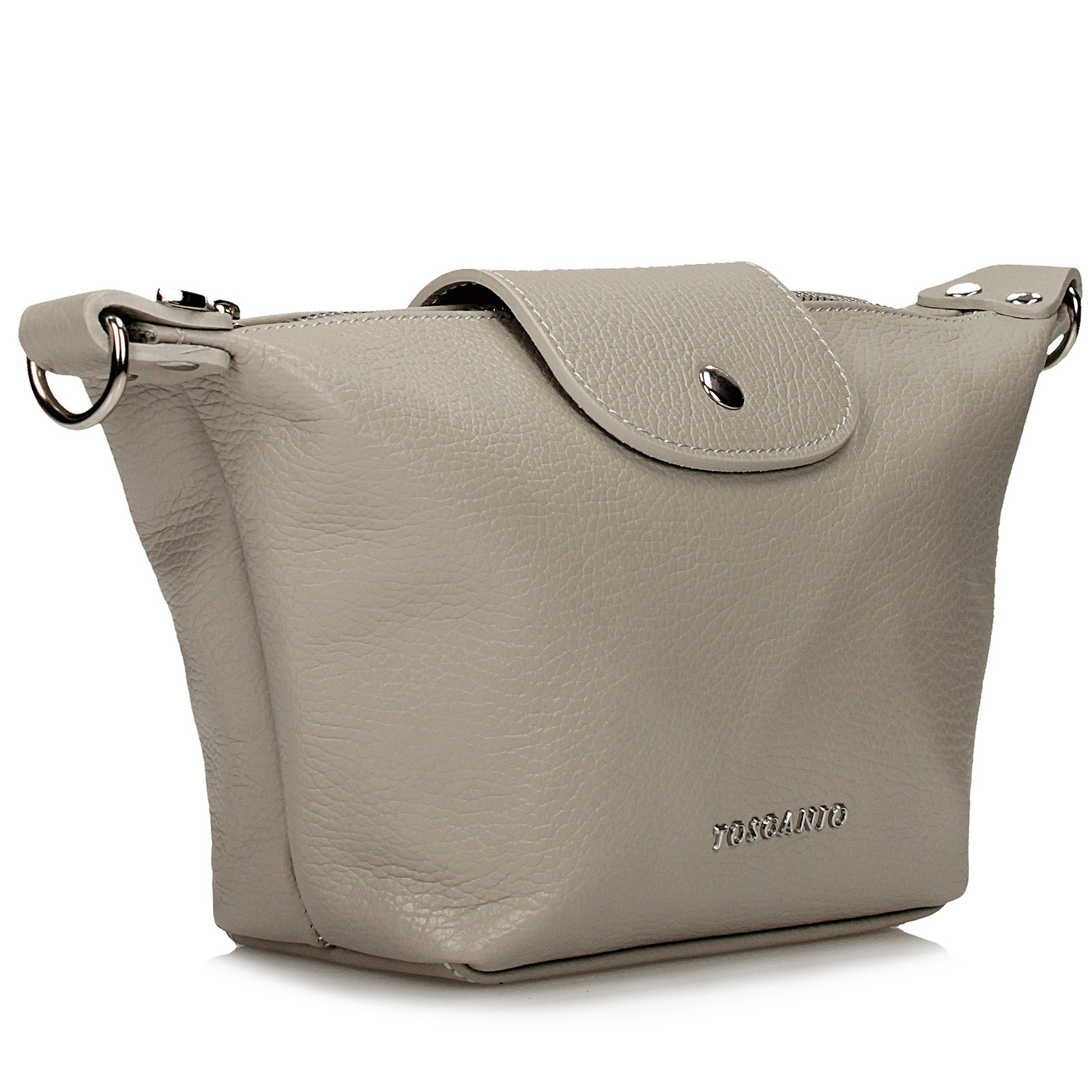 Jasnoszara listonoszka Toscanio to doskonała opcja dla miłośniczek subtelnej elegancji. Wykonana z wysokiej jakości naturalnej skóry, w odcieniu delikatnego szaro-beżowego, pasuje do wielu stylizacji, wprowadzając lekkość i klasę. Torebka ma jedną główną komorę oraz kieszonkę wewnętrzną, zapewniając wystarczającą ilość miejsca na niezbędne drobiazgi. Zamek z metalowym suwakiem w kolorze srebra i tkaninowy pasek dopełniają całość, gwarantując funkcjonalność i wygodę noszenia. Idealna na co dzień, do pracy, na zakupy czy spotkanie z przyjaciółmi.