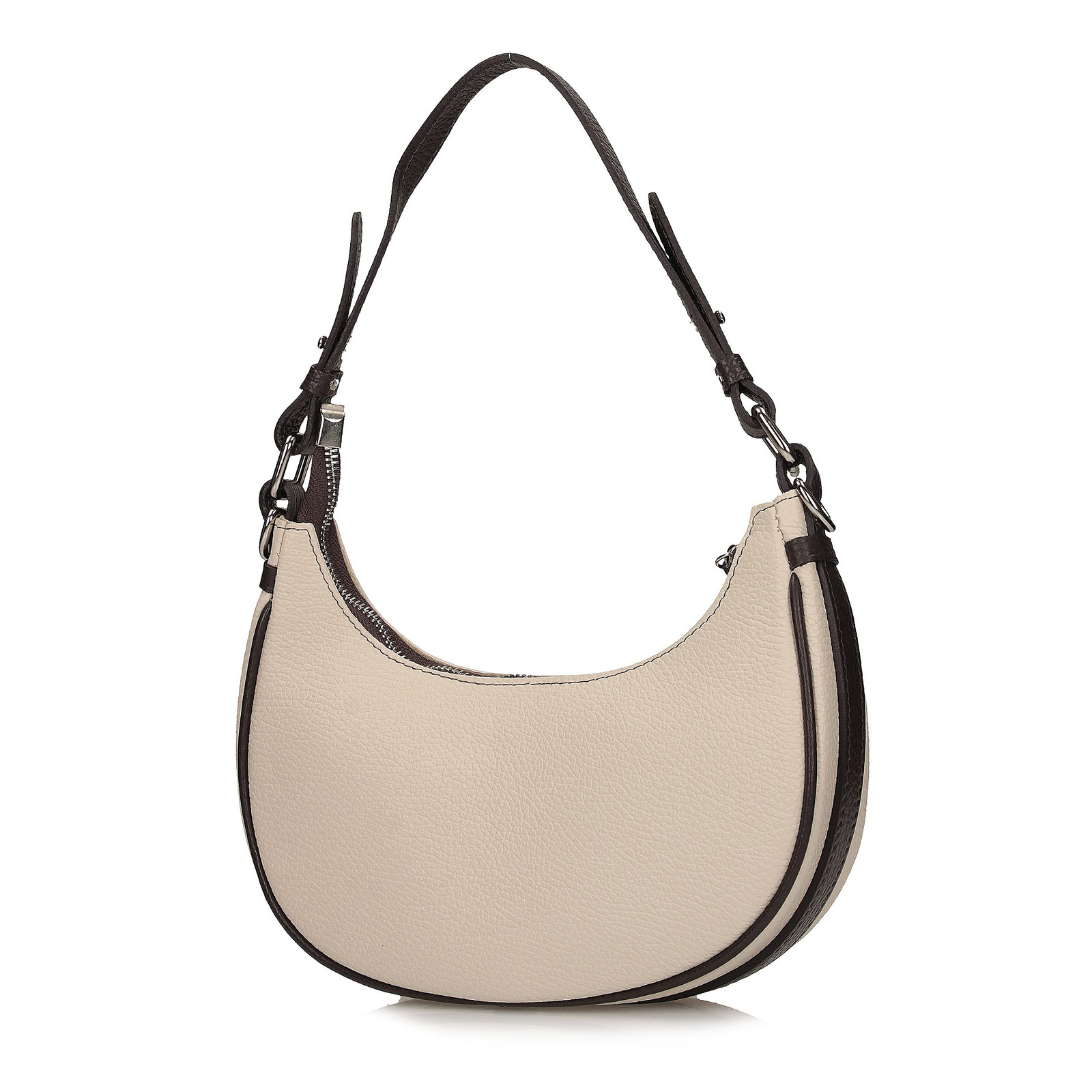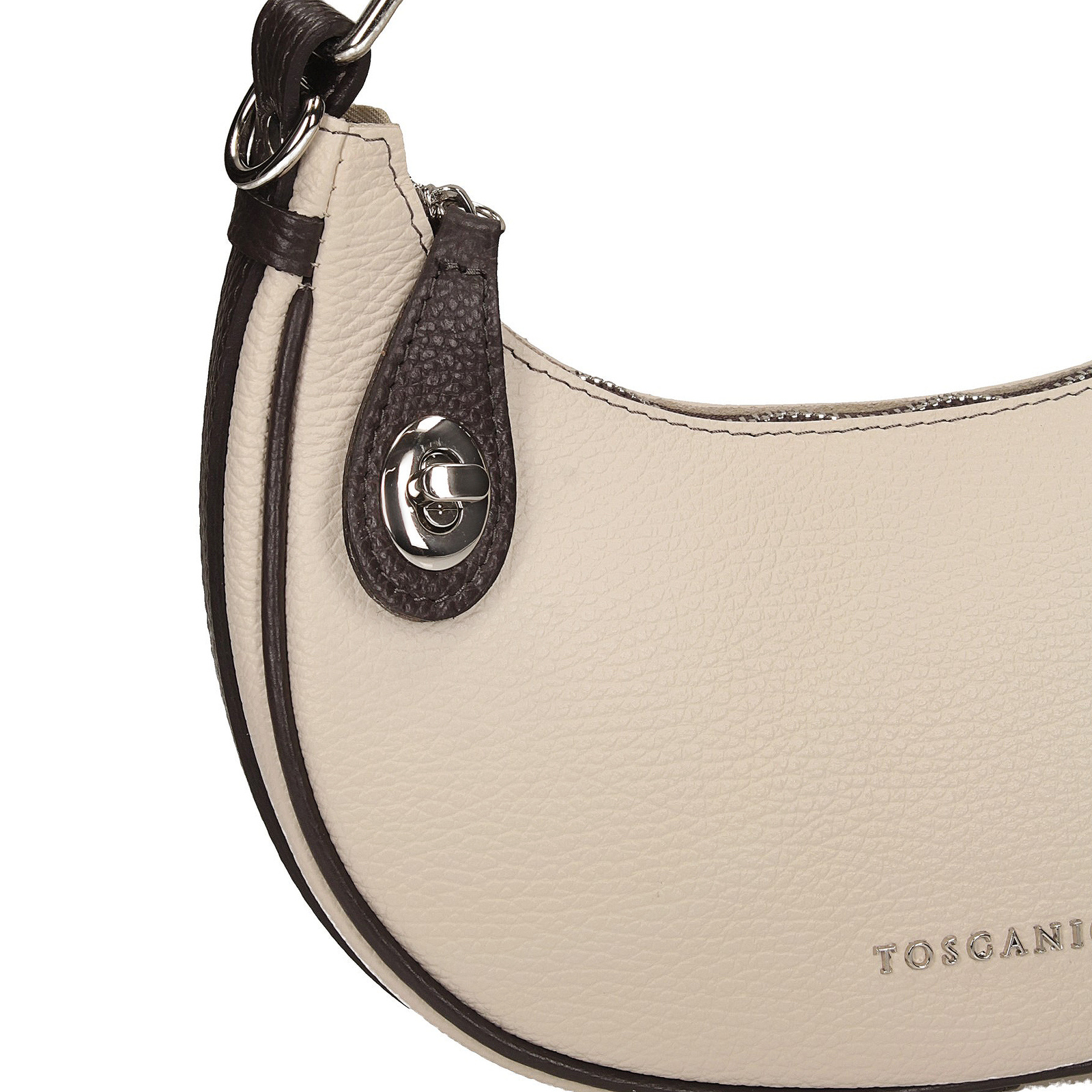 Ta kremowa listonoszka marki Toscanio to połączenie subtelnej elegancji i nietuzinkowego akcentu. Wykonana z wysokiej jakości naturalnej skóry, wyróżnia się kompaktową formą i wyjątkowym detalem – ozdobnym zapięciem na bigiel umieszczonym z boku, które nadaje jej charakteru i delikatnie retro klimatu. Główna komora zapinana na metalowy zamek skrywa praktyczną kieszeń wewnętrzną, a tkaninowa podszewka dopełnia całości. Dzięki regulowanemu paskowi możesz nosić ją wygodnie na ramieniu lub przez ciało. Idealna na co dzień i na wyjątkowe okazje, gdy potrzebujesz tylko najważniejszych rzeczy.