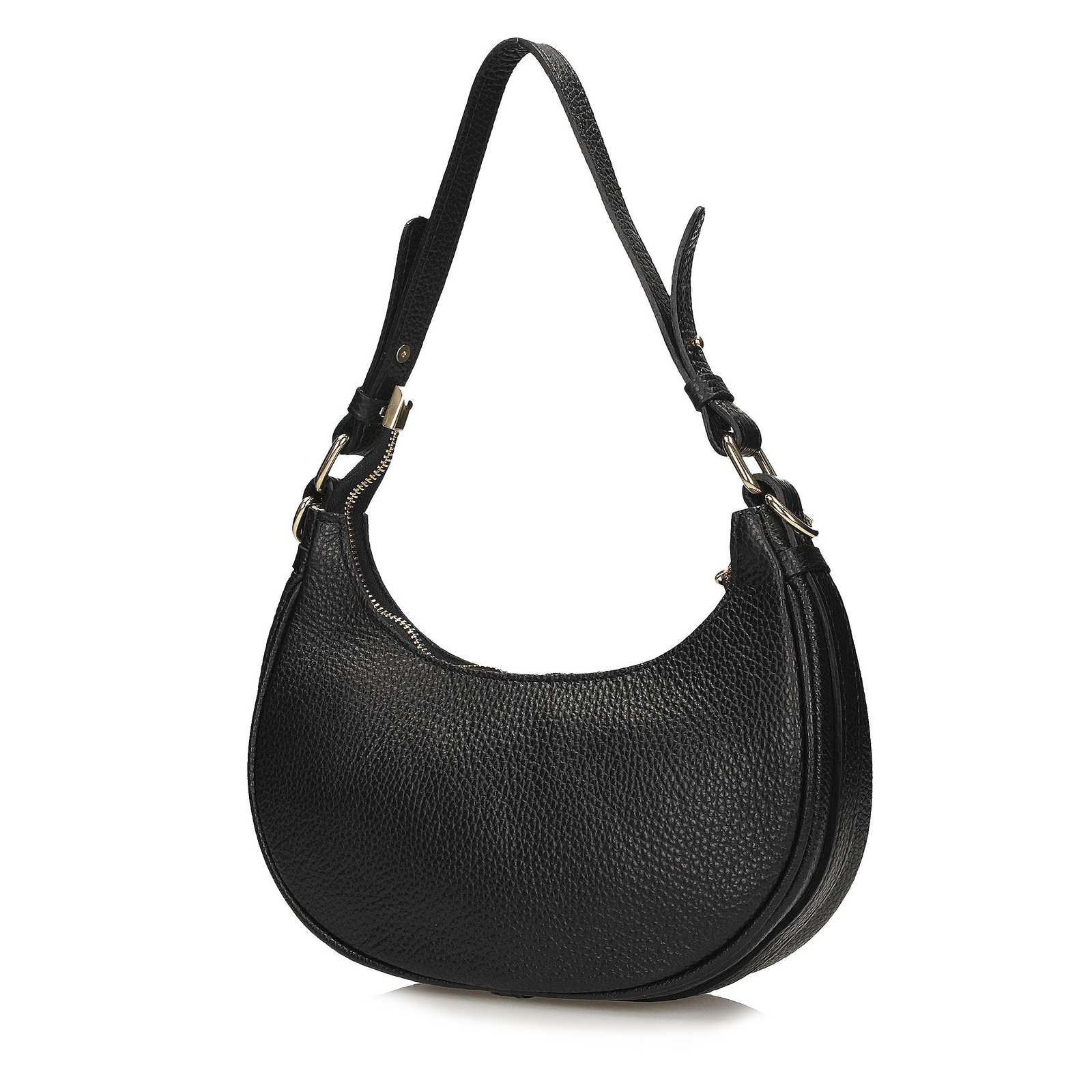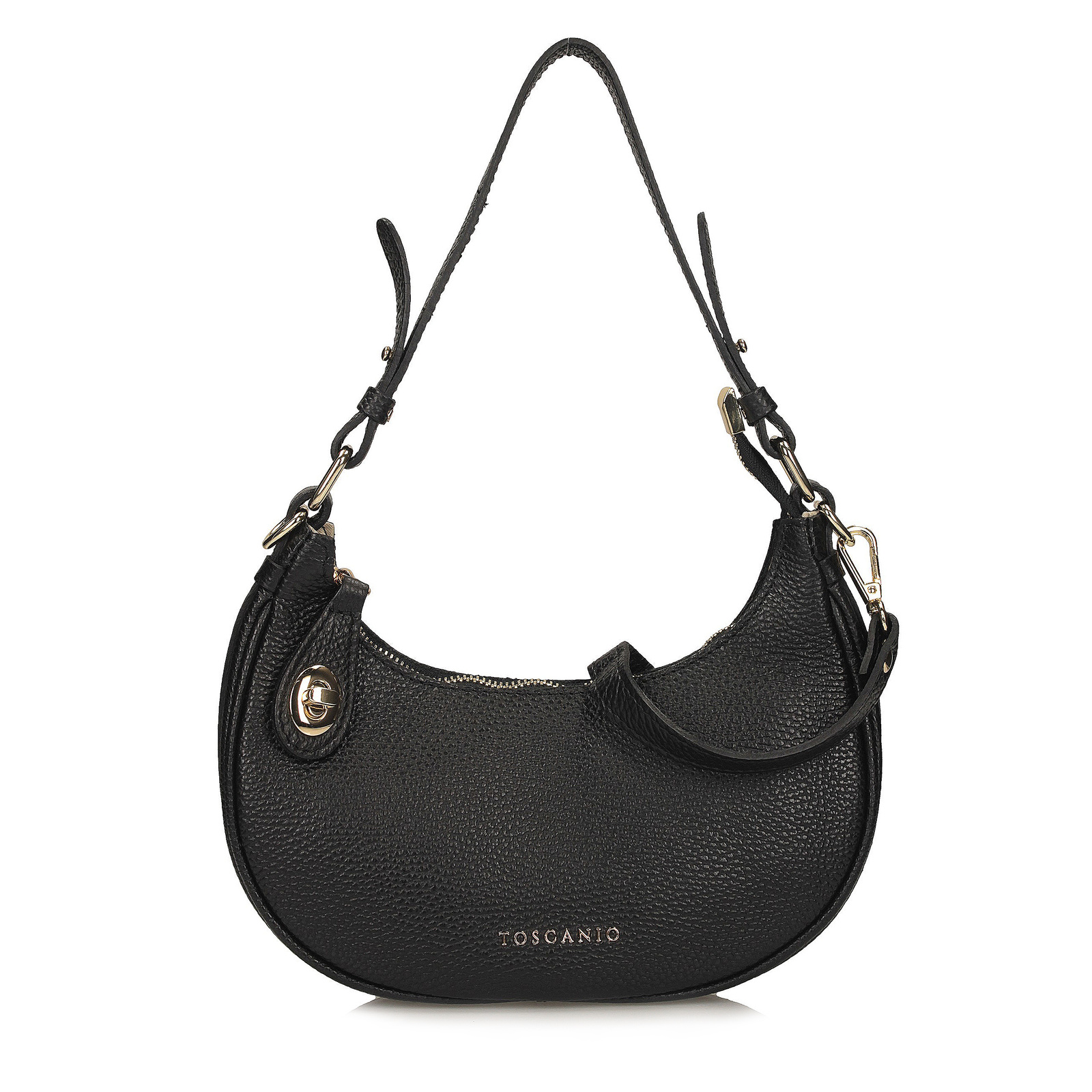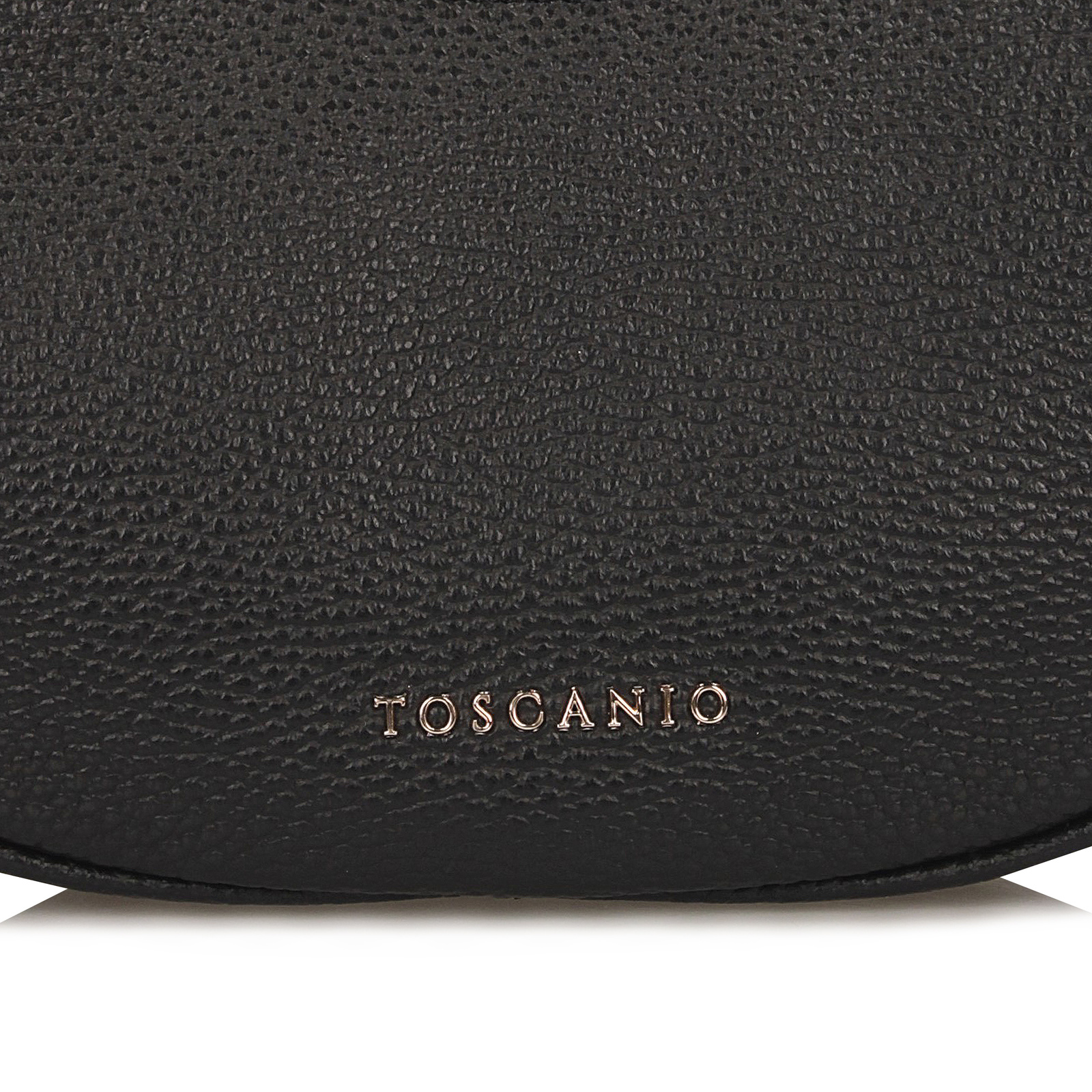 Czarna listonoszka marki Toscanio to klasyka z nutą oryginalności. Wykonana z naturalnej skóry, zachwyca prostą formą i unikatowym detalem – ozdobnym zapięciem na bigiel umieszczonym z boku, które przyciąga spojrzenia i dodaje całości eleganckiego, lekko retro charakteru. Kompaktowy rozmiar idealnie sprawdzi się na co dzień i na wieczorne wyjścia, a wnętrze z tkaninową podszewką i praktyczną kieszenią wewnętrzną pozwala uporządkować najpotrzebniejsze drobiazgi. Torebka zapinana jest na metalowy zamek i wyposażona w wygodny pasek na ramię, który zapewnia komfort noszenia.