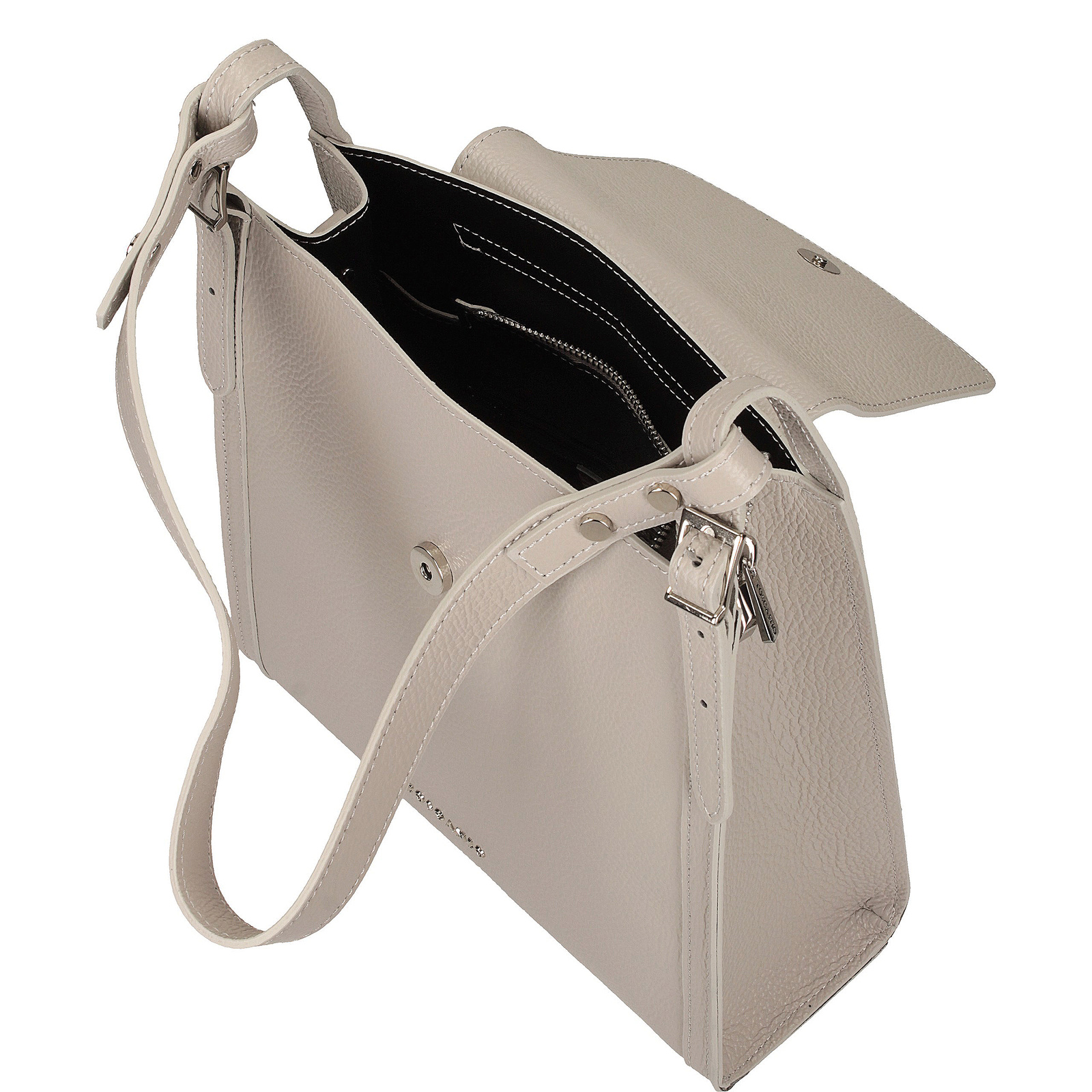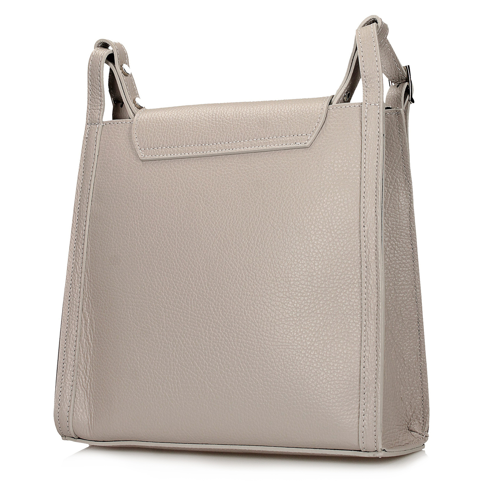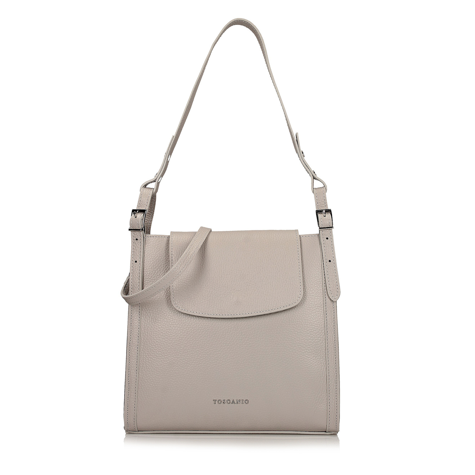 Szara listonoszka marki Toscanio to elegancka propozycja dla kobiet ceniących klasykę w nowoczesnym wydaniu. Wykonana z naturalnej, lekko usztywnianej skóry, zachowuje swój kształt nawet przy intensywnym użytkowaniu. Kompaktowy format (26 × 27 × 9 cm) idealnie sprawdzi się na co dzień, a srebrne detale i dopracowane wykończenia dodają całości wyrafinowanego charakteru. Torebka posiada jedną komorę, wewnętrzną kieszeń oraz długi pasek, który pozwala wygodnie nosić ją na ramieniu lub przez ramię. Stylowy, funkcjonalny wybór – idealny do miejskich stylizacji.