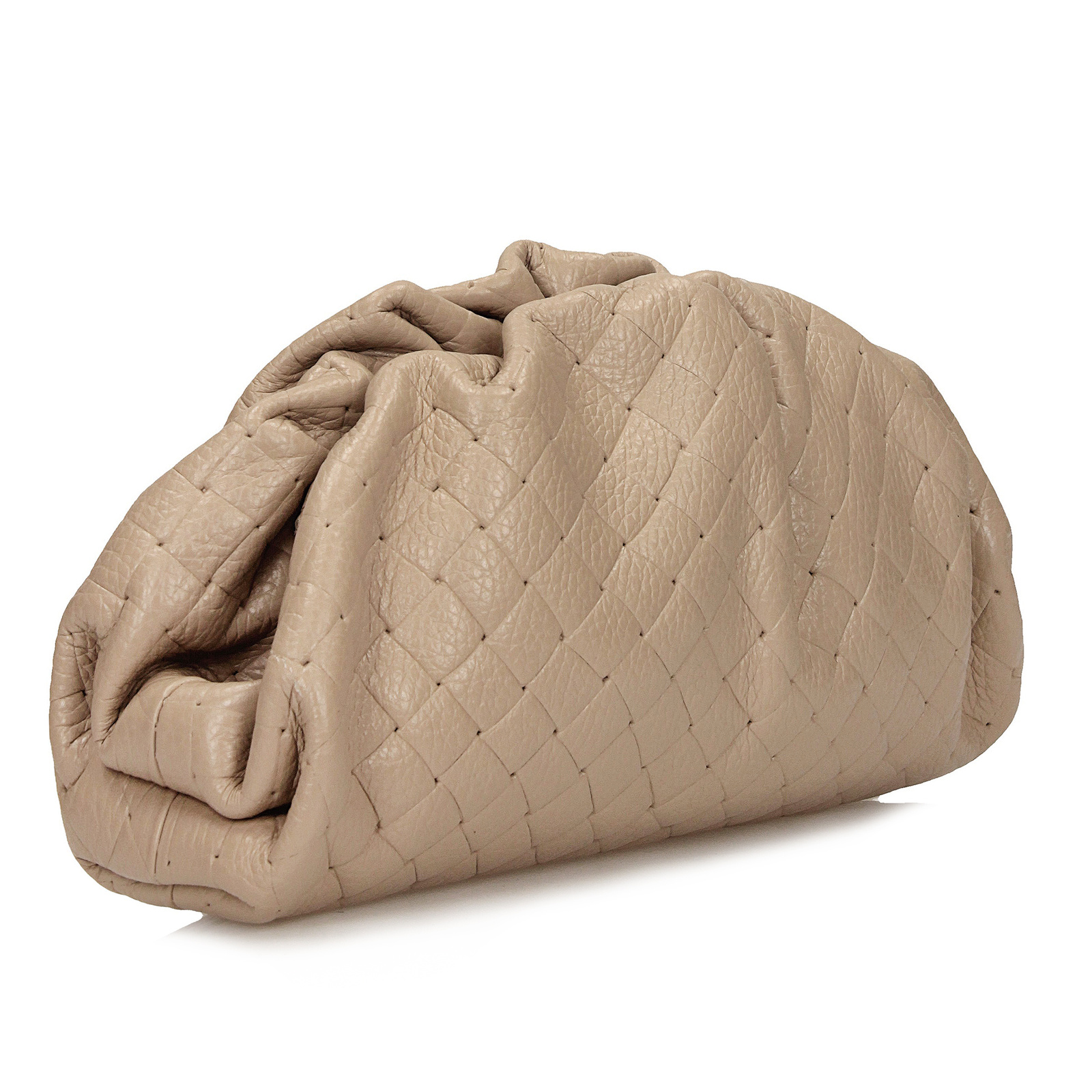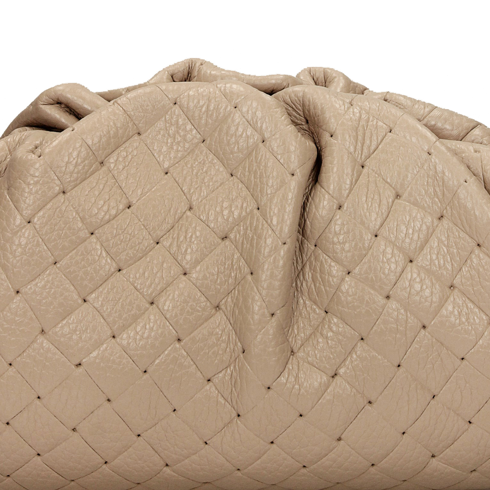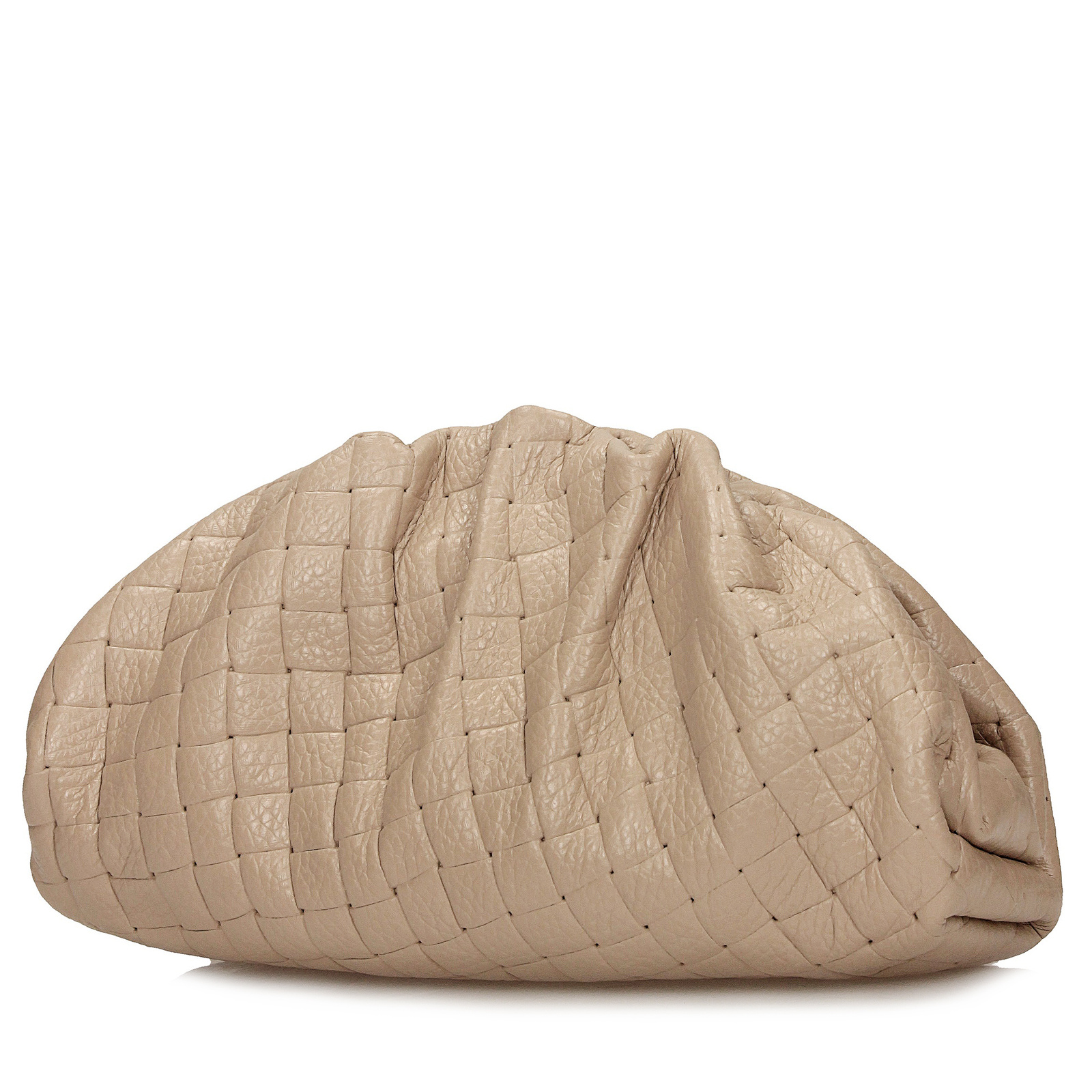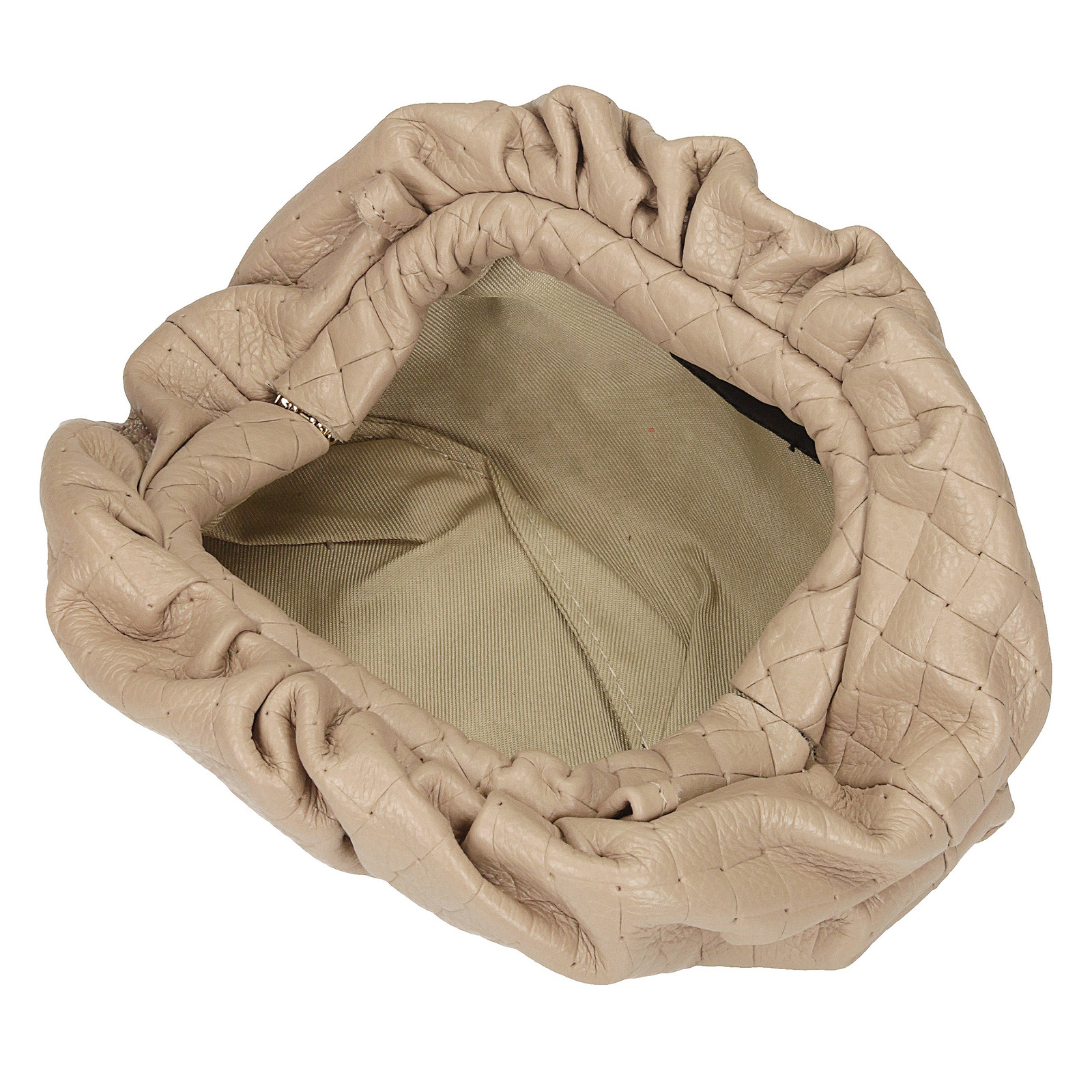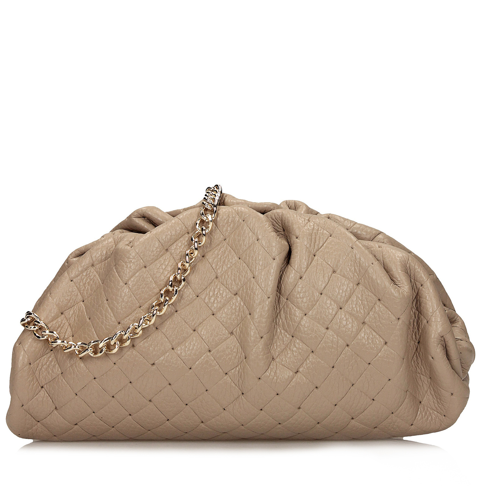 Elegancka kopertówka marki Toscanio wykonana z najwyższej jakości skóry o unikatowej, plecionej fakturze, która dodaje jej wyjątkowego charakteru. Górna część kopertówki zamykana jest na dyskretny, ukryty bigiel, co gwarantuje bezpieczeństwo i stylowe wykończenie. Wnętrze wyłożone jest miękką, delikatną tkaniną, zapewniającą ochronę przechowywanych drobiazgów. Dołączony złoty łańcuszek pozwala nosić torebkę na ramieniu lub w ręce, dodając całości luksusowego i ponadczasowego szyku.