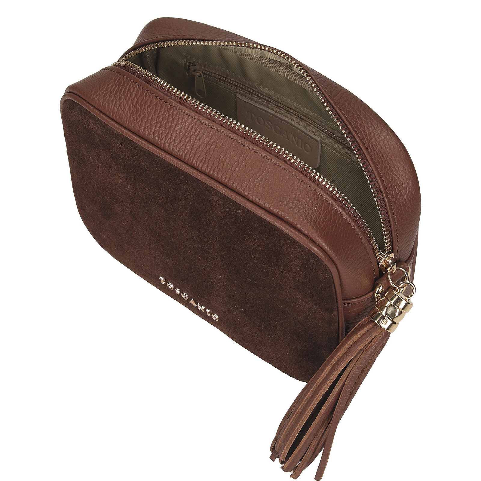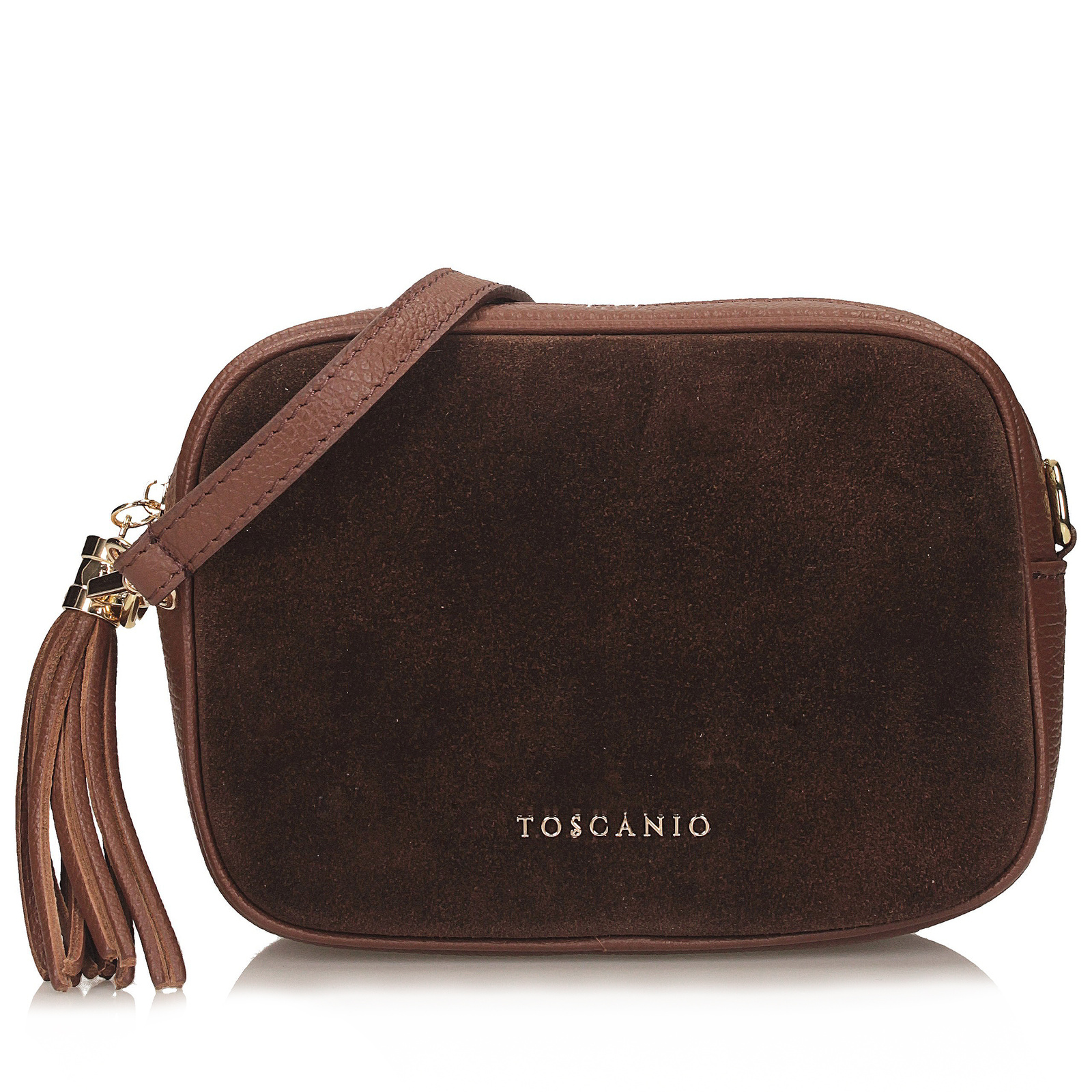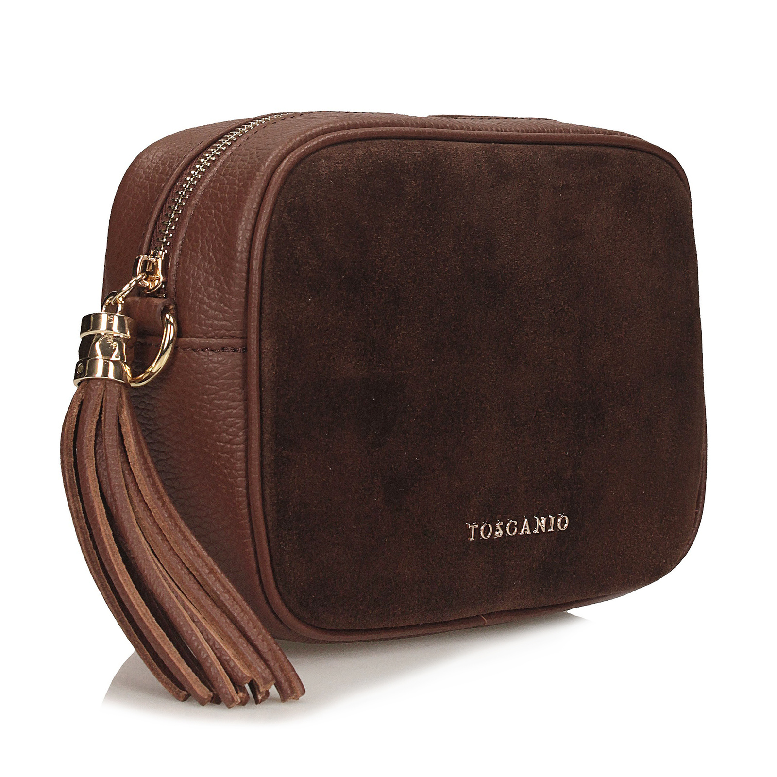 Brązowa listonoszka marki Toscanio to stylowe połączenie klasyki z naturalnym charakterem. Przednia część torebki została wykonana z miękkiej skóry zamszowej w odcieniu ciepłego brązu, natomiast pozostała część korpusu to skóra naturalna o groszkowanej fakturze, która dodaje całości subtelnej elegancji i trwałości. Złoty zamek w górnej części to nie tylko praktyczny element, ale również ozdobny akcent, który doskonale komponuje się z całością. Wnętrze wykończone tkaniną mieści jedną komorę, zapewniając miejsce na najpotrzebniejsze przedmioty. Długi pasek ze skóry naturalnej (110 cm) umożliwia wygodne noszenie torebki na ramieniu lub na skos. Idealna zarówno do codziennych stylizacji, jak i tych bardziej eleganckich – klasyczna, ale z wyrazem.