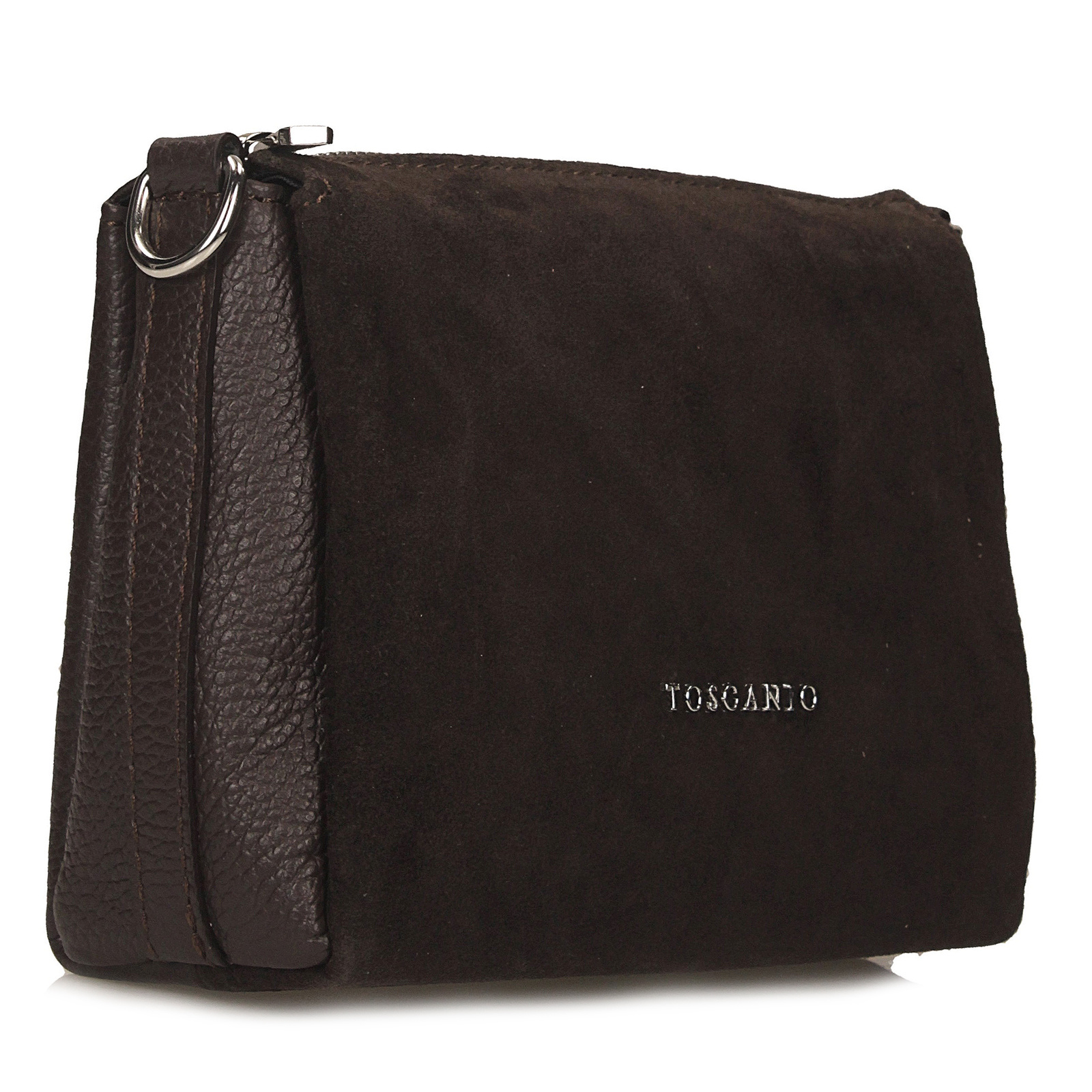 Brązowa listonoszka Toscanio to stylowy i funkcjonalny model wykonany z wysokiej jakości skóry naturalnej. Front torebki zdobi klapka ze skóry zamszowej, która nadaje jej elegancji i wyjątkowego charakteru. Wnętrze zostało podzielone na trzy oddzielne sekcje, zamykane jednocześnie jednym zamkiem błyskawicznym w srebrnym kolorze, co zapewnia wygodę i bezpieczeństwo przechowywania. Całość wyściełana jest trwałą tkaniną, a wewnątrz znajduje się dodatkowa kieszeń na drobiazgi. Regulowany pasek ze skóry naturalnej o długości 120 cm umożliwia wygodne noszenie torebki na ramieniu lub w formie crossbody. Ciepły, klasyczny odcień brązu sprawia, że model ten doskonale uzupełni zarówno codzienne, jak i bardziej eleganckie stylizacje.