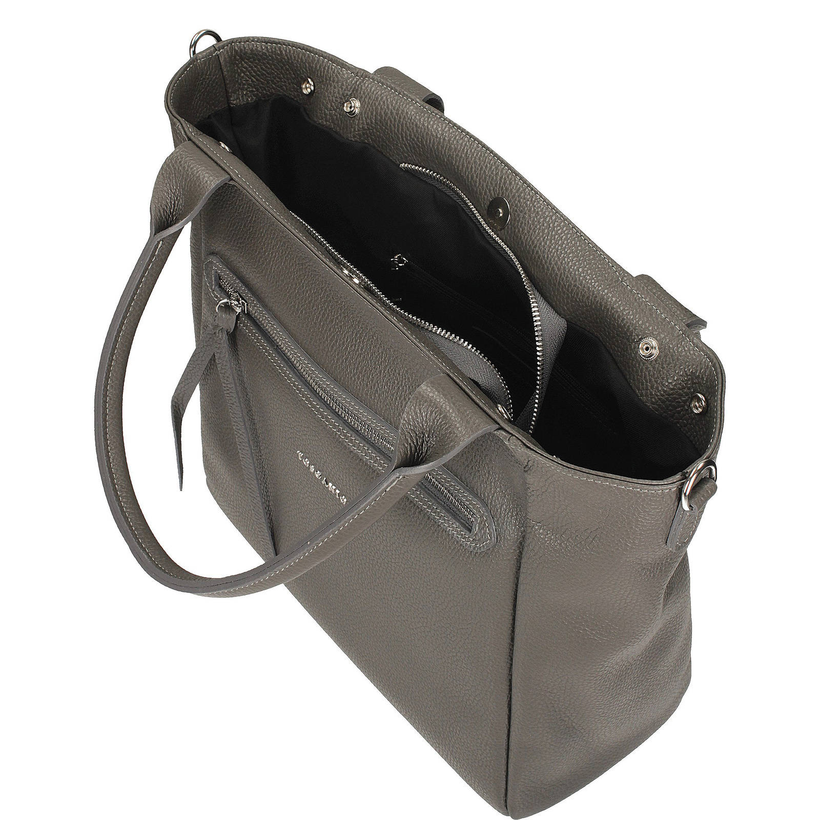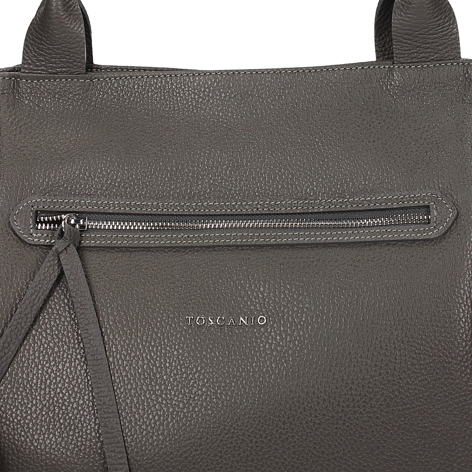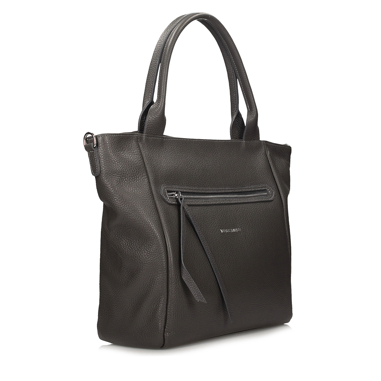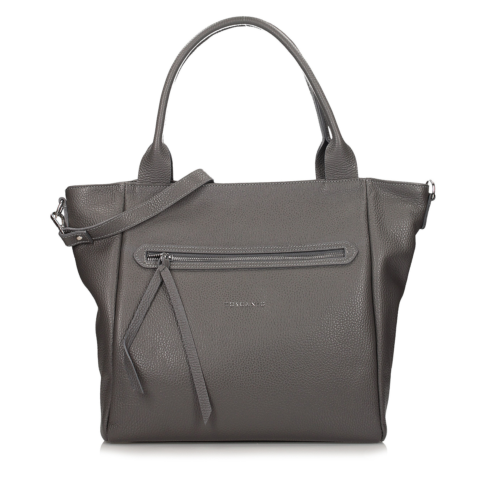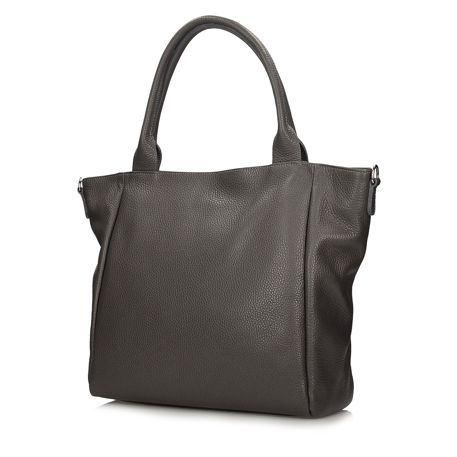 Klasyczna torebka Toscanio w kolorze ciemnoszarym to stylowy i praktyczny model, który łączy elegancję z funkcjonalnością. Wykonana z wysokiej jakości skóry naturalnej, zachowuje trwałość i piękny wygląd przez długi czas. Wyposażona w dwa uchwyty o długości 50 cm, zapewnia wygodę noszenia zarówno w dłoni, jak i na ramieniu. Torebka ma dwie oddzielne komory zamykane na zamek błyskawiczny w kolorze srebrnym, a wnętrze wykończone tkaniną kryje trzy praktyczne kieszenie. Po bokach znajdują się ukryte klipsy, które umożliwiają regulację szerokości górnej części torebki – węższe ustawienie dodaje szyku, a szersze zwiększa pojemność. Model bez trudu mieści format A4, dzięki czemu doskonale sprawdzi się zarówno w pracy, jak i na co dzień.