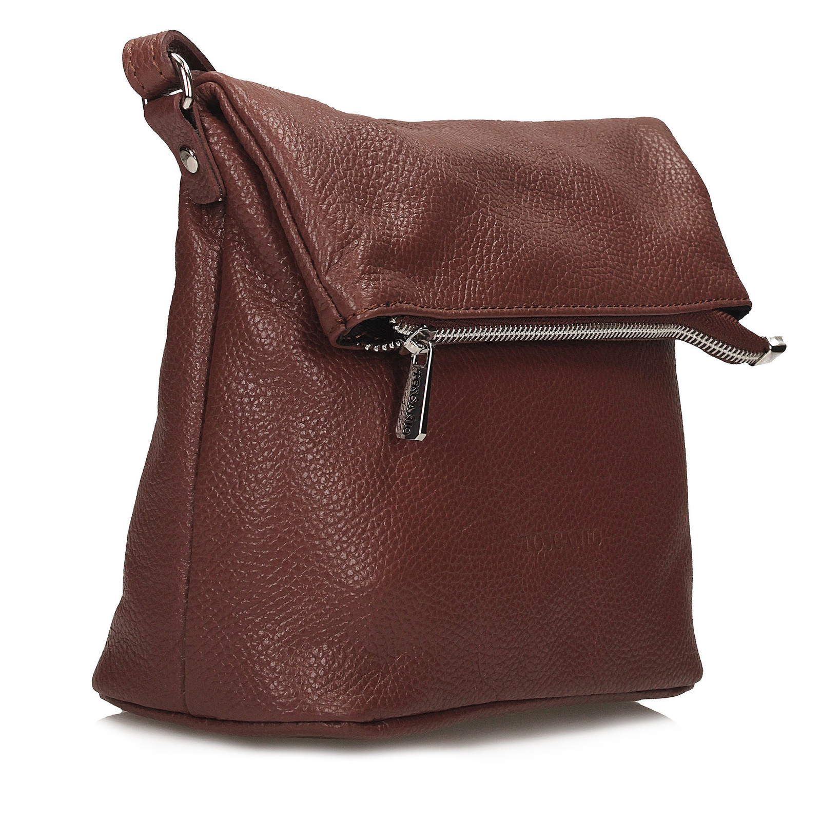Brązowa listonoszka Toscanio to klasyczny i uniwersalny dodatek, wykonany w całości ze skóry naturalnej o pięknym, ciepłym odcieniu brązu. Prosta forma z miękką, lekko zawijaną klapką nadaje jej subtelnej elegancji i ponadczasowego charakteru. Klapka zapinana jest na praktyczny magnes, dodatkowo posiada zamek błyskawiczny w srebrnym kolorze, który dodatkowo zabezpiecza zawartość. Wnętrze, wykończone trwałą tkaniną, kryje jedną pojemną komorę, idealną na codzienne drobiazgi. Regulowany pasek ze skóry naturalnej (110 cm) zapewnia komfort noszenia zarówno na ramieniu, jak i w wersji crossbody. Model doskonały do codziennych stylizacji, łączący wygodę z elegancją.