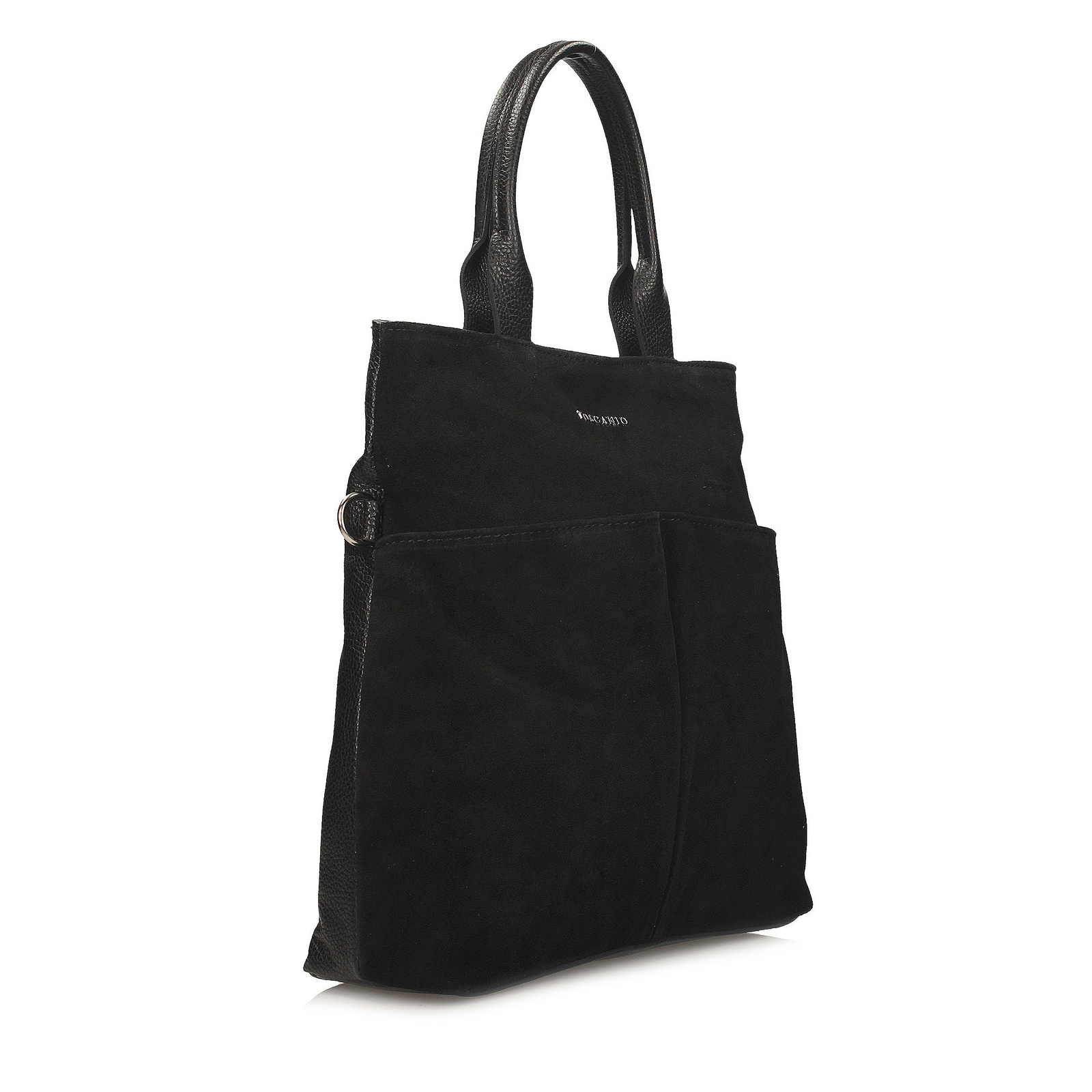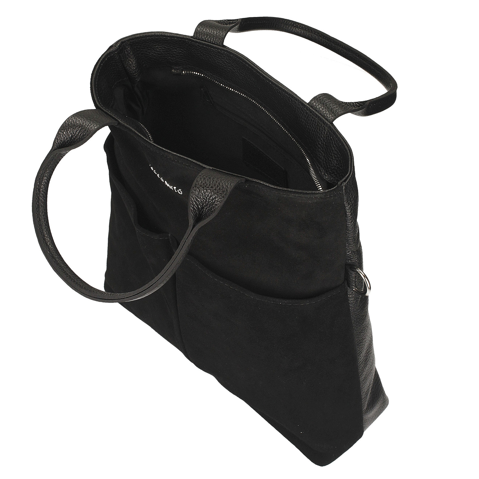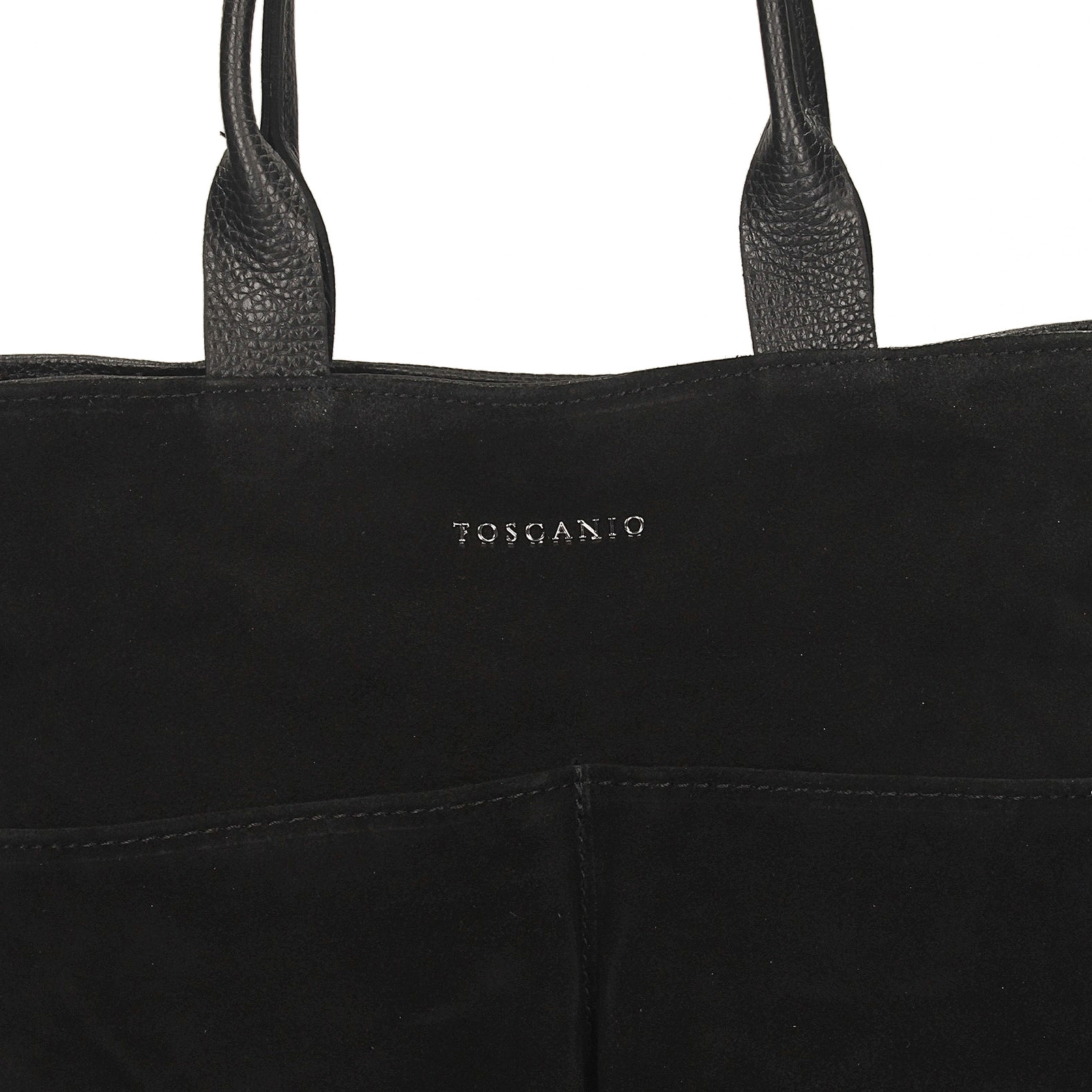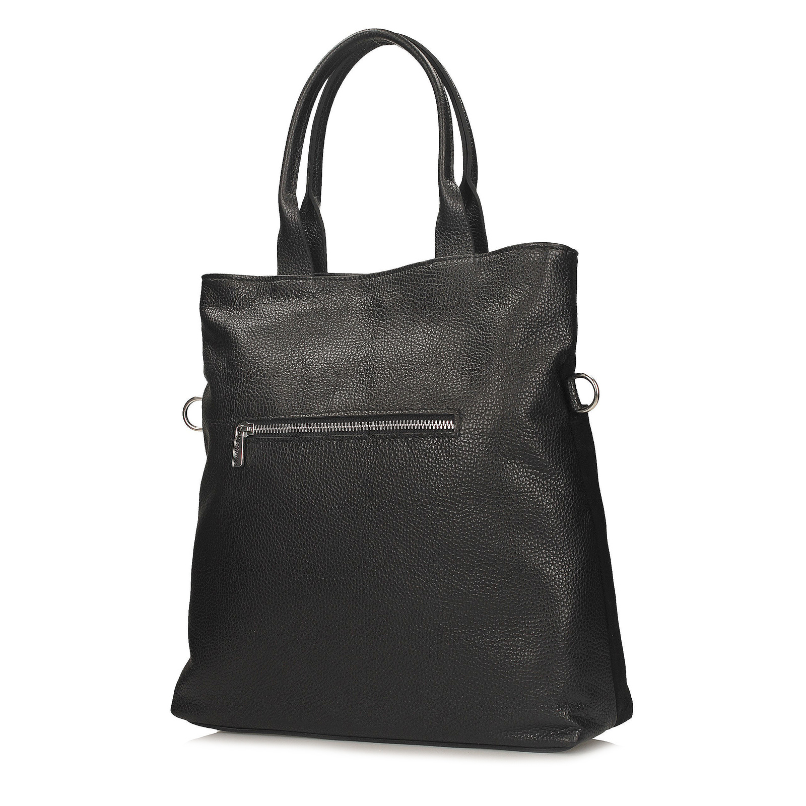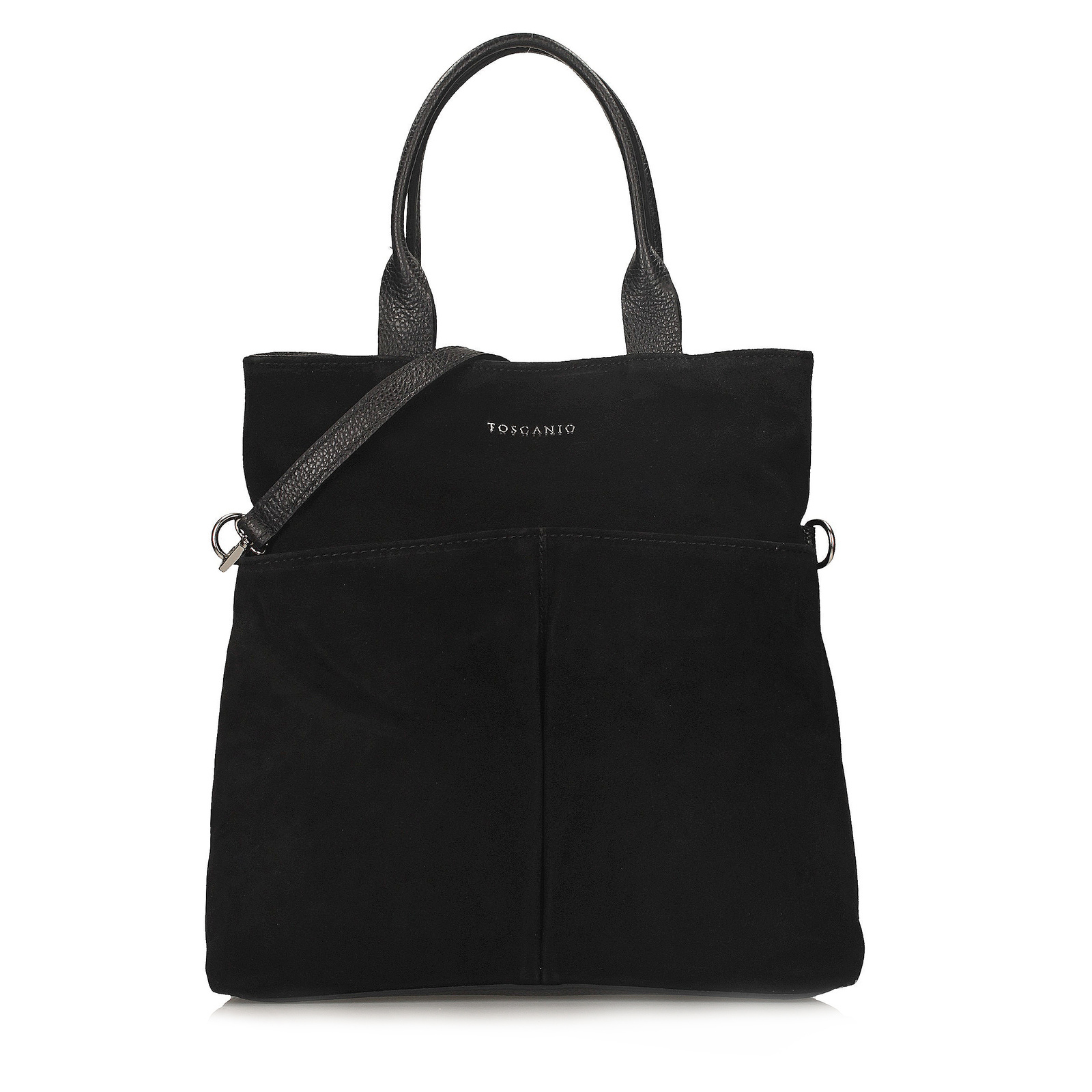 Czarna shopperka marki Toscanio to elegancka i praktyczna propozycja dla kobiet ceniących styl i funkcjonalność. Przednia część torebki wykonana została ze skóry zamszowej, która dodaje całości wyjątkowego charakteru i miękkiego wykończenia. Pozostała część torebki to wysokiej jakości skóra naturalna o klasycznym wykończeniu. Model ma pojemne wnętrze z jedną komorą i dwiema kieszeniami, co ułatwia organizację codziennych drobiazgów. Zapięcie na metalowy zamek w kolorze srebrnym zapewnia bezpieczeństwo zawartości, a wygodne uchwyty o długości 35 cm pozwalają nosić ją zarówno w ręku, jak i na ramieniu. Idealna na co dzień – do pracy, na uczelnię czy zakupy.