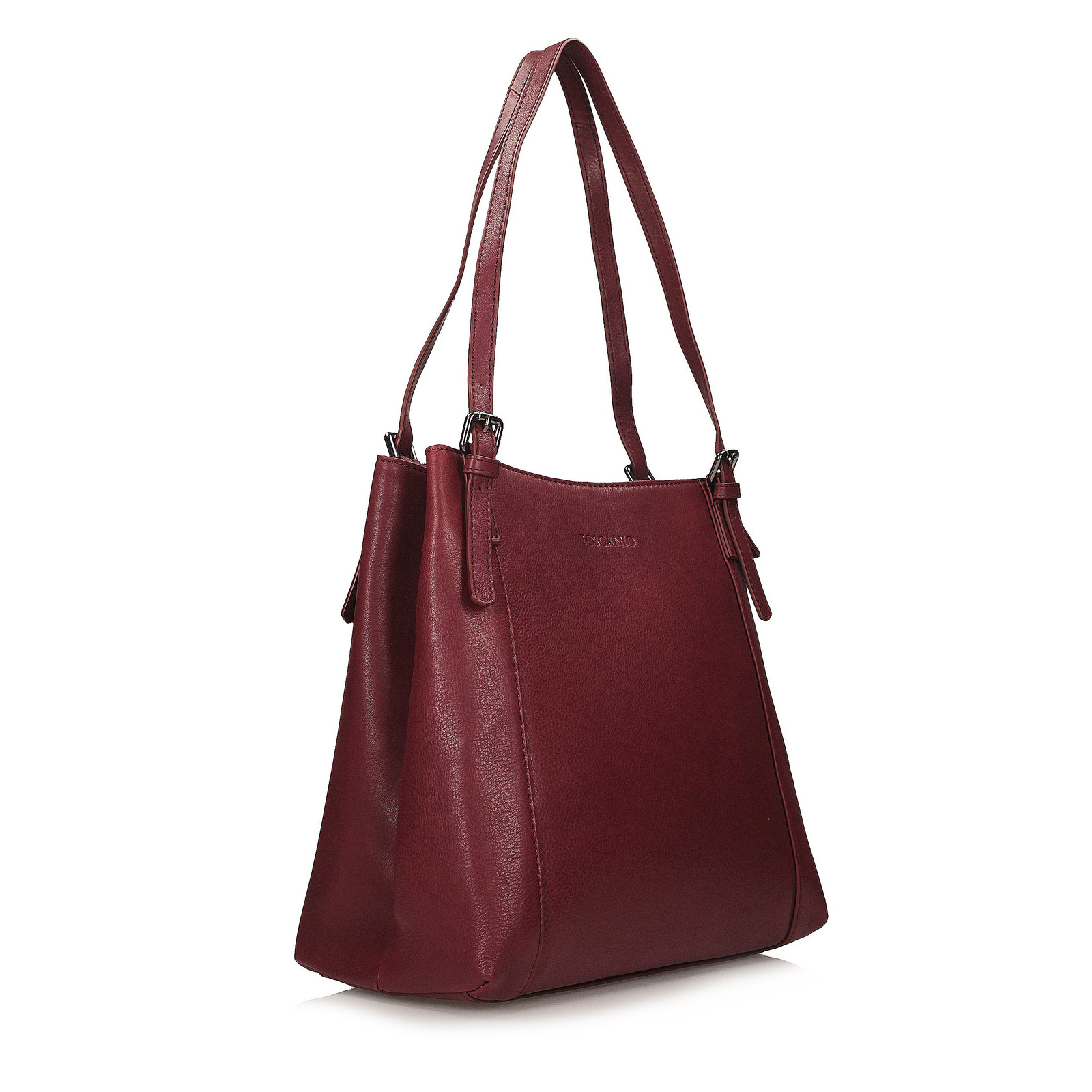 Czerwona torebka typu worek marki Toscanio to elegancki i funkcjonalny dodatek wykonany z wysokiej jakości skóry naturalnej. Jej wyrazisty kolor nadaje stylizacjom charakteru, a klasyczny fason sprawia, że świetnie pasuje zarówno na co dzień, jak i na specjalne okazje.