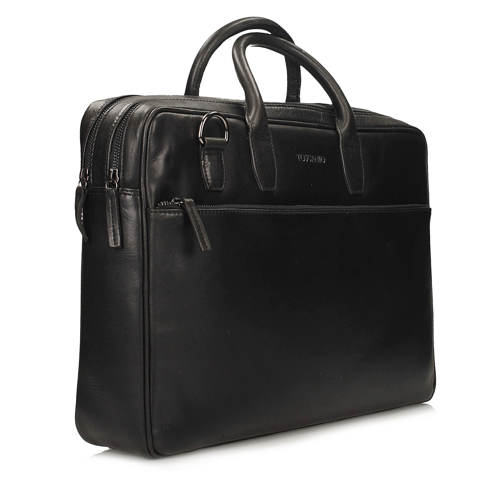 Czarna teczka Toscanio to elegancka i praktyczna propozycja, która doskonale sprawdzi się jako torba biznesowa oraz torba na laptopa. Wykonana z wysokiej jakości skóry naturalnej, łączy w sobie klasyczny styl i funkcjonalność.
